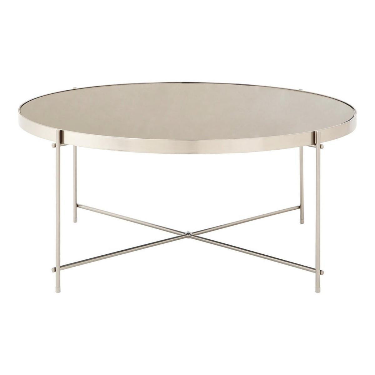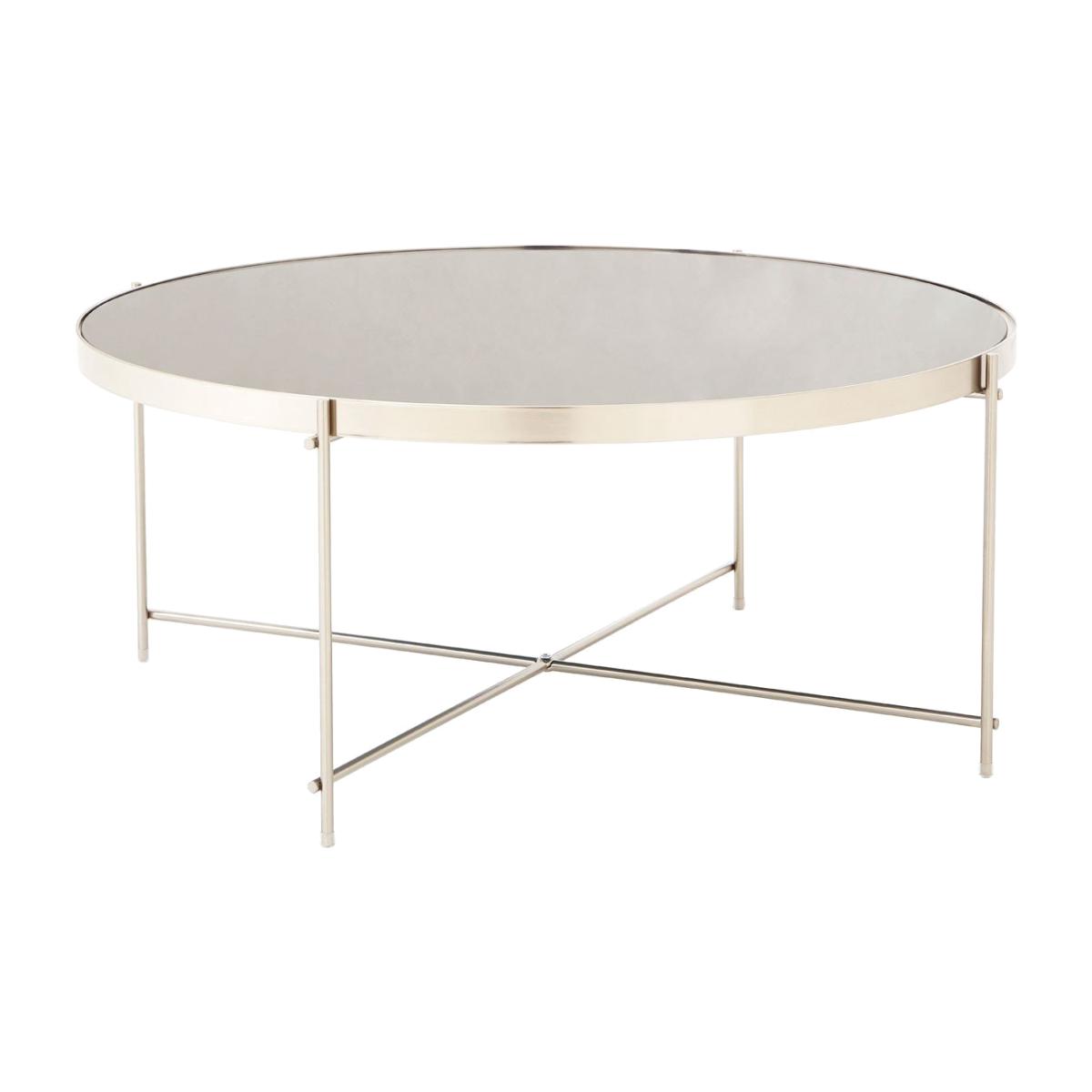 Introduce some understated elegance into your home with the Liv by Olivia's mirrored top coffee table. She is available in a rose gold or brushed silver finish so you will be able to choose an opti. View More. Introduce some understated elegance into your home with the Liv by Olivia's mirrored top coffee table. She is available in a rose gold or brushed silver finish so you will be able to choose an option that suits your home. Her sophisticated style is perfect for infusing your space with a boutique hotel vibe, especially if you use her to display a vase of flowers or some photographs in silver frames. She has a sleek and contemporary feel with a polished metal frame and single-piece mirrored glass top surface that sits in a circular metal band supported by a lattice structure and lattice base. Outlet items may show some signs of minor cosmetic imperfections.
