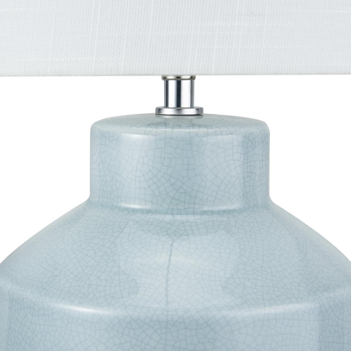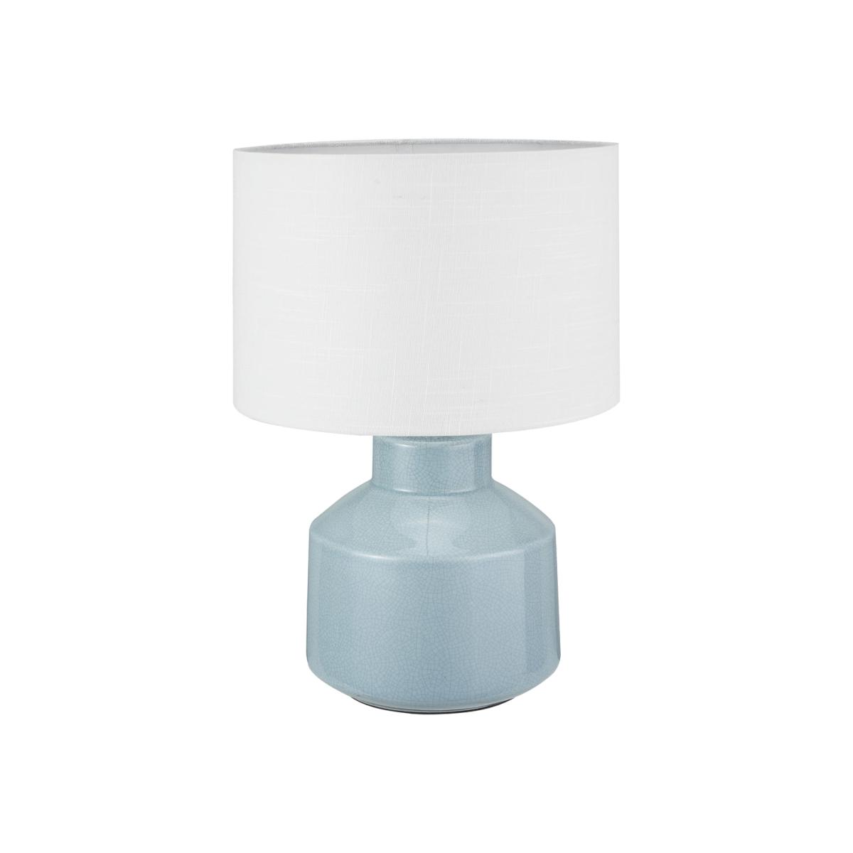 Stunning Scandi styling. Our Nala duck egg blue table lamp has a beautiful crackle effect base and complementing crisp white linen shade. The perfect minimalist design!