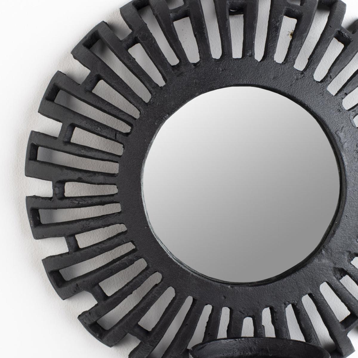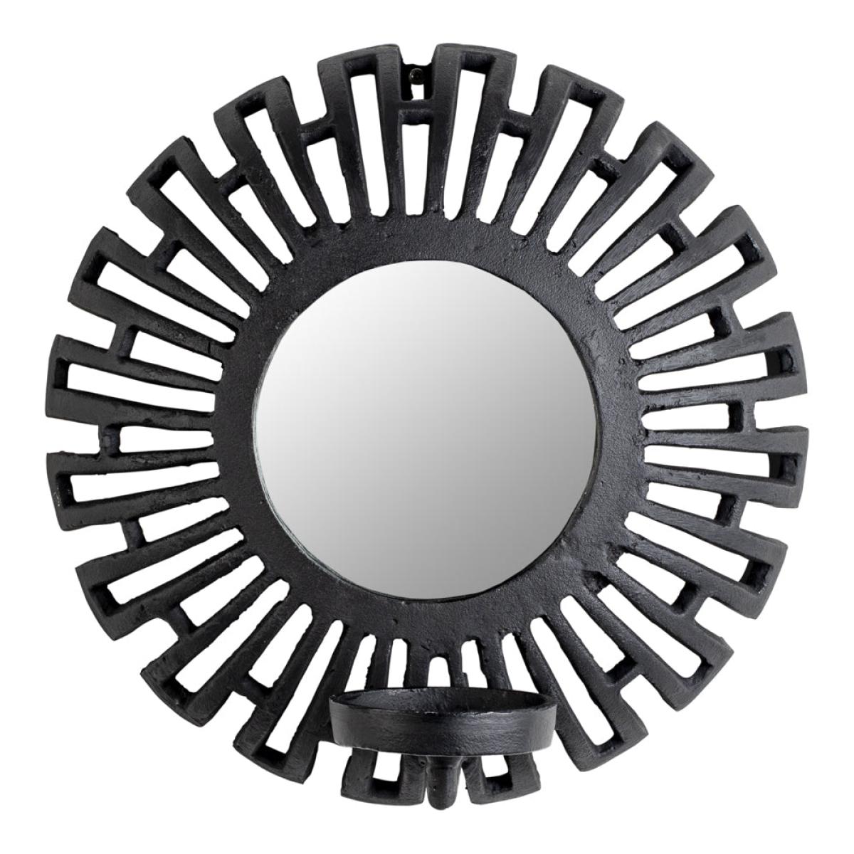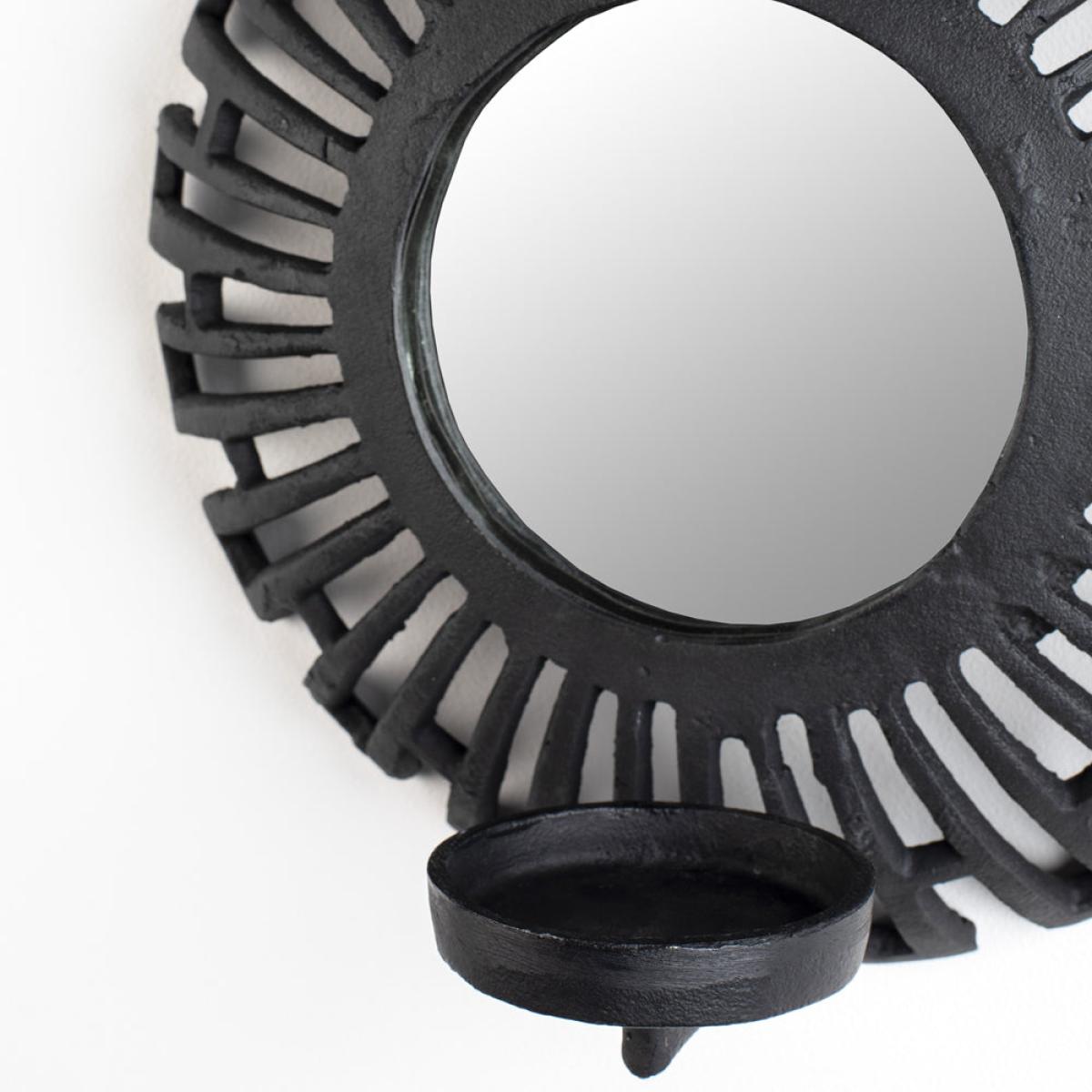 Add a striking focal point to your living space with this Aria Candle Holder in Black. It has a stunning Aztec design and a mirrored circular centre, with the added benefit of reflecting the warm a. View More. Add a striking focal point to your living space with this Aria Candle Holder in Black. It has a stunning Aztec design and a mirrored circular centre, with the added benefit of reflecting the warm and welcoming ambience from the candlelight back into the room. This piece will draw the eye and serve as a talking point for guests. This Aria Candle Holder from Olivia’s Nordic Living Collection is finished in black plated aluminium, and with a diameter of 18cm, it will be the perfect finishing touch to a hallway, living room or bedroom, complementing a variety of interior styles and colour palettes.
