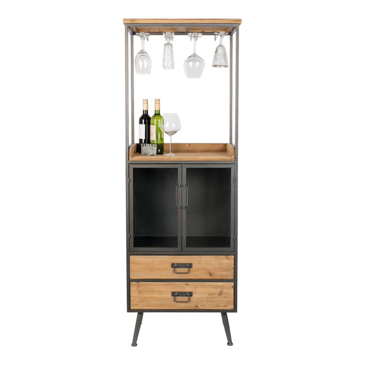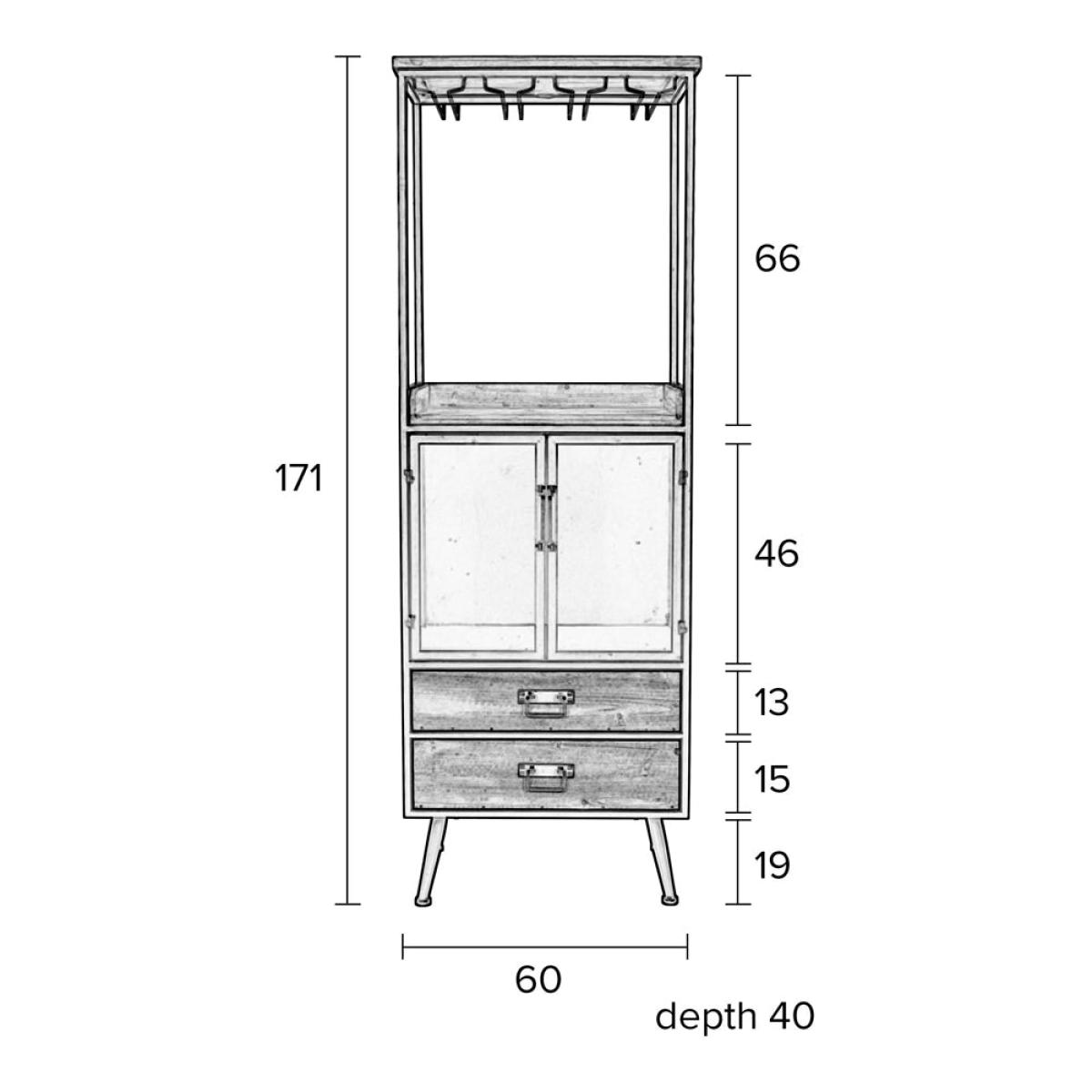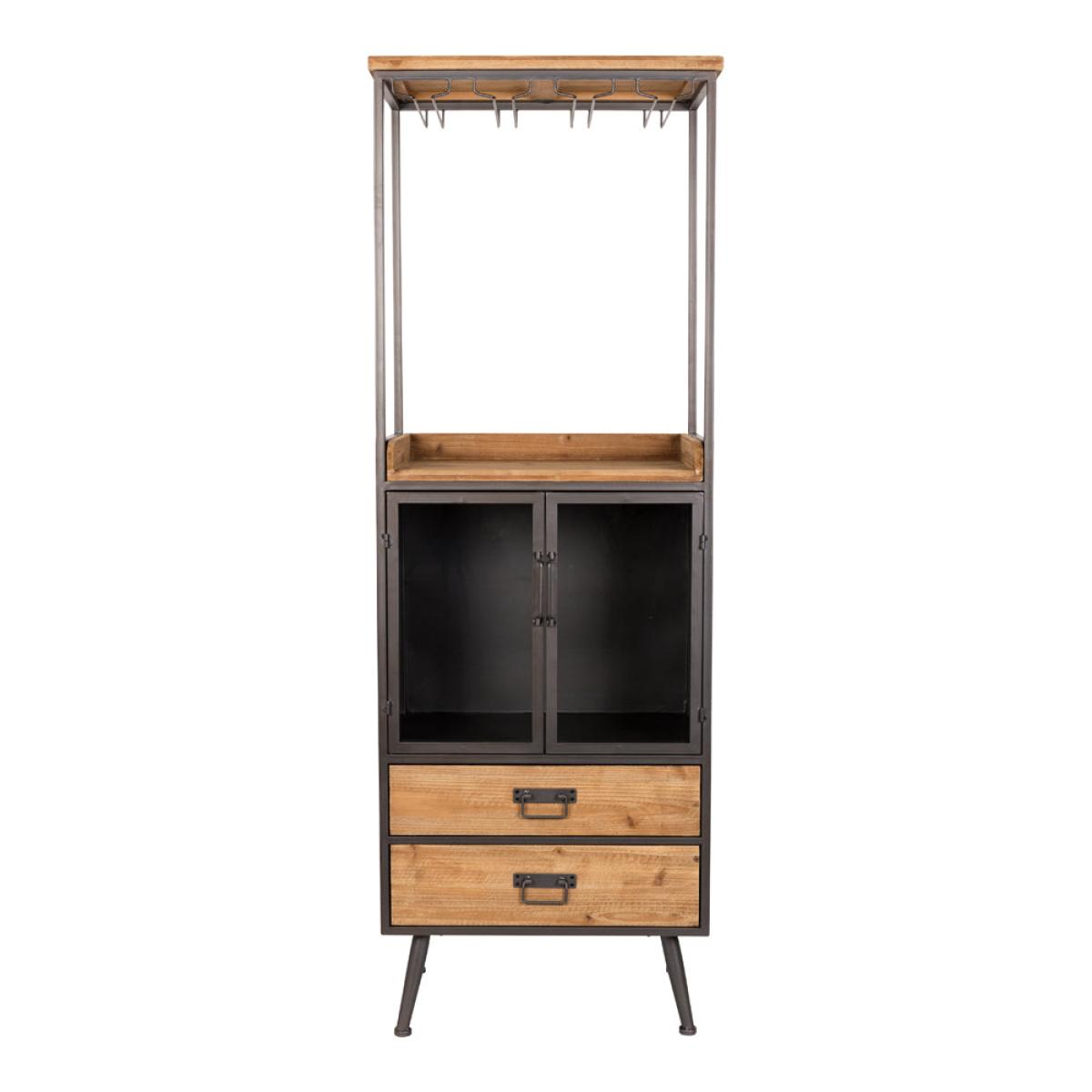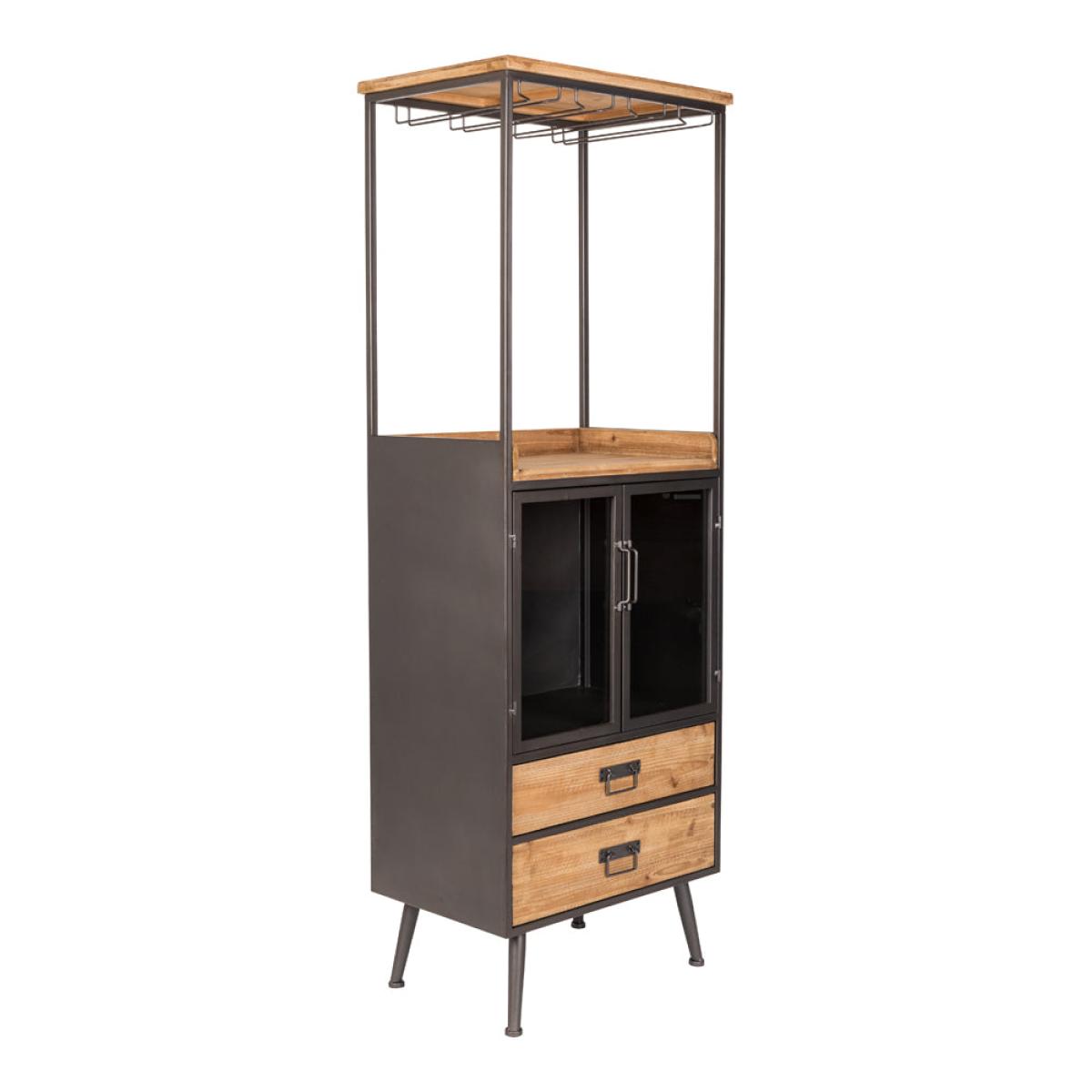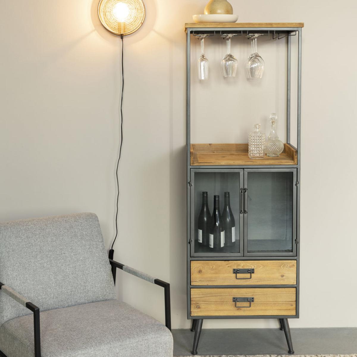 A stylish item of furniture that is also multi-functional and offers flexible storage, the Dana High Cabinet in brown from Olivia's Nordic Living Collection is a vital addition to any home. This fabulous cabinet offers drawers and cupboards and places to hang glasses in one beautifully designed package. The frame is sturdy iron with a fashionable powder coating in versatile grey. The doors are made of tempered glass for a sleek look and the shelves are made of timelessly appealing wood. You'll need to assemble this cabinet yourself, but it will be worth the effort for a long lasting impact in any setting. Dimensions: H: 171 x W: 60 x D: 40 cm Materials: Fir wood top shelves. Grey powder coated iron body and handles. Tempered glass doors. Assembly Required: Yes