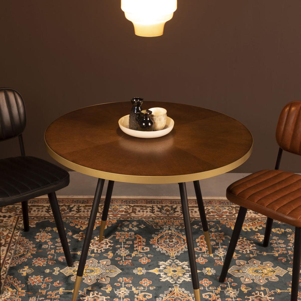 If you are looking for a dining table that is able to be a practical piece of furniture for everyday use as well as a stylish and chic addition to your home furnishings, consider the Daven round dining table. This dining table has a sleek and slender metal frame featuring a gold-painted coat on the exterior, which combines excellently with the patterned ash wood veneer of the tabletop to create a perfect fusion of minimalist, contemporary designs and authentic Scandi designs. The Daven round dining table is also well sized for a wide range of living spaces, measuring 75cm in diameter.