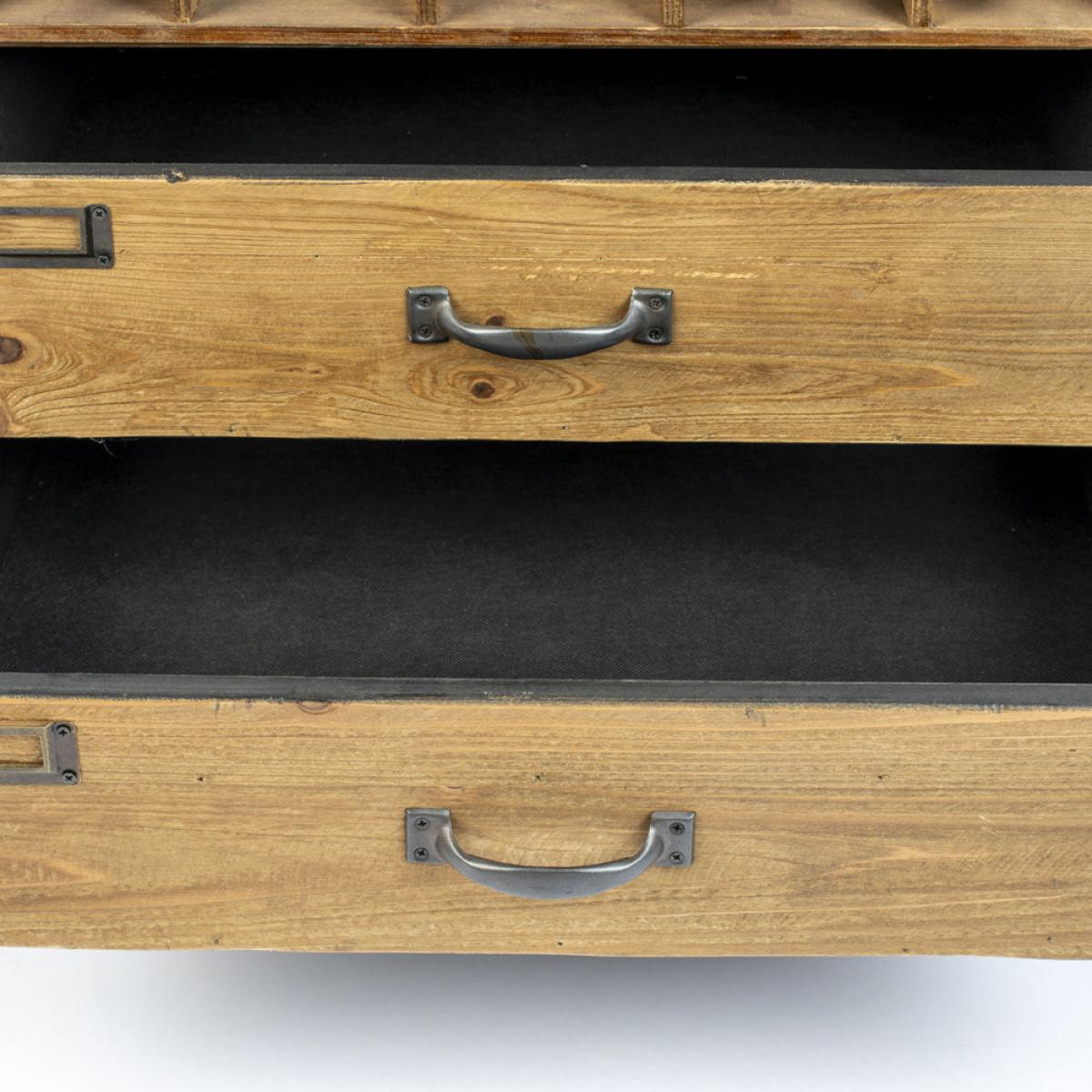Olivia's is proud to present the Eiliv Cabinet, new from the Nordic Living Collection. This stunning cabinet requires no assembly and is the perfect solution to keeping belongings stored neatly in. View More. Olivia's is proud to present the Eiliv Cabinet, new from the Nordic Living Collection. This stunning cabinet requires no assembly and is the perfect solution to keeping belongings stored neatly in its multiple drawers. The solid wood top and table compartment provide extra storage and surface space, whilst the overall aesthetic is one of high-end luxury. Black metal circular handles add to its sleek appeal, as do the four sturdy supportive wooden legs, making this piece ideal for use as a TV stand or stylish storage solution for your reception rooms. Materials: Solid fir wood top and table compartment. MDF drawers with fir wood front. Grey powder coated iron fir. Assembly Required: No.