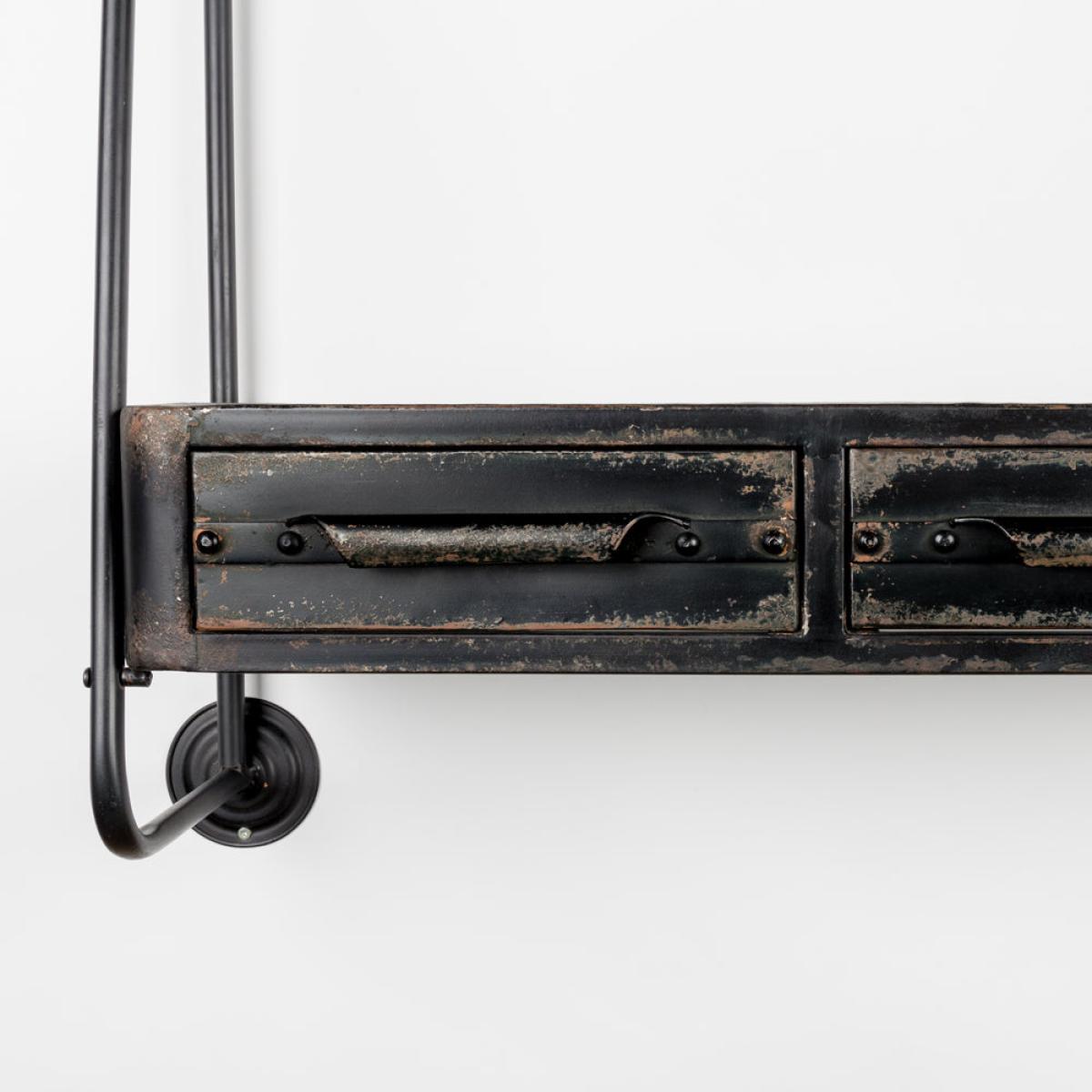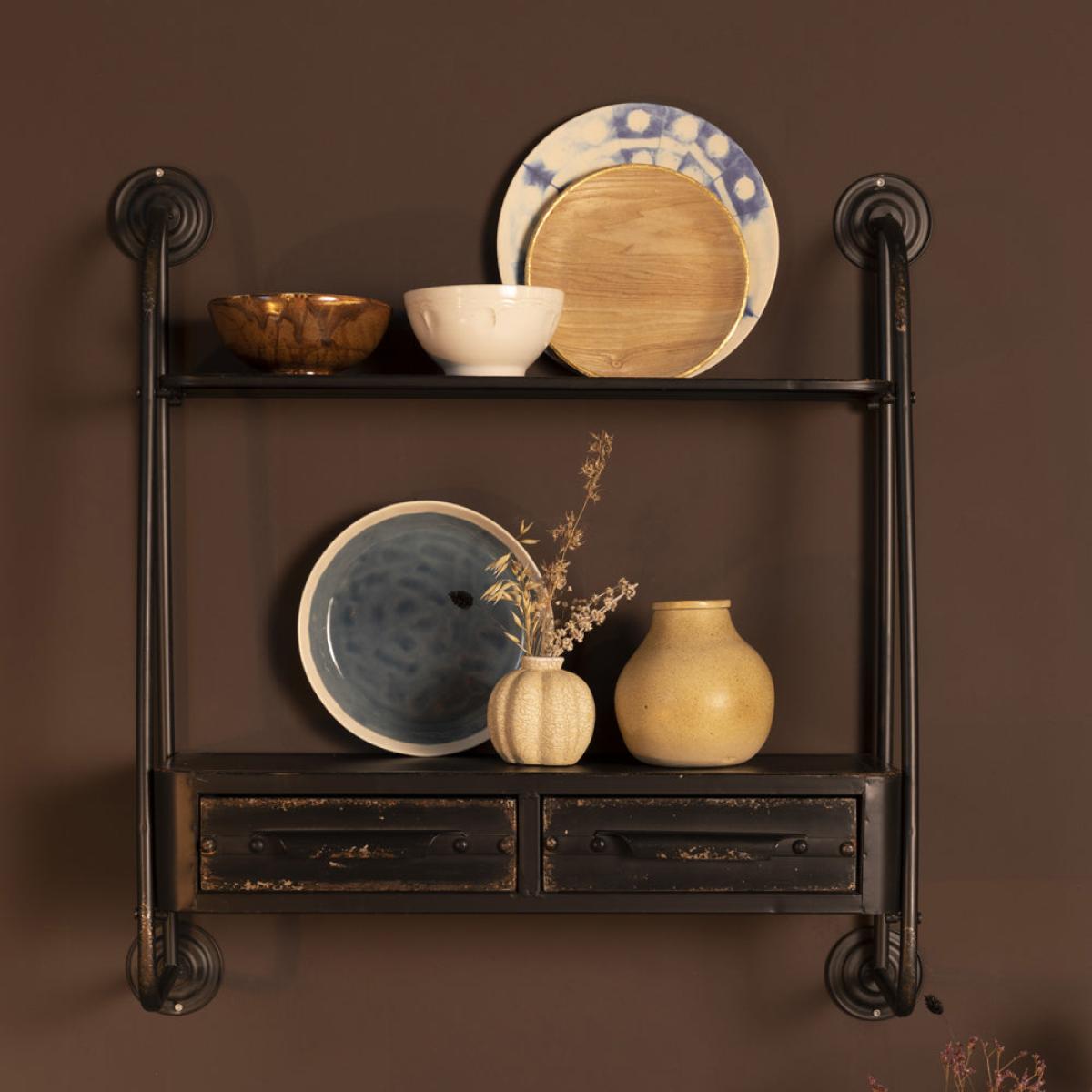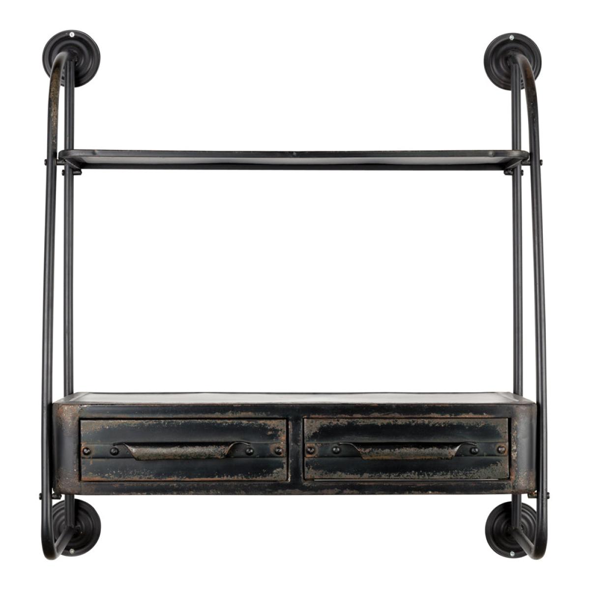 Distinctive and channelling a chic industrial design vibe, this shelving unit makes a strong visual impact whilst being also very practical. Olivia's Nordic Living Collection - Fiske Wall Shelf in. View More. Distinctive and channelling a chic industrial design vibe, this shelving unit makes a strong visual impact whilst being also very practical. Olivia's Nordic Living Collection - Fiske Wall Shelf in Black brings drawers and a shelf together in one sleek unit that can be fixed to the wall to provide versatile and stylish storage. The unit is made of durable and long-lasting iron and has a fashionable distressed finish that combines elements of rust and wax for a unique look. The drawers are complemented by handles with a bold minimalist appeal that will look great in a range of modern settings.