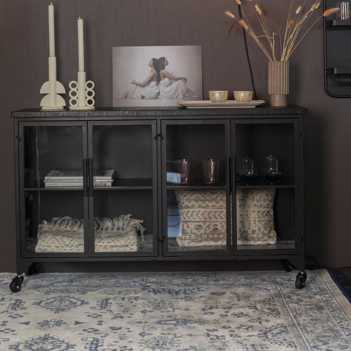 Introducing the Frey Low Cabinet in Black – A Luxurious Addition to Your Living Spaces If you're looking to add a touch of luxury to your living spaces, look no further than the Frey low cabinet in black – a stunning piece of furniture from our Nordic Living collection by Olivia's. This cabinet is the perfect combination of functionality and design, with a sleek black lacquered coating that has a beautiful sheen that will catch the eye of anyone who walks into the room. Stylish and Versatile Not only is the Frey low cabinet a beautiful piece of furniture, but it's also incredibly versatile. The dimensions of the cabinet are H: 75 x W: 35 x L: 120 cm, making it the perfect size for a variety of uses. Use it to display your treasured ornaments or family photos, or take advantage of its spacious interior to store your favorite books, games, or other household items. You could even use it as a drinks store when entertaining guests, or simply as a place to store your favorite wines. Elegant and Easy to Assemble The Frey low cabinet is made from a combination of lacquered solid MDF wood and fir wood veneer for the top part. Its black powder-coated legs give it a sturdy base that will last for years to come. Assembly is a breeze, with everything you need included in the box. You'll have your new cabinet up and ready to use in no time. With the Frey low cabinet in black, you'll add a touch of luxury to your living spaces, while also enjoying the benefits of a stylish and versatile storage solution. Order yours today and see for yourself why this beautiful cabinet is a must-have for any home. Dimensions: H: 75 x D: 35 x W: 120 cm Materials: Lacquered solid MDF wood and fir wood veneer for top part. Black lacquered coating. Black powder coated Assembly Required:Yes