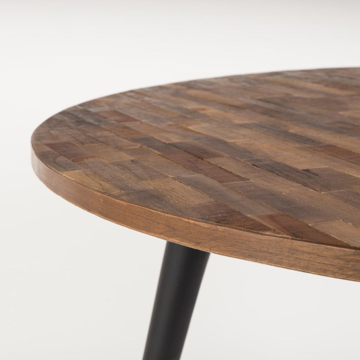 Do you like hardwood furniture but worry about the sustainability of it? The Joran dining table from Olivia's Nordic Living Collection offers an attractive solution, being made from recycled teak o. View More. Do you like hardwood furniture but worry about the sustainability of it? The Joran dining table from Olivia's Nordic Living Collection offers an attractive solution, being made from recycled teak on matte black coated steel legs. This wood on metal style of furniture is of course very popular but also has the advantage of already being a classic, rather than a fast furniture fashion item. With a circular table top set on simple black legs, and with its sensible dimensions, Joran is suitable for use in a wide range of spaces. Sustainability by design! Dimensions: H: 76 X L: 110cm.