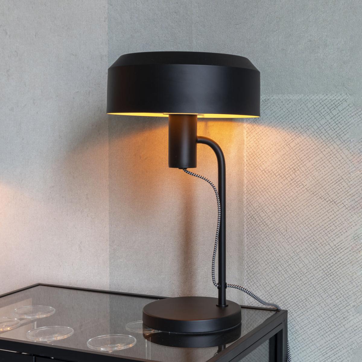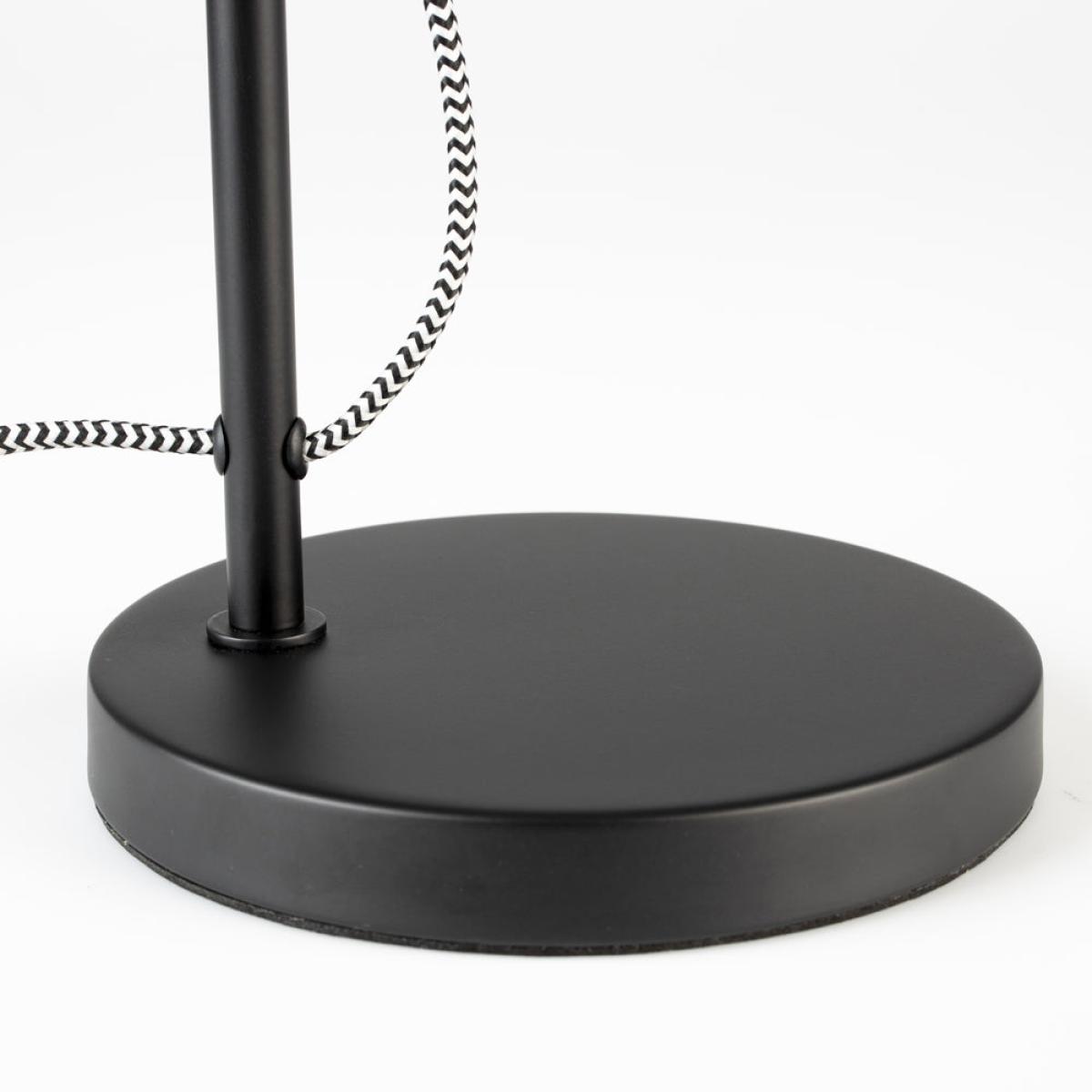 The Larson table lamp is a classic design that will never go out of style. Perfect for people of all age groups and design preferences, this timeless desk lamp has a black powder coated iron shade,. View More. The Larson table lamp is a classic design that will never go out of style. Perfect for people of all age groups and design preferences, this timeless desk lamp has a black powder coated iron shade, body and base whilst the cable is wrapped in cotton fabric to soften the overall appearance. The Larson table lamp is the perfect size to fit on a bedside table or desk in a study, at 42cm high and 24cm square. With a 160cm long cable, there is plenty of scope for placing this lamp within your space. Monochrome is always fashionable and neutral.
