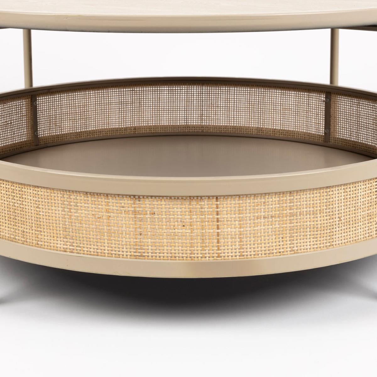 You'll be sure to love the effortlessly stylish look that the Maki Coffee Table in Sand provides. Part of the elegant Nordic Living Collection at Olivia's, this handsome coffee table showcases plenty of pared back Scandinavian style, thanks to its clean lines of design and soft, subtle neutral tones. Meanwhile, the circular shape of this alluring coffee table adds a touch of the unexpected, ensuring that this piece will provide a stunning focal point in a sophisticated living area, hallway or snug. As practical as it is good looking, this table also provides useful storage space with a rattan-enclosed shelf included.