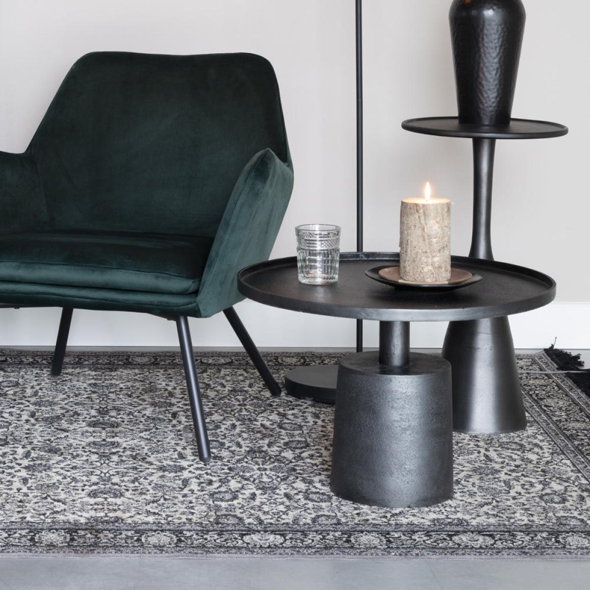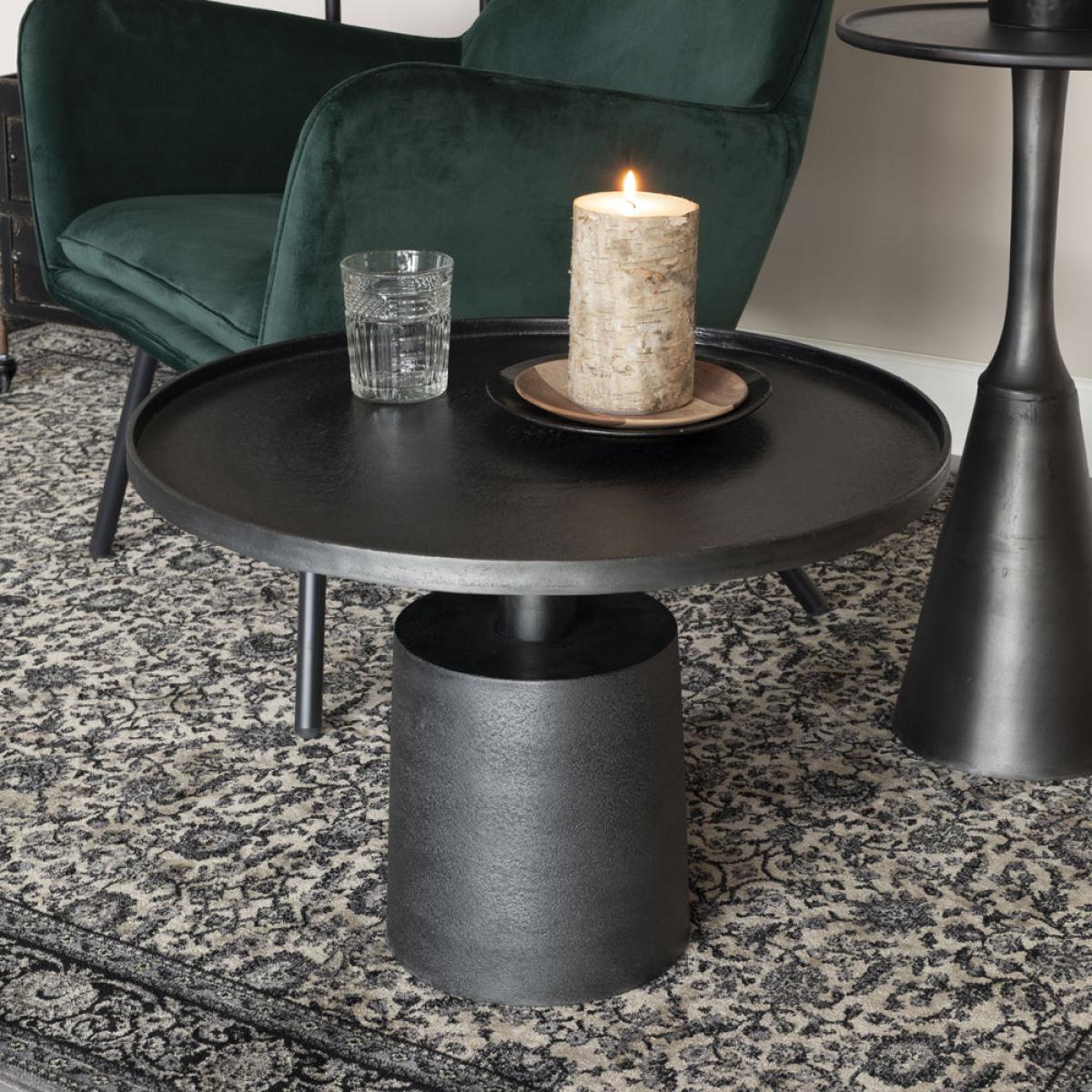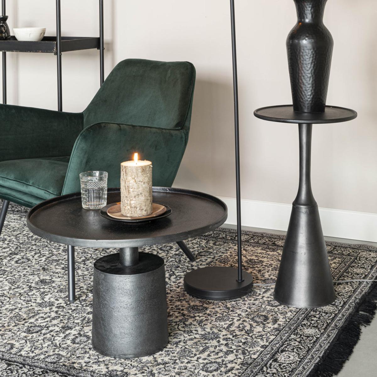 Add a touch of minimalist modern flair to your lounge or living room with the Mana coffee table in antique black from Olivia's Nordic Living Collection. Featuring an aluminium tabletop and base wit. View More. Add a touch of minimalist modern flair to your lounge or living room with the Mana coffee table in antique black from Olivia's Nordic Living Collection. Featuring an aluminium tabletop and base with antique black finishing, this funky table offers a unique, simple design and raised edges. Measuring 60cm in diameter, it's a medium-sized table that would look great in both smaller and larger living rooms. Style Mana in front of a cool statement sofa and layer some elegant fashion magazines and funky retro glasses on its surface. A sure-fire style statement that will impress both family and guests alike!.