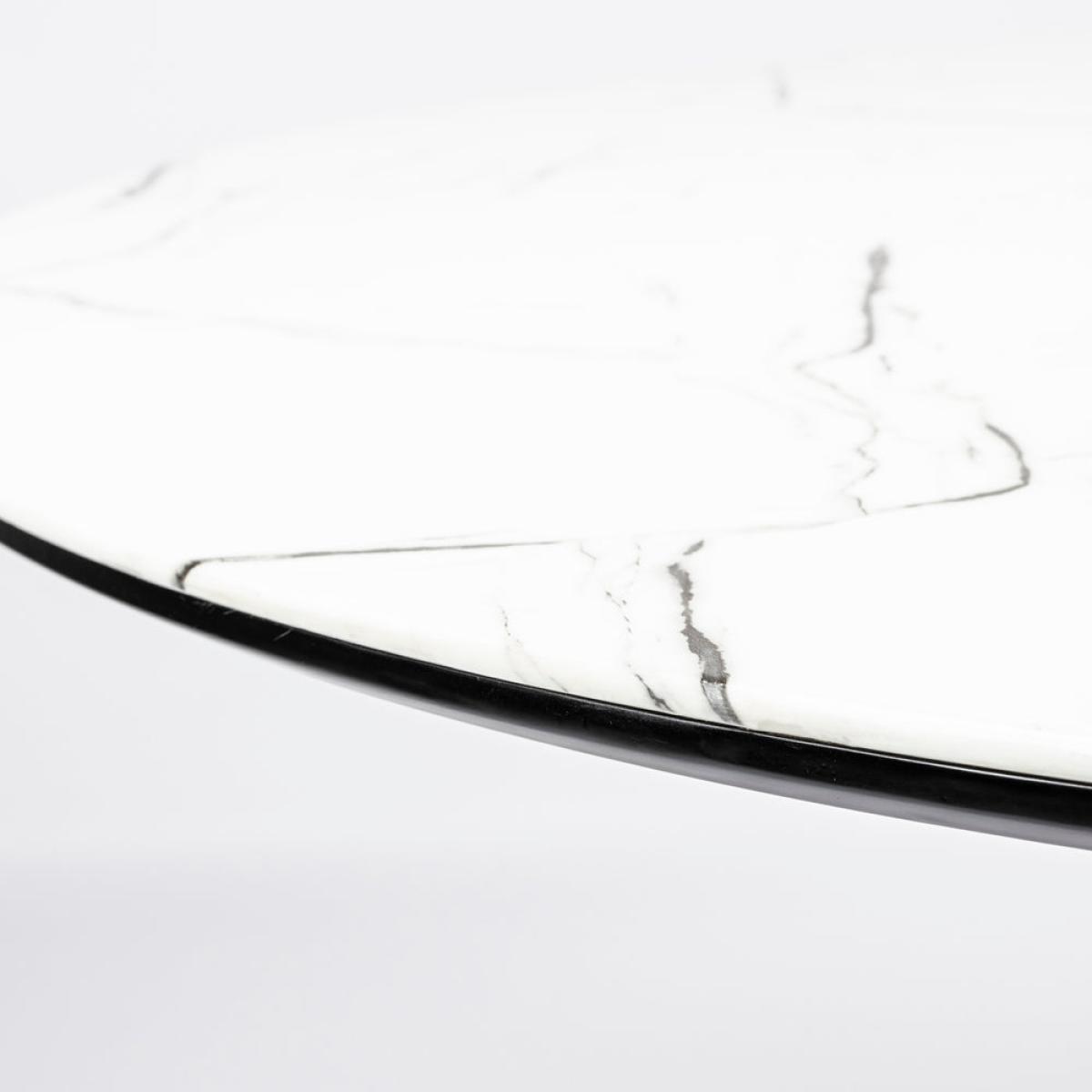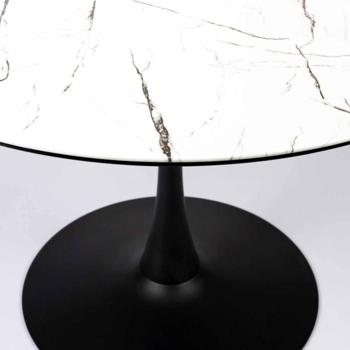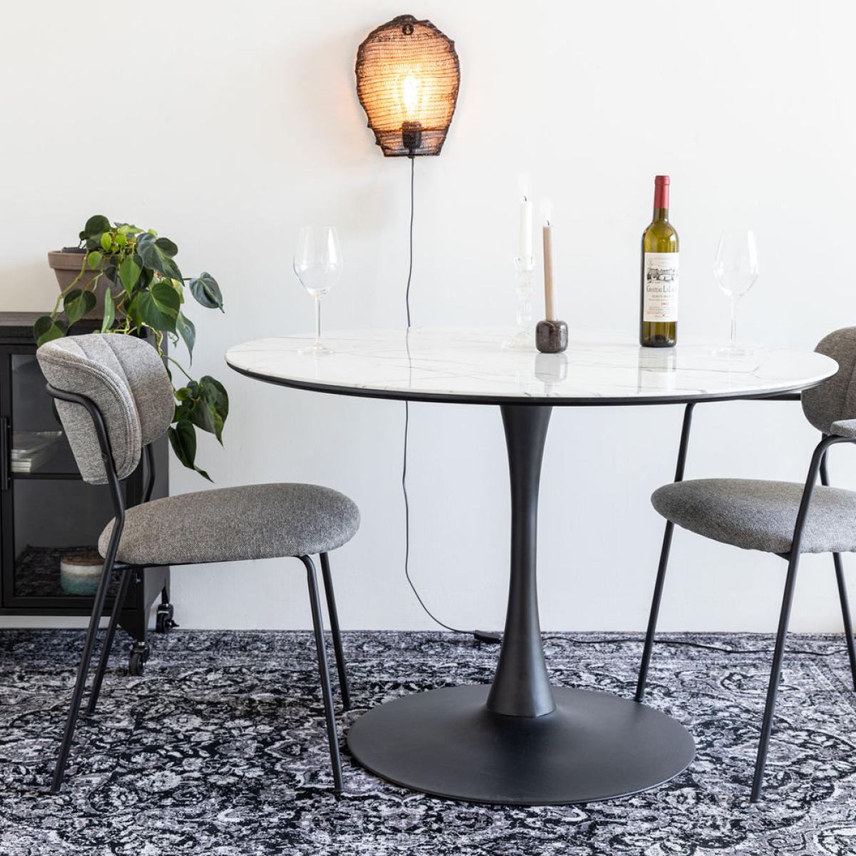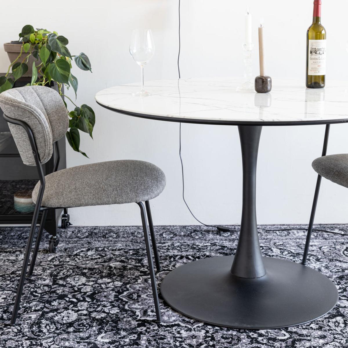 The Mary dining table is part of the wonderful Nordic Living Collection here at Olivia’s and will be a stunning addition to your home. Ideal for a small and intimate dining space, the table has a beautifully formed tulip base which offers your diners ample leg room. The luxurious white marble-effect finish will add glamour to any room, and the black iron base contrasts beautifully with the table top. This dining table is perfect for intimate dinners or suppers and is a truly beautiful choice that has bags of personality. It measures 75 cm in height and is 110 cm in width and depth.