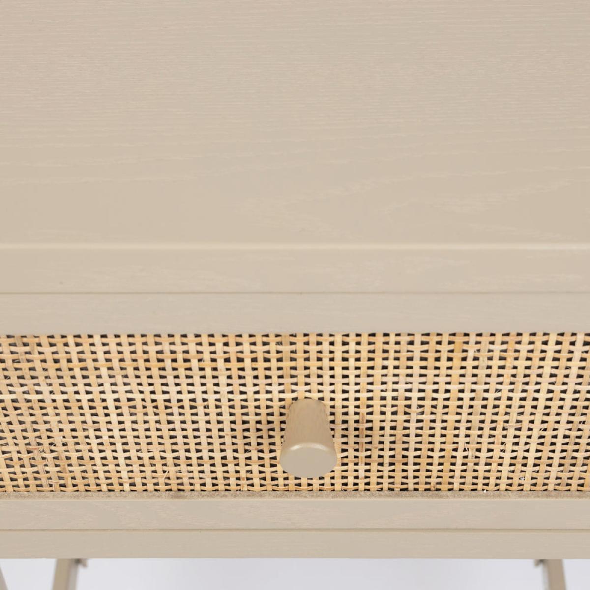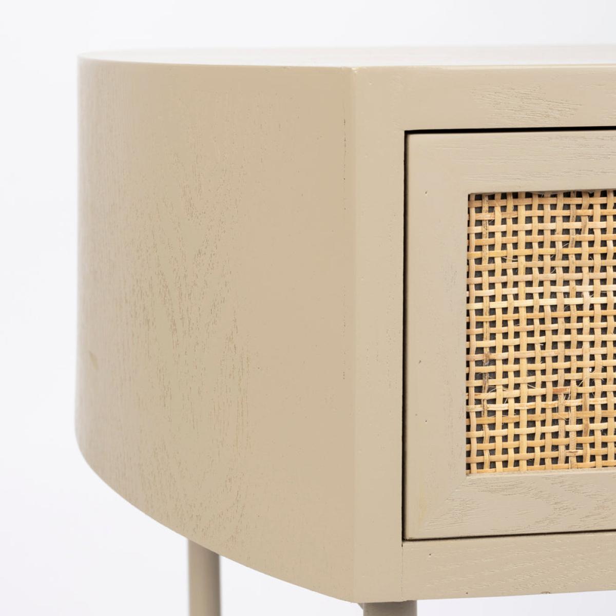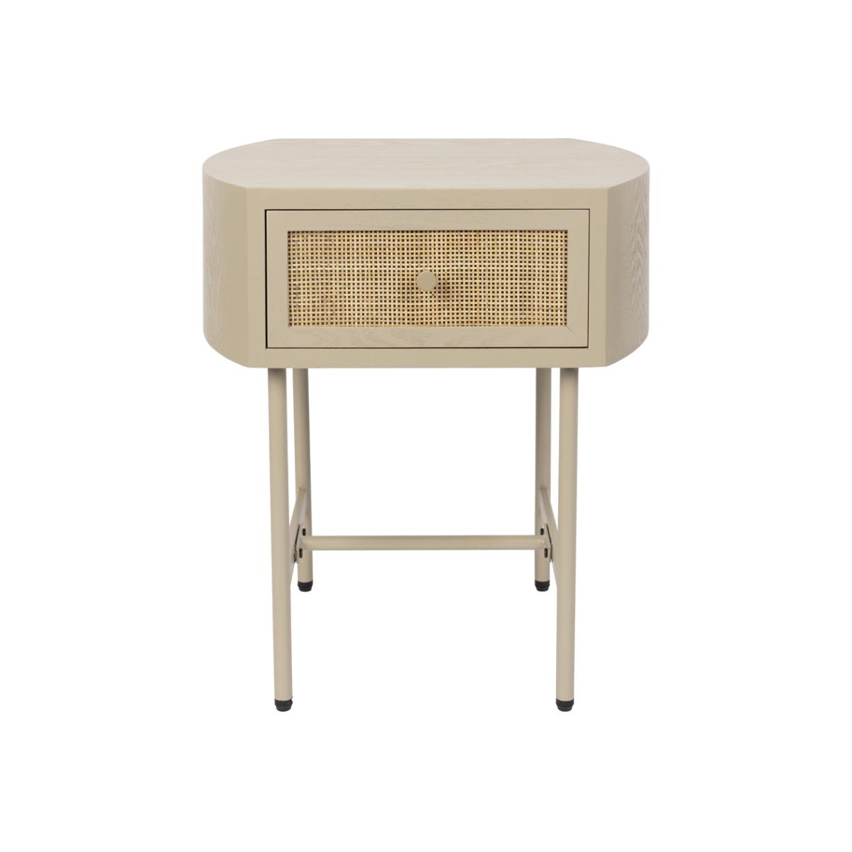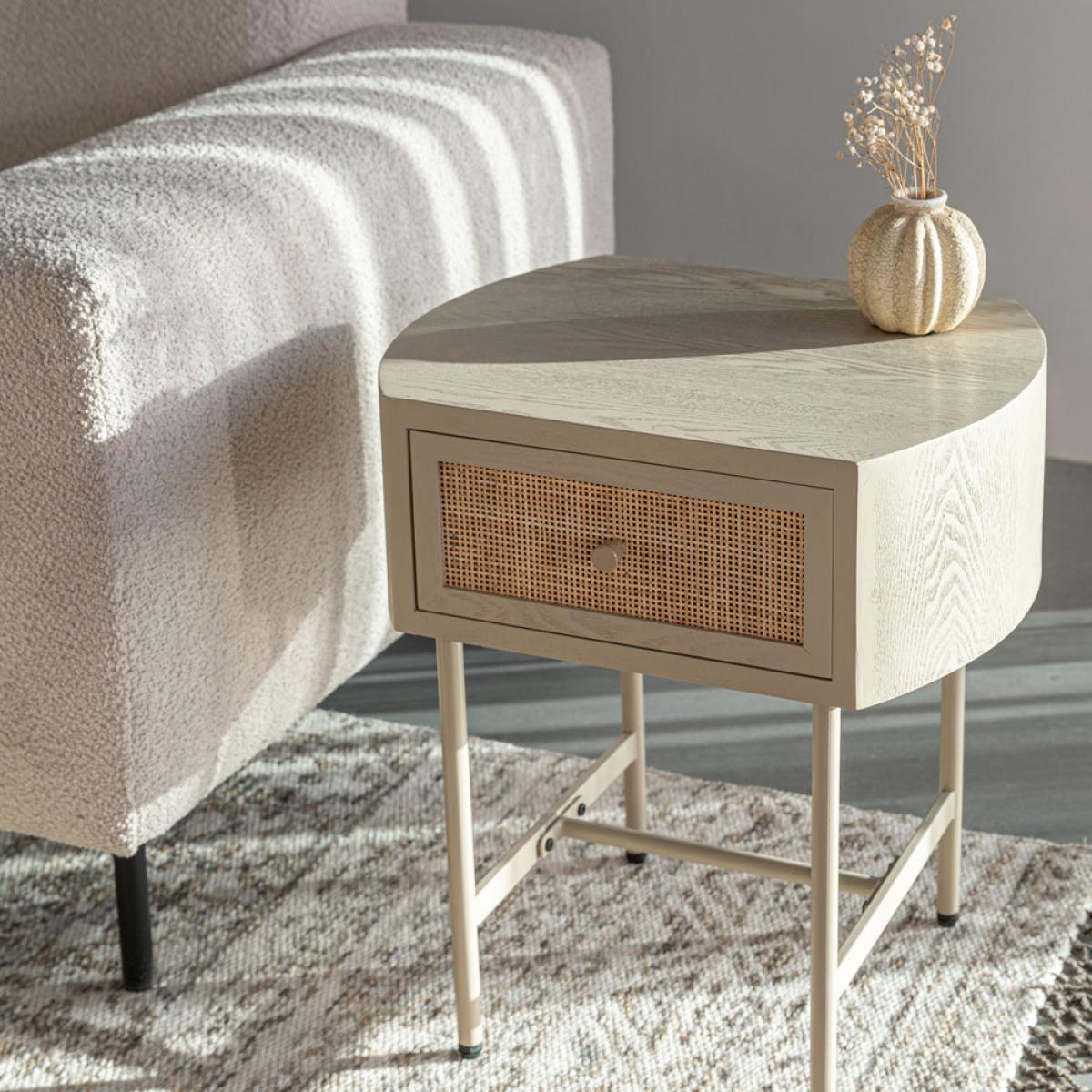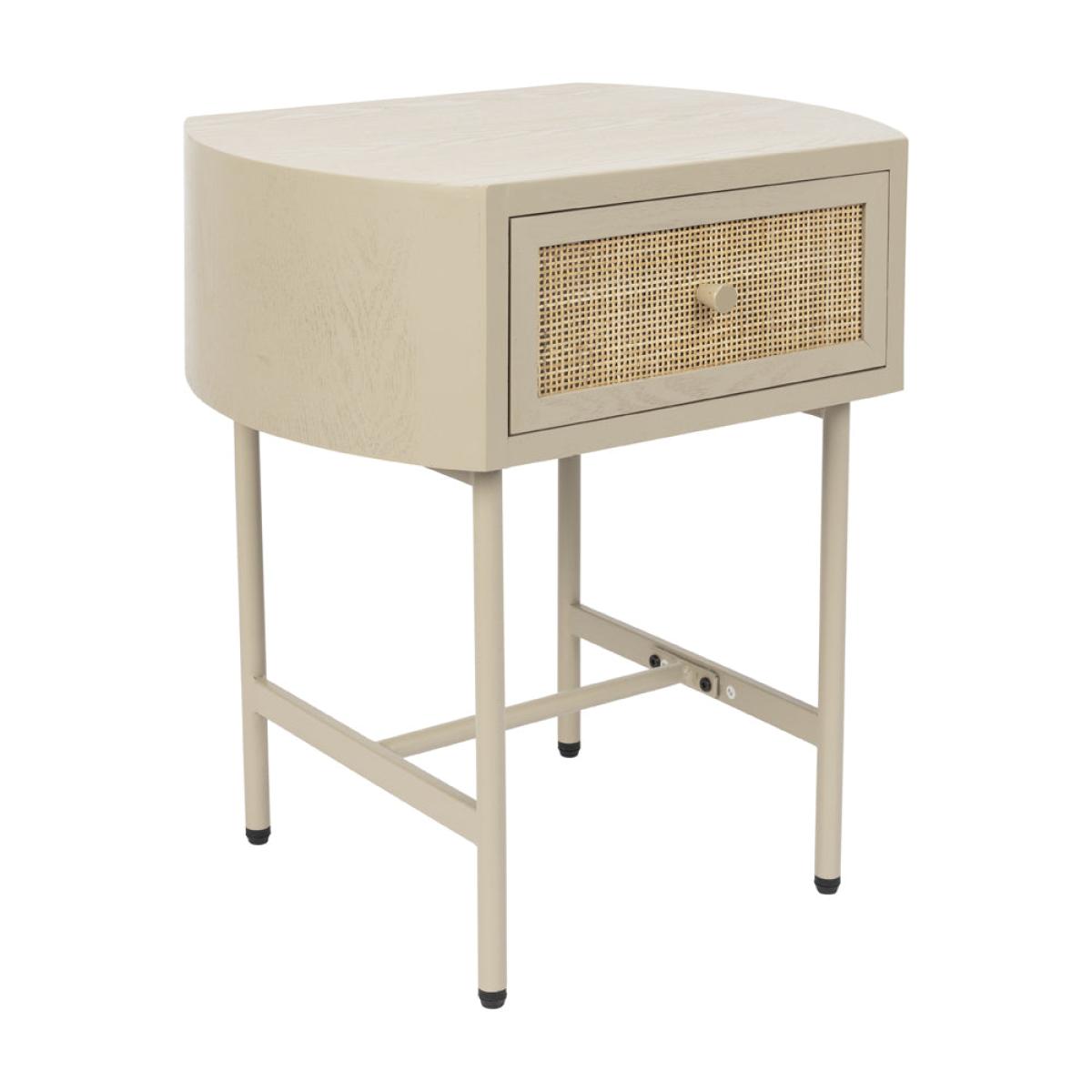 Add easy contemporary style to your bedroom or living area with the Olivia's Nordic Living Collection Maya Side Table in Beige. This softly coloured, tactile side table has real aesthetic appeal thanks to its combination of wood and rattan, suspended on powder-coated iron legs. The Olivia's Nordic Living Collection Maya Side Table in Beige measures H: 54 x W: 48 x D: 38 cm and is made from composite woods and lacquer for durability. This piece only needs basic assembly and it can be easily cleaned with a damp cloth as required to maintain its simple, striking and elegant good looks.