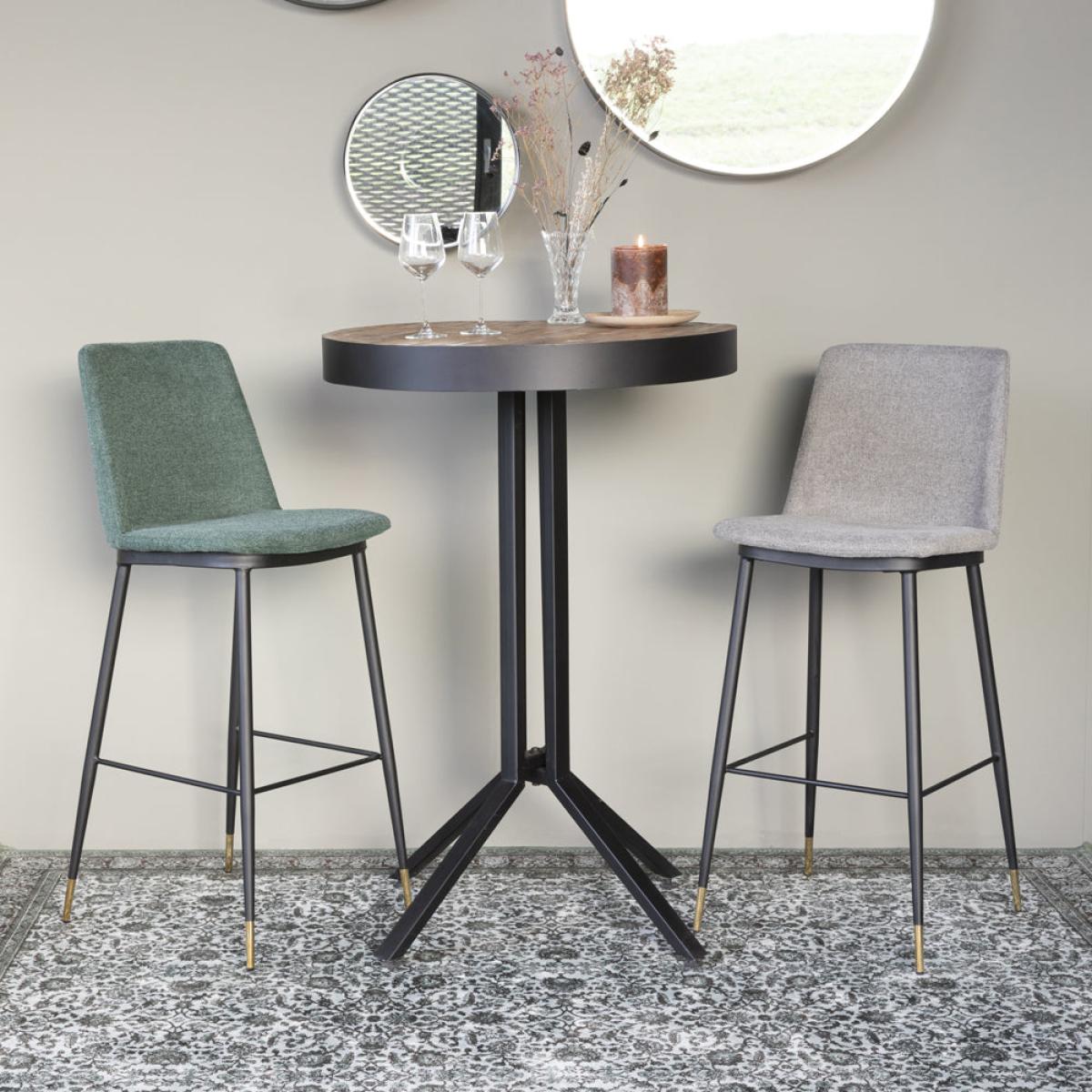 The Mikkel Round Bar Table in Natural from Olivia's Nordic Living Collection will complete your living space, adding an industrial sense of style. This solid round table is wonderfully crafted from durable recycled teak which is set in a powder-coated steel border; the steel extends to the legs, enforcing the contemporary vibe. Its minimalistic size means the Mikkel Round Bar Table would suit a modest area, but its modern and sleek design will still create a maximum impact. The black powdered steel and lacquered table top elevate the piece, and the natural shade of teak will suit many interior shades. Measures 110cm in diameter. Dimensions:Dia: 75 x H: 110 cm Materials: Lacquered recylced teak table top with powder coated steel border. Powder coated steel legs Assembly Required:Yes