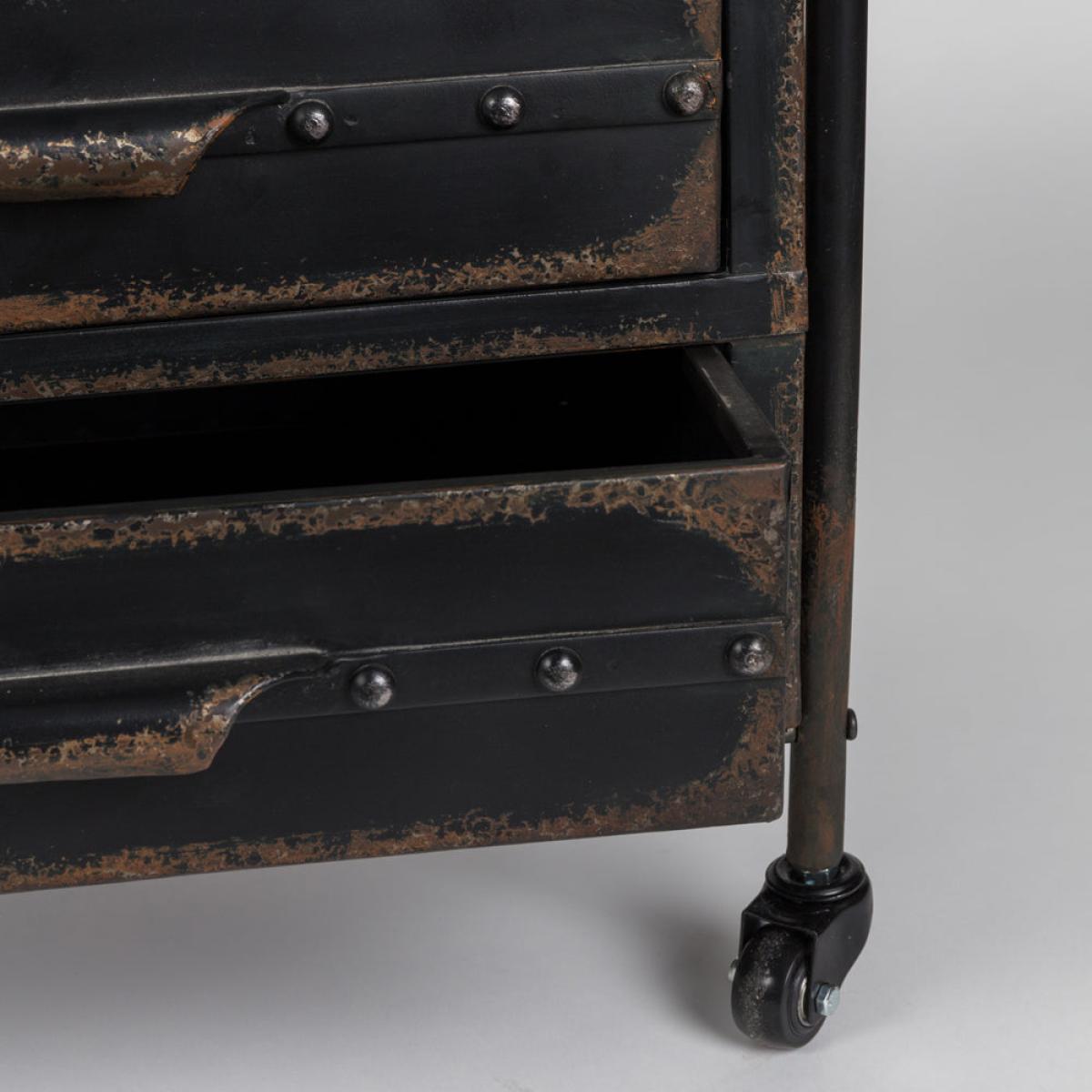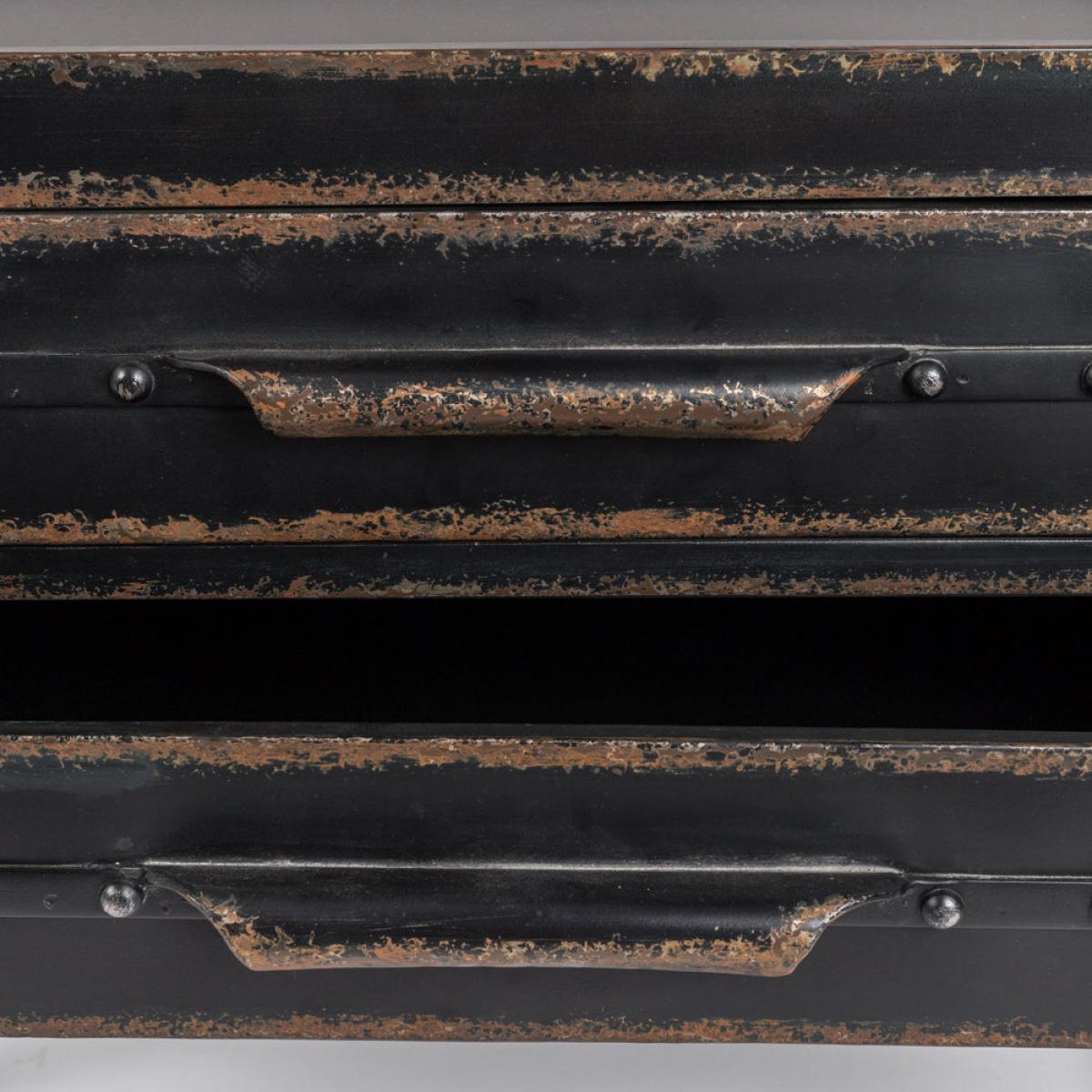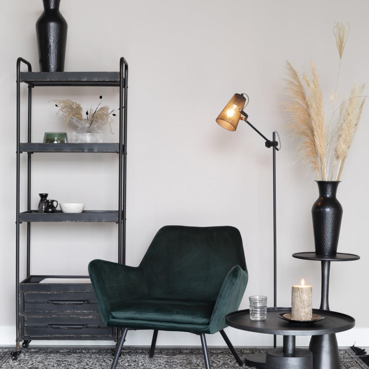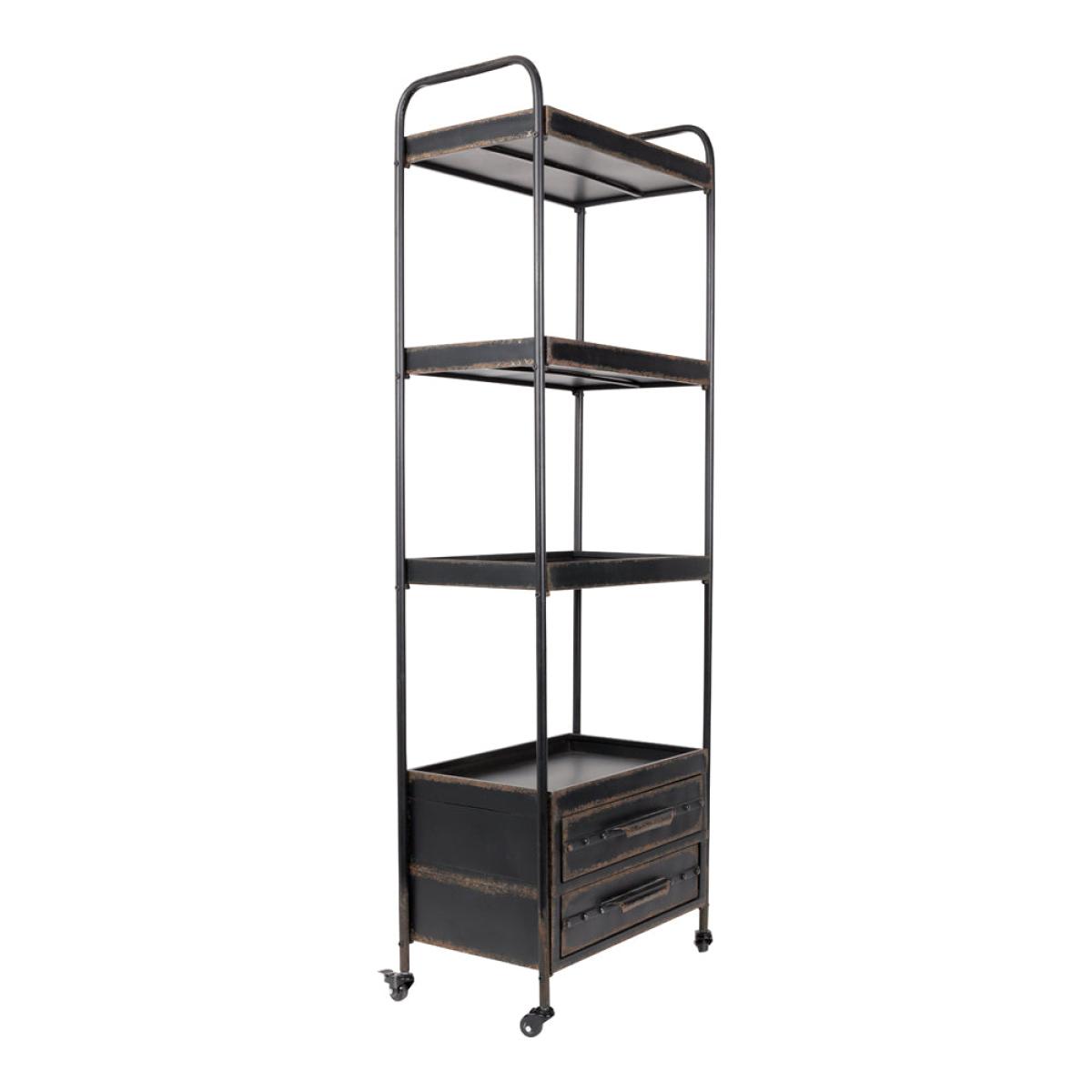 We are proud to introduce the Rorric Shelf to our Olivia's Nordic Living Collection. The shelf is black in colour and has a rusty look about it which has been created by using powder-coated iron and adding a distressed wax finish. This piece has four shelves and two drawers and would go with the vast majority of interior design styles. The shelf is sure to become the place in your house where you display your various household items such as books, ornaments, picture frames and even plants. This item measures in at 175cm in height, 60cm in width and 37.5cm in length. Dimensions: H: 175 x W: 60 x L: 37.5 cm Materials: Black powder coated iron with distressed wax finish and rusty look Assembly Required:Yes