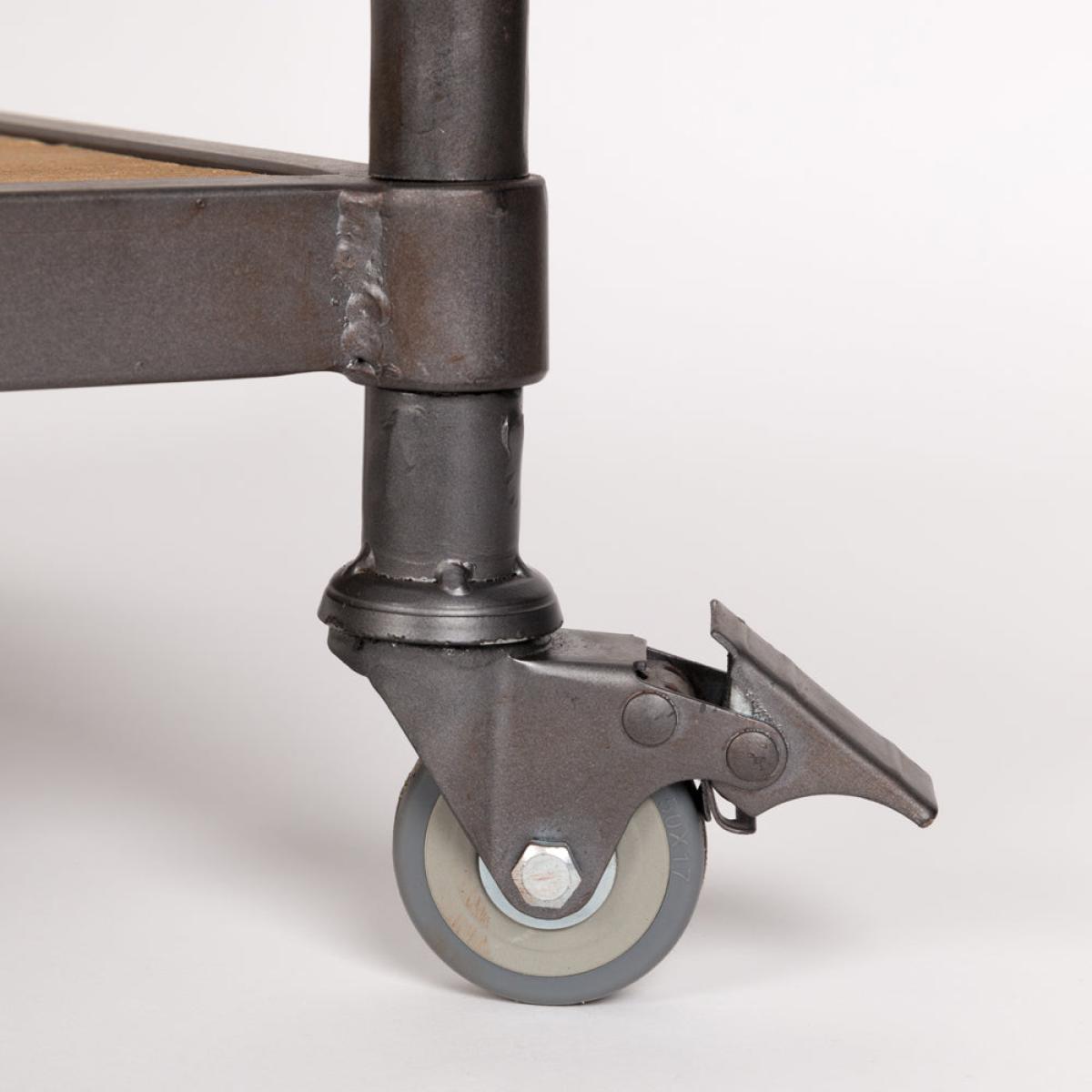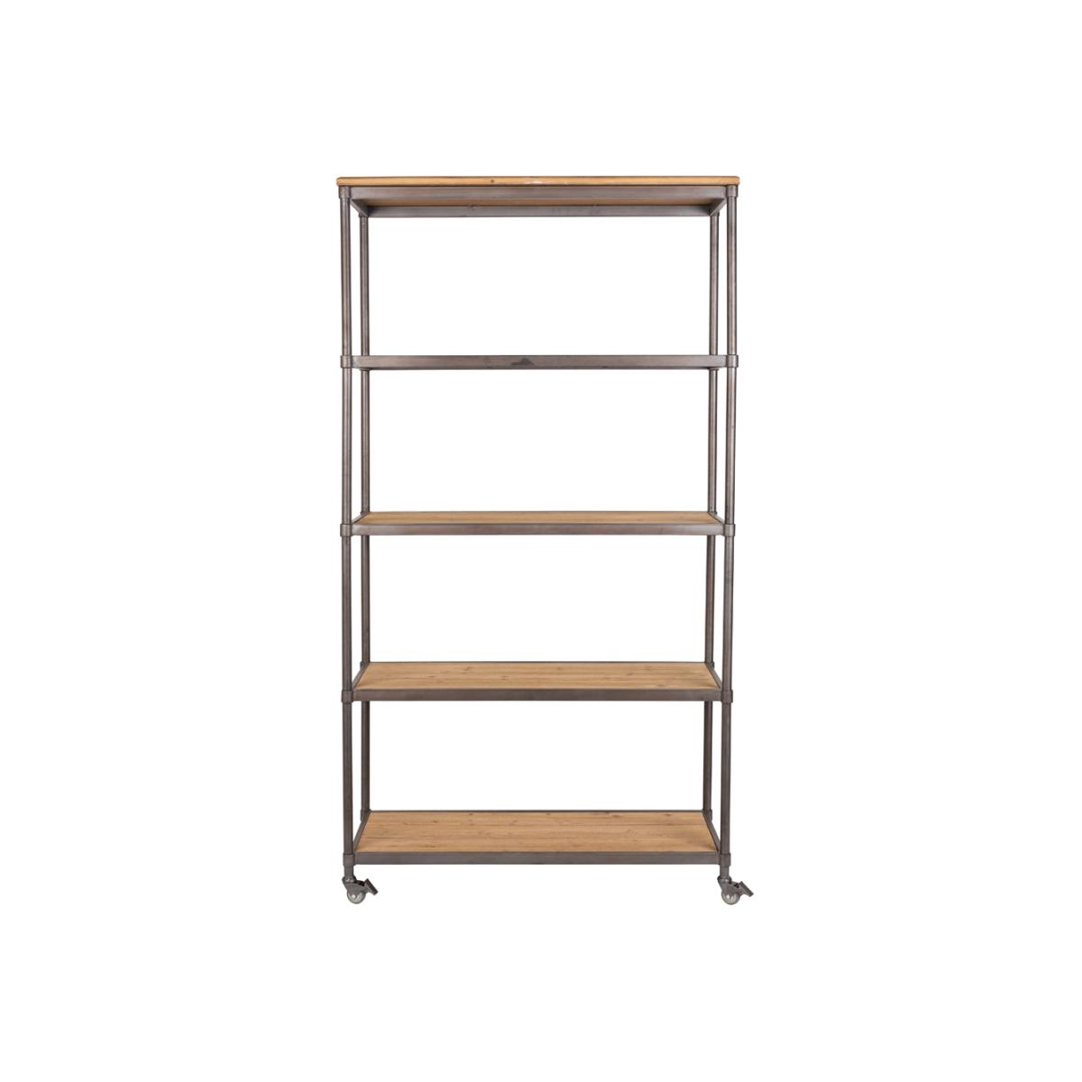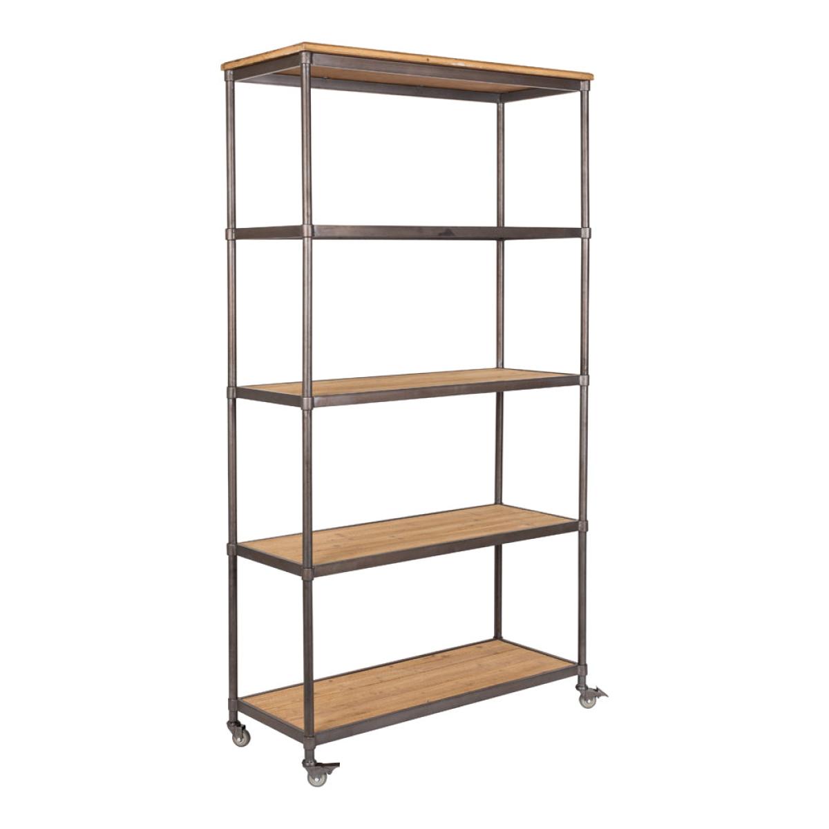 Portable. stylish and incredibly flexible as a storage option, Olivia's Nordic Living Collection Shelby shelf in brown will be a welcome addition to any home. With the effortless appeal of fir wood and a sturdy iron frame with a fashionable grey powder coating, this shelving unit not only looks good but will also give you reliable service for years to come. With its generous shelves, this unit will easily store a range of items from books to collectibles and souvenirs. The unit is on castors, so moving it into position will always be easy. You will need to assemble this unit. Dimensions: H: 184 x W: 100 x L: 39 cm Materials: Fir wood slats on MDF base and grey powder coated border. Grey powder coated iron frame Assembly Required:Yes. Maximum Overall Load Weight: 150kgs