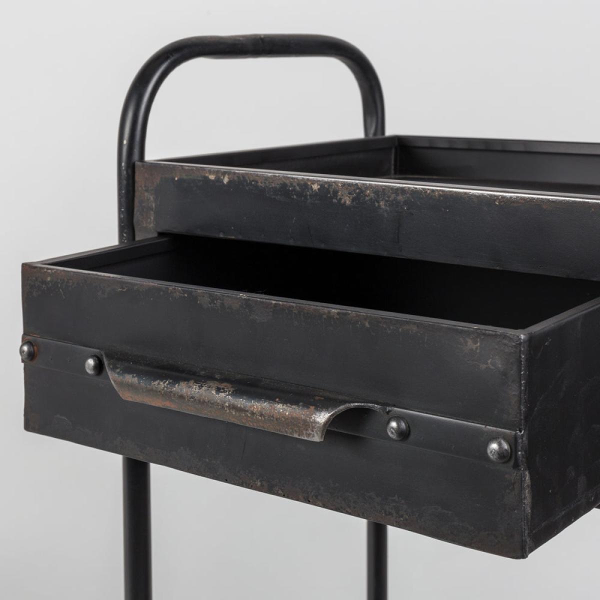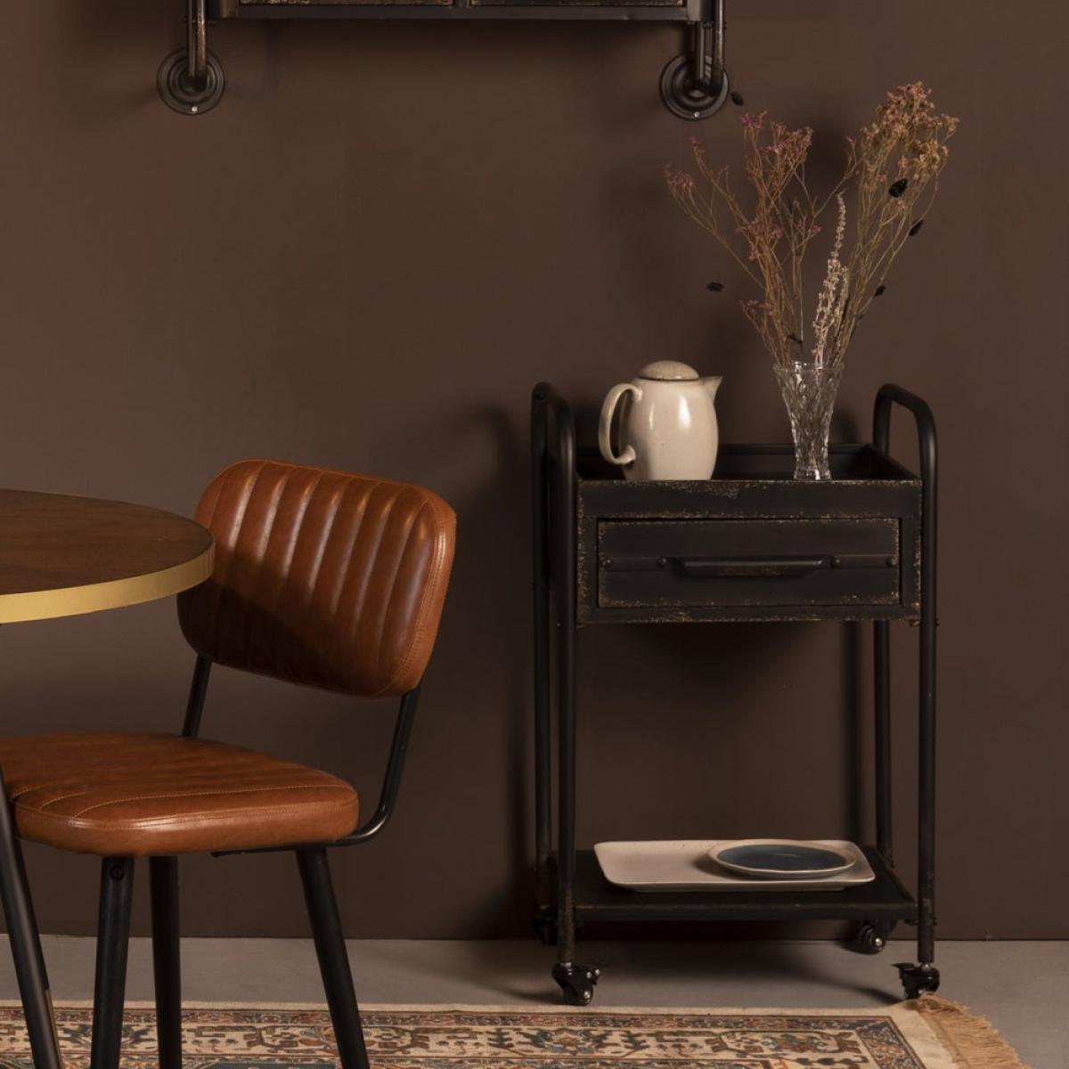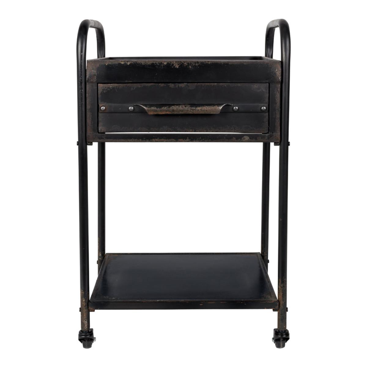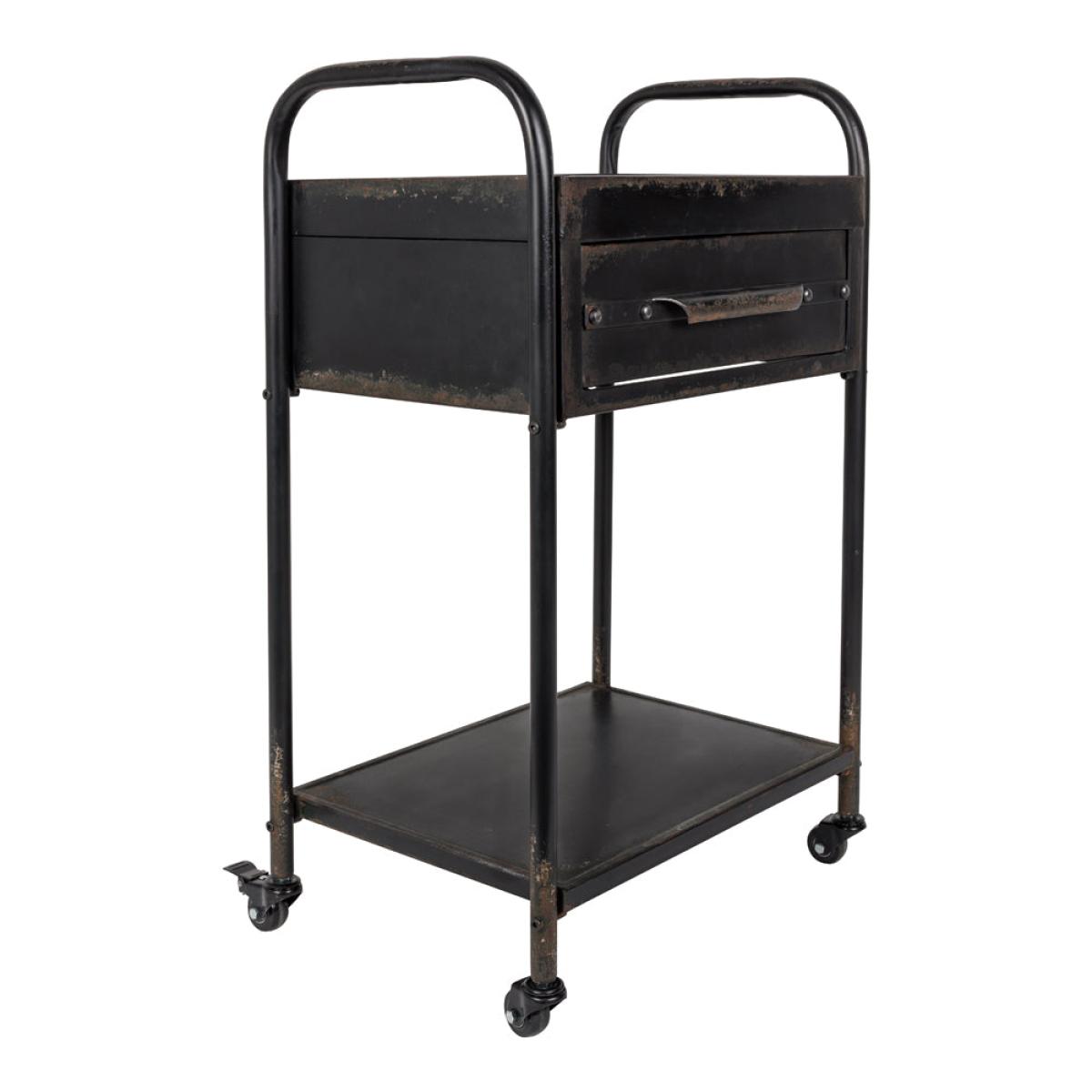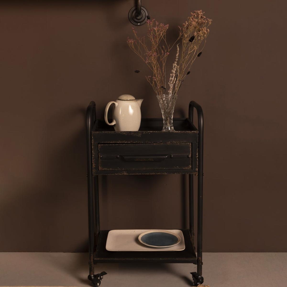 Add a steampunk vintage vibe to your home with this quirky Wade trolley in black from Olivia’s Nordic Living Collection. Featuring a black powder-coated iron frame with a rusty effect and a clever wax finish, this is a special piece for those who are looking to add a showstopper to their kitchen or living room. Measuring 81.5cm high, 50.5cm wide and 38cm deep, this is a good-sized trolley that will keep your kitchen essentials to hand. It will also double up as a small bar trolley; for example, picture it holding your finest gins, vintage-style glasses, and a retro drinks recipe holder.