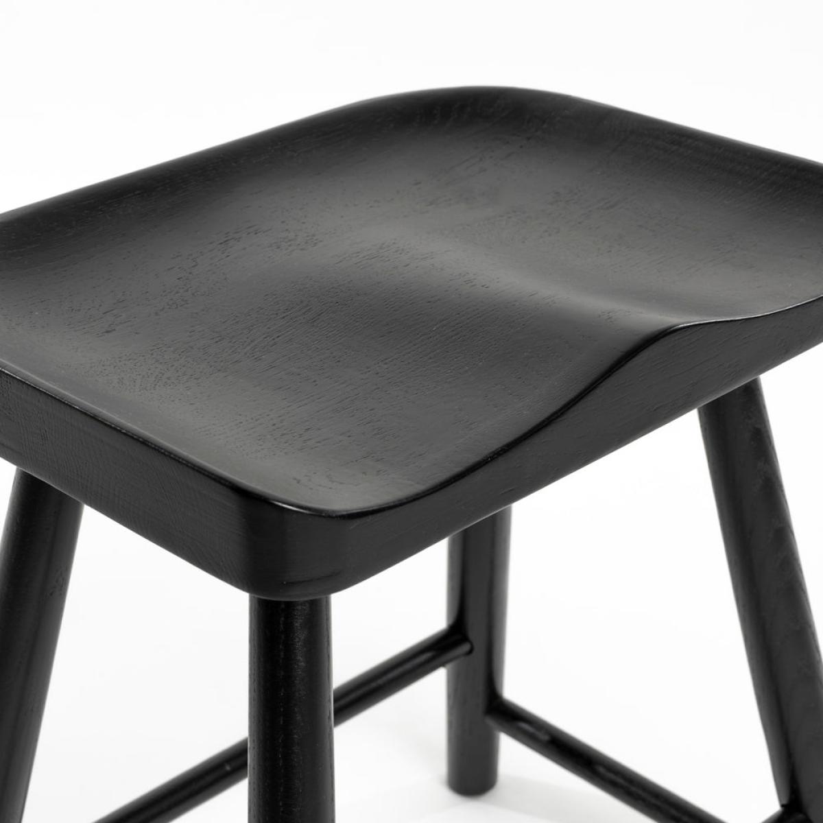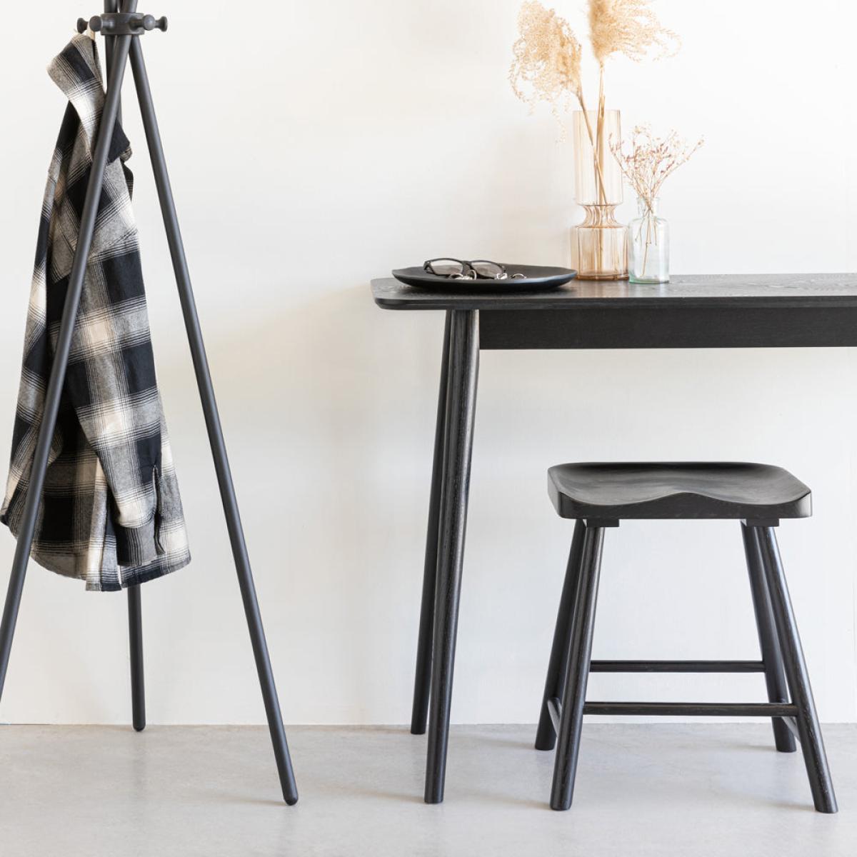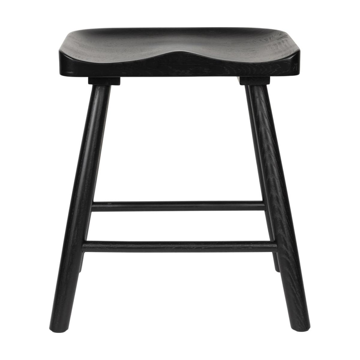 Classic design with a modern twist, the Wander Stool is crafted from solid oak with a black painted finish. High quality, functional and comfortable with a moulded seat and crossbar foot rest, this solid wood stool will add a dramatic accent to a living room, kitchen or study. The black painted finish maintains the look of the woodgrain to create a timeless piece that fits with both modern and traditional décor. The Wander Stool measures 46cm high, 43cm wide and 33 cm deep. To keep your stool looking its best, clean with a soft, damp cloth and avoid harsh cleaners or abrasives.