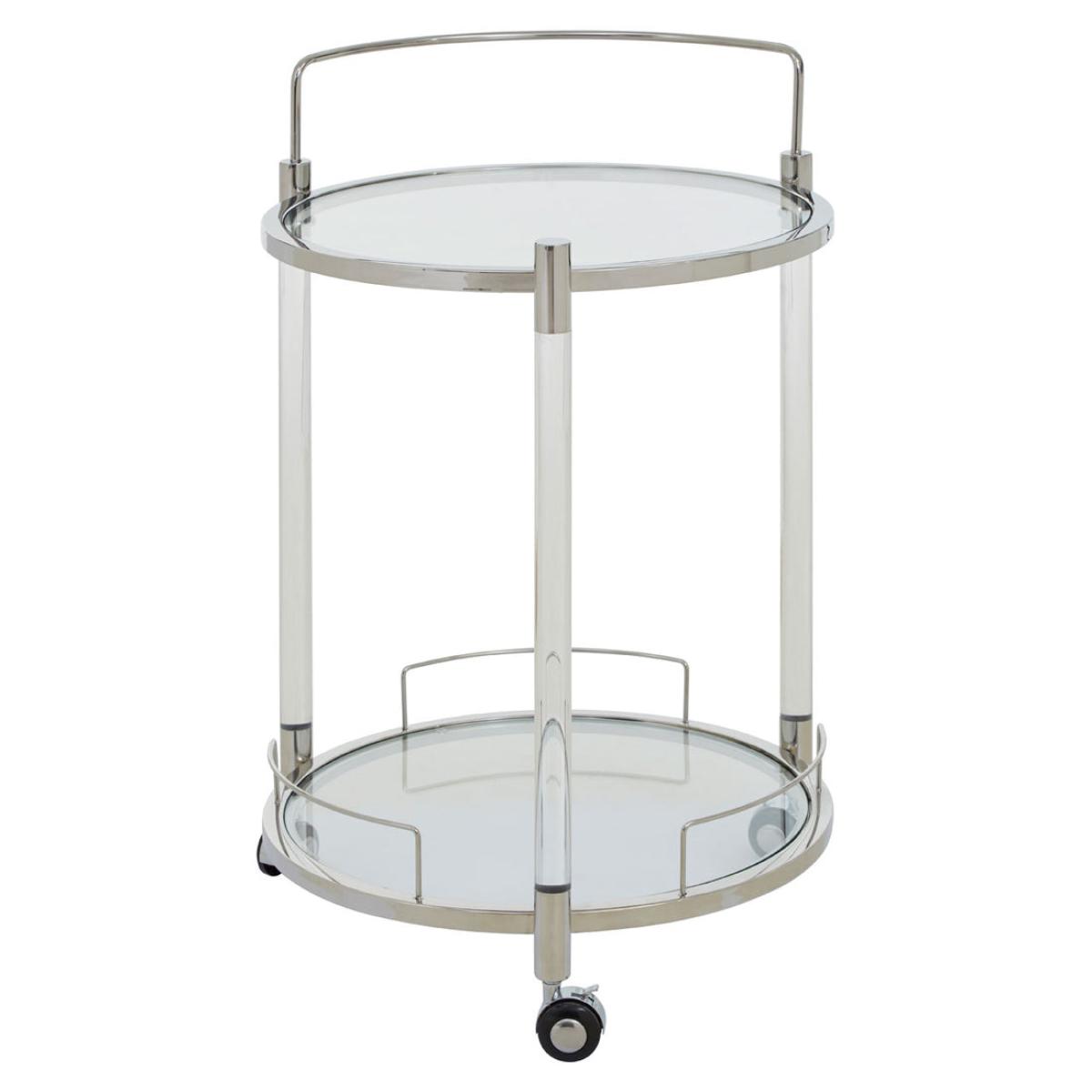 Crafted of acrylic and stainless steel with a lustrous silver chrome finish, this practical and stylish trolley on castors has a mirrored glass lower shelf and tray top. This trolley is ideal for serving cocktails, afternoon tea and more. Dimensions: H: 80 x W: 50 x D: 50 cm Materials: Stainless Steel, Tempered Glass Assembly Required:Yes Care Instructions: Clean With Soft Dry Fabric.