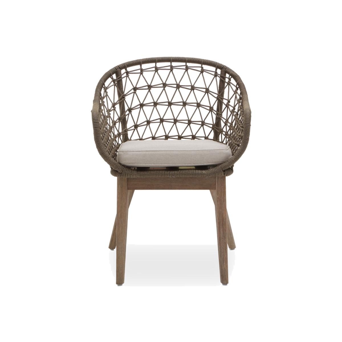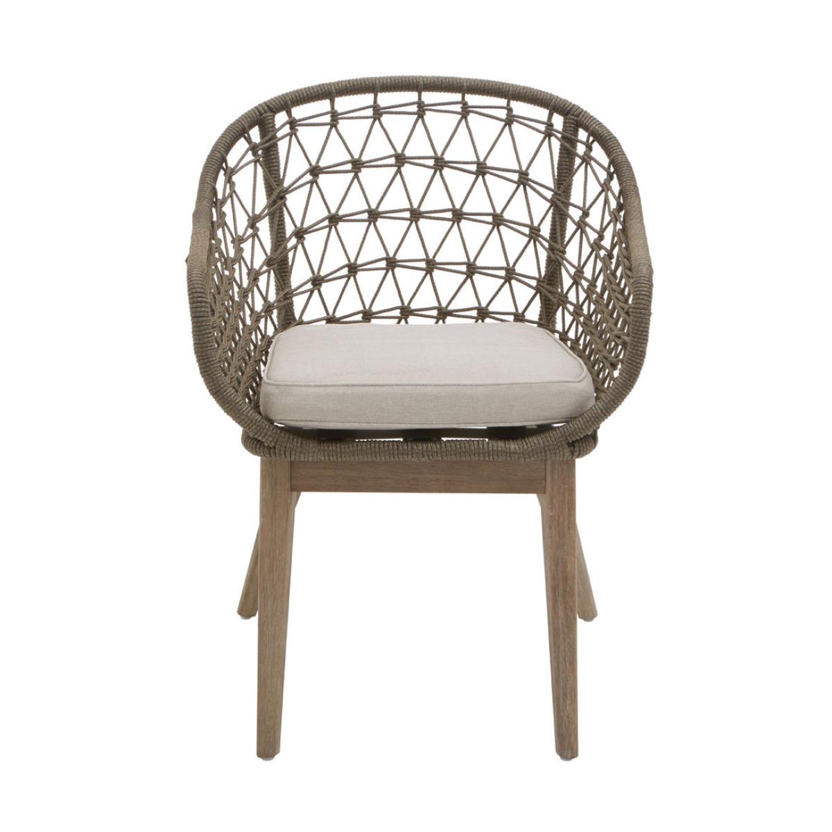 The chair is skilfully hand-woven and exhibits a rounded profile with gliding armrests and an open-frame textured back. The foam-padded grey seat provides optimum comfort, while tapered legs lend s. View More. The chair is skilfully hand-woven and exhibits a rounded profile with gliding armrests and an open-frame textured back. The foam-padded grey seat provides optimum comfort, while tapered legs lend stability and mid-century aesthetics to the living area.