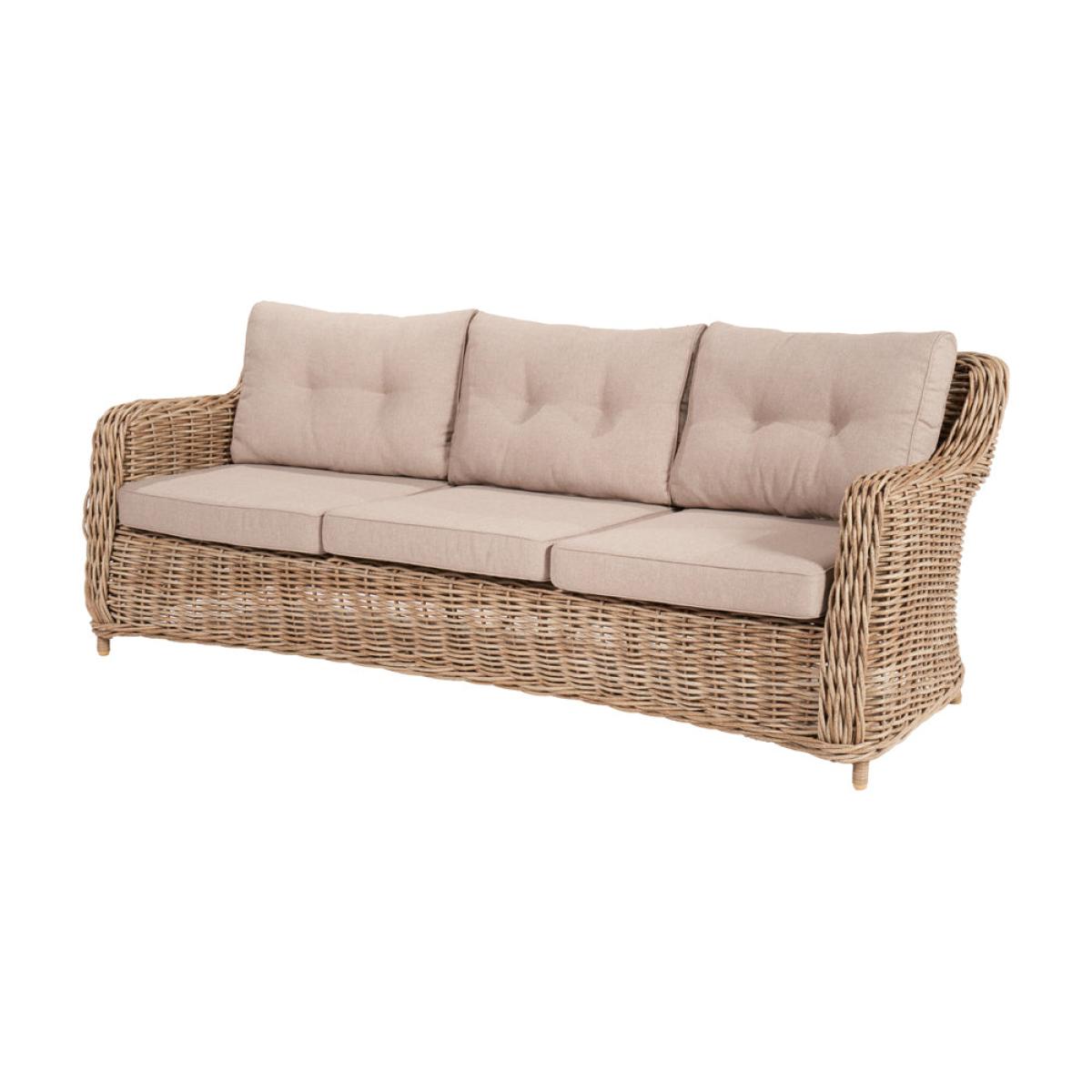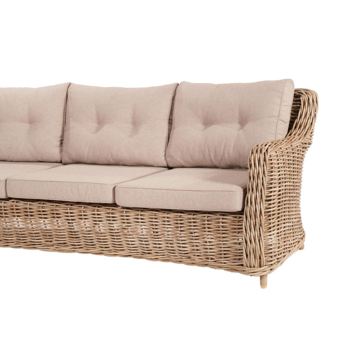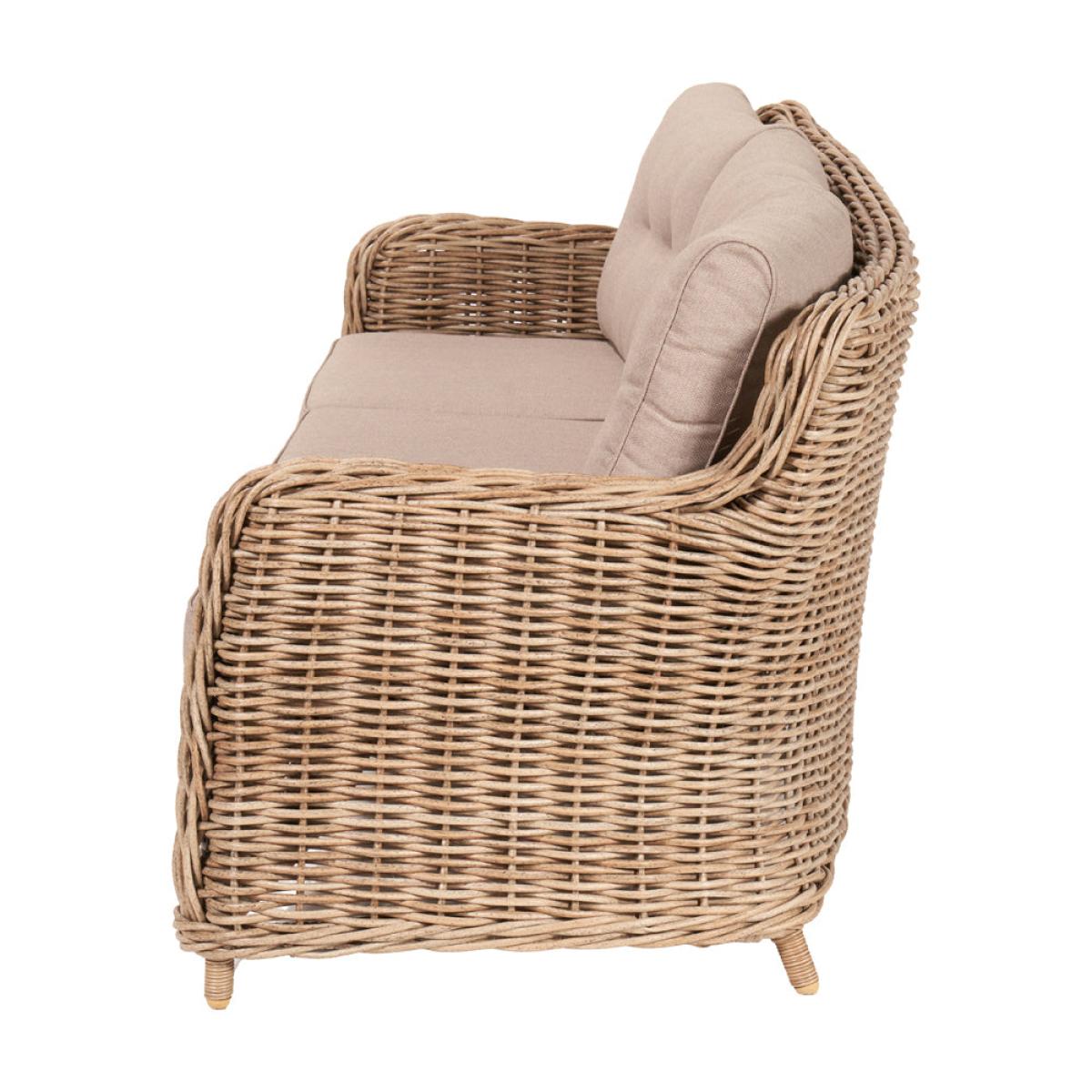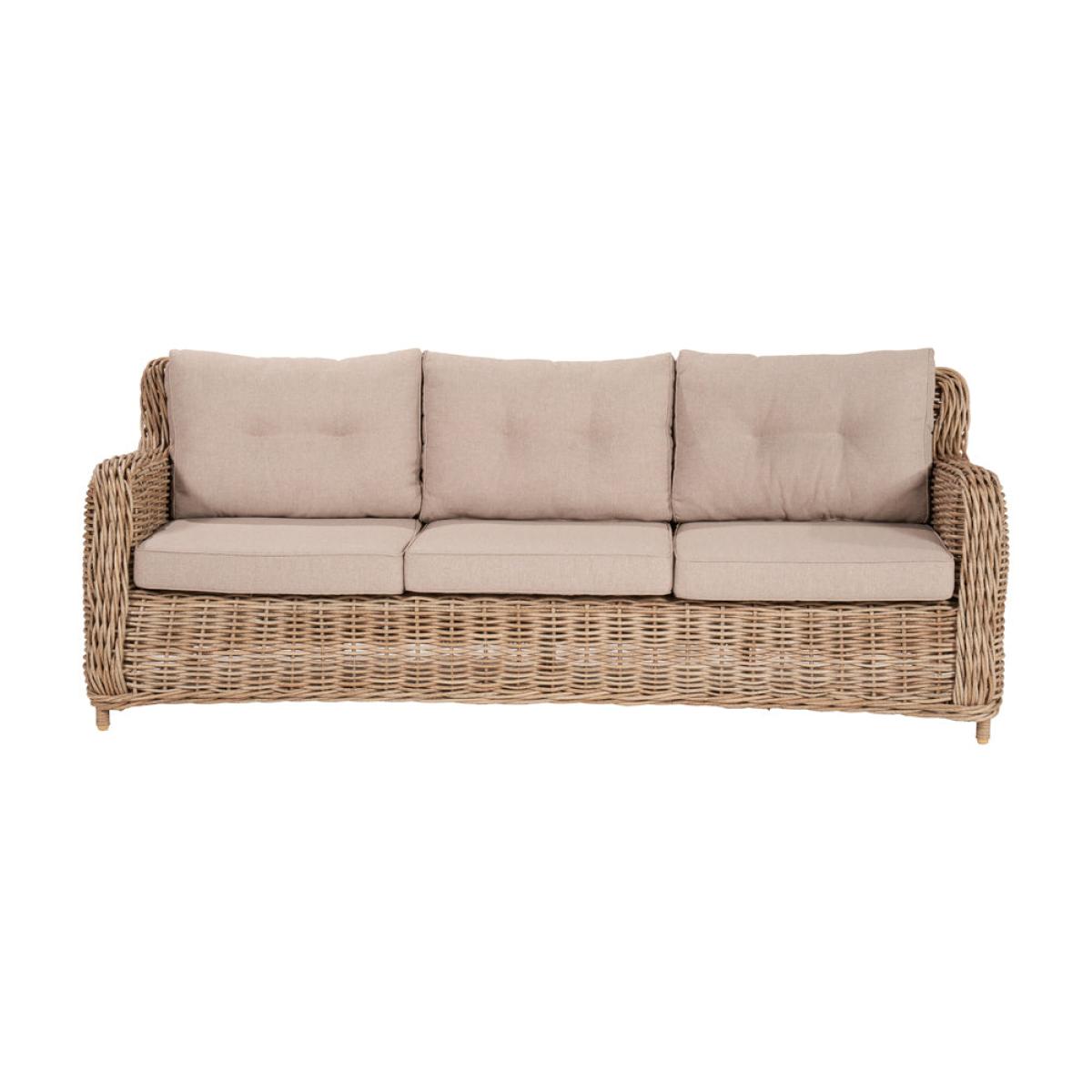 Elevate your outdoor lounging experience with Olivia"s Outdoor Baramino Natural Antique Lounge Set. Handcrafted in Vietnam, this set exudes classic modernity with its mid-height back design and stylish Natural Antique Bamboo colored finish. Comprising a 3-seater sofa, 2 armchairs, and a spacious rectangular coffee table with tempered glass, it offers both comfort and sophistication. Crafted from 10mm gauge, double-skinned, synthetic rattan weave, this set boasts luxurious styling and a durable weather-resistant finish. The Medium Weave Soft Beige season-proof cushions ensure added comfort and style. With a powder-coated aluminum frame, this outdoor set guarantees high quality, robustness, and long-lasting durability. Transform your outdoor space into a luxurious retreat with this timeless and elegant lounge set, perfect for relaxing and entertaining in style. Dimensions: 3 Seater Sofa Dimensions: H: 83 cm x W: 221 cm x D: 89 cm Armchair Dimensions: H: 83 cm x W: 80 cm x D: 89 cm Coffee Table Dimensions: H: 45 cm x W: 127 cm x D: 81 cm Overall Area Dimensions: H: N/A cm x W: 425 cm x D: 275 cm