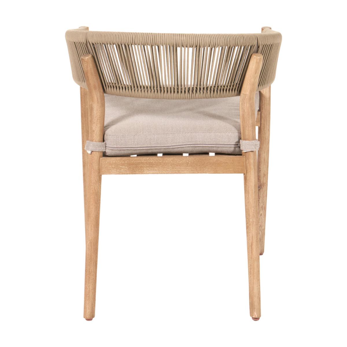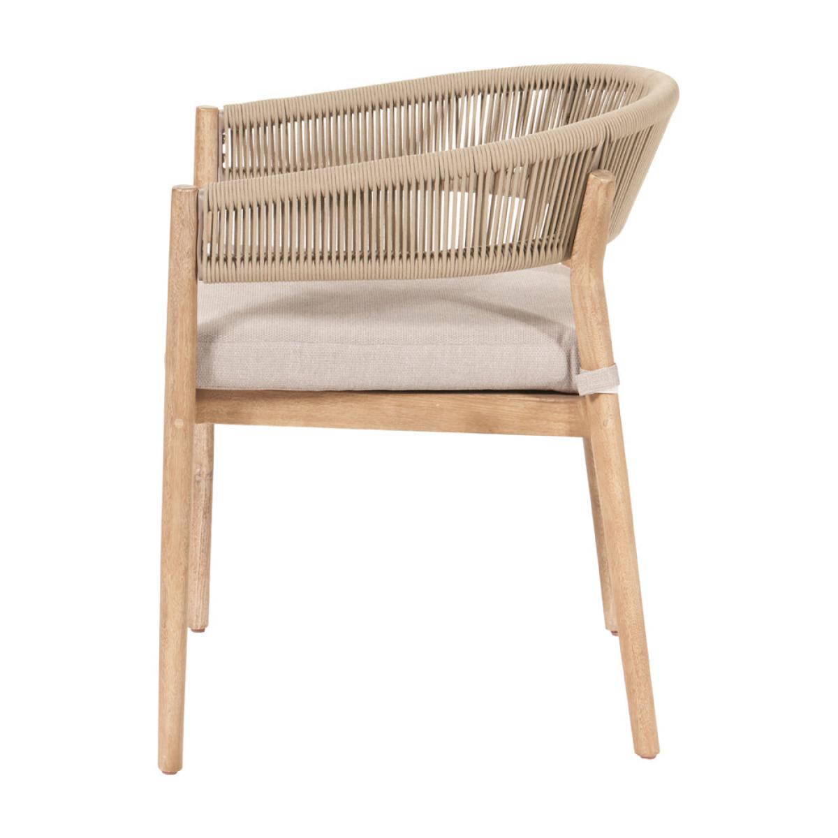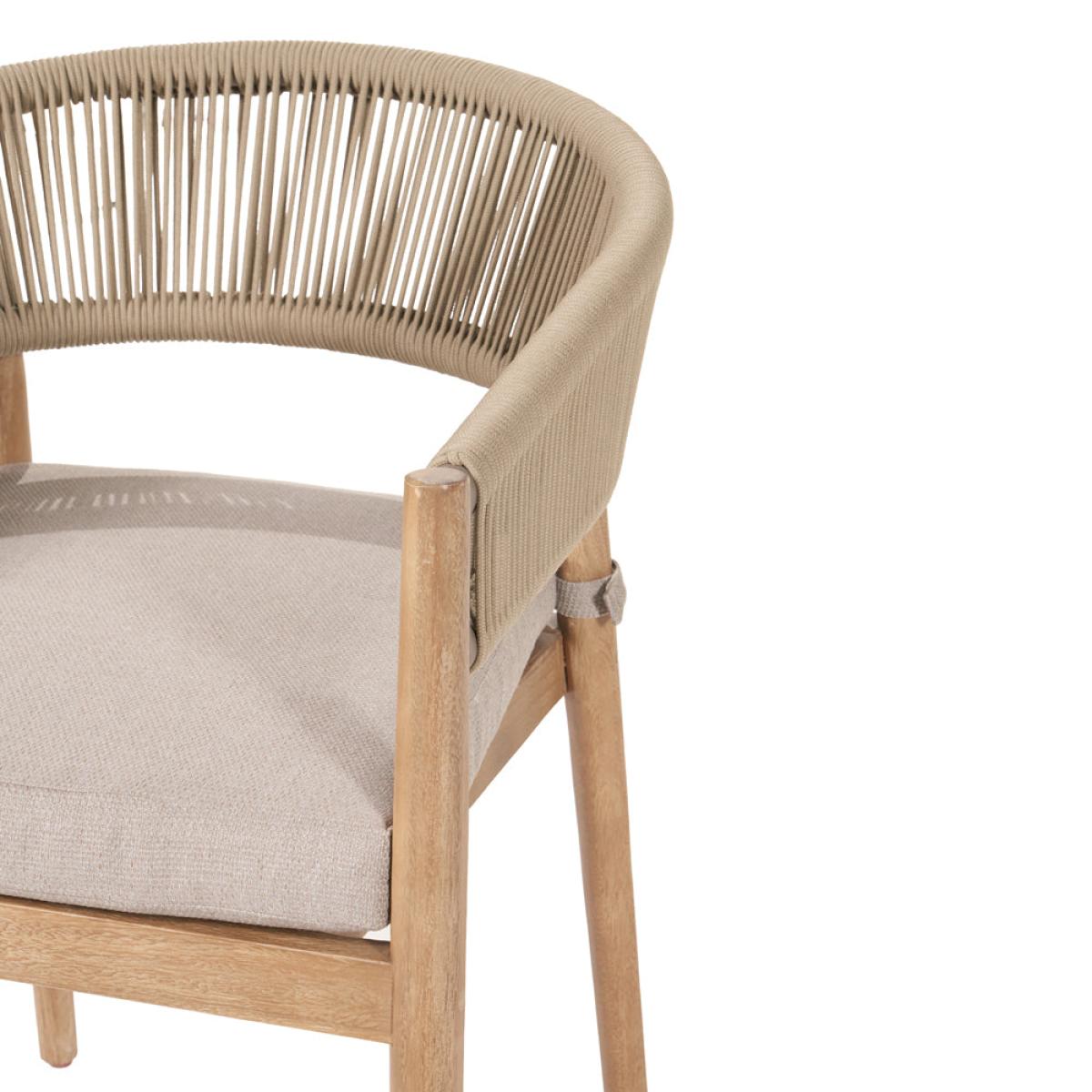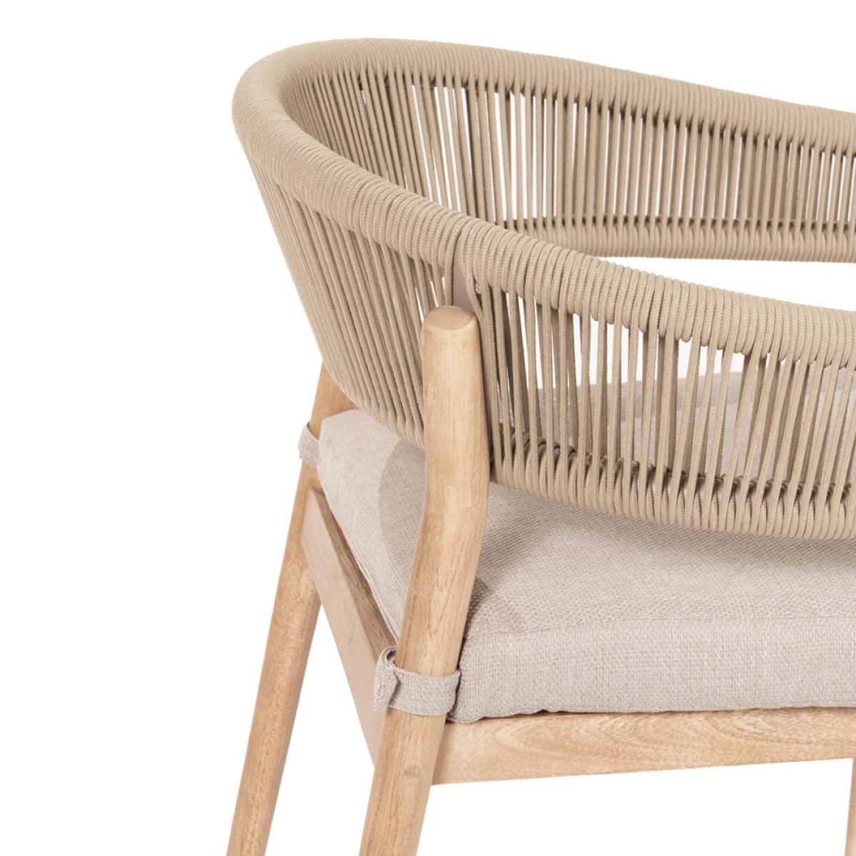 Enhance your outdoor dining experience with Olivia"s Outdoor Dala Sage Green 4 Seater Dining Set. Crafted with care by skilled artisans in Vietnam, the Denver Outdoor Dining Set offers a sleek design that will modernize your garden. The table and chairs feature an Antique Teak Effect Acacia Wood frame with twisted polyrope back in sage green, providing both style and comfort. The Medium Weave Soft Beige fabric cushions add a subtle contrast and ensure comfort during dining. This set includes 4 dining chairs and a dining table, perfect for any outdoor space. The slimline acacia wood frame is not only environmentally friendly but also durable, making it an excellent choice for outdoor furniture. Each comfortable cushion is season-proof and fire-retardant, guaranteeing the highest quality for your outdoor dining experience. Enjoy stylish and comfortable dining with the Denver Outdoor Dining Set, a perfect addition to your garden or patio. Dimensions Dining Chair Dimensions: H: 77 cm x W: 56 cm x D: 60 cm Dining Table Dimensions: H: 76 cm x W: 120 cm x D: 120 cm x Dia: 120 cm Overall Area Dimensions: H: N /A cm x W: 240 cm x D: 240 cm x Dia: 240 cm
