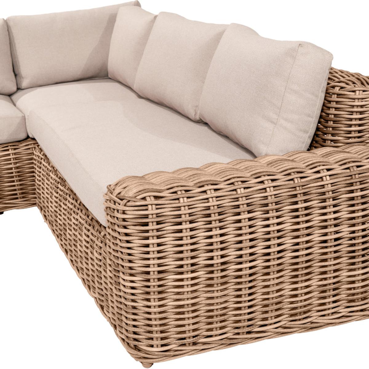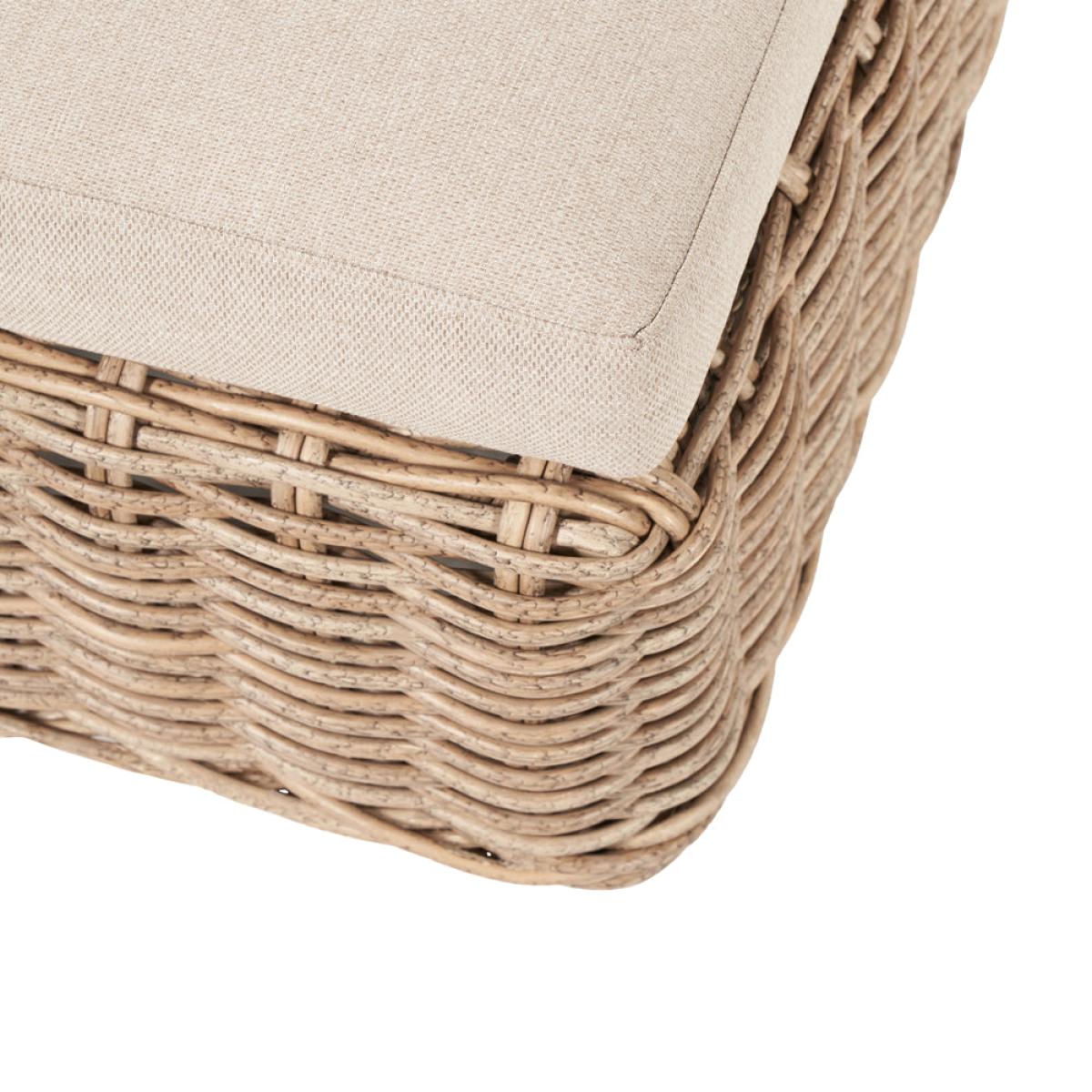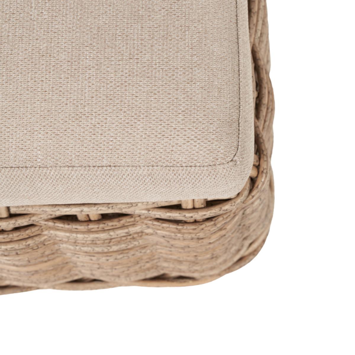 Enhance your outdoor lounging and socializing experience with Olivia"s Outdoor Garda Natural Antique Corner Set. Crafted with attention to detail, this set features an eye-catching low-back seating design using synthetic large 10mm gauge, double-skinned, faux rattan weave for both style and durability. Handcrafted in Vietnam, it comprises a 2 Seater Right Arm Sofa, a 2 Seater Left Arm Sofa, and a generous Footstool, creating a sociable corner seating arrangement. The footstool can double as a coffee table with the addition of a metal plate, providing a convenient surface for drinks and snacks. Season-proof cushions in a complementary Medium Weave Soft Beige fabric ensure comfort and style. With a powder-coated frame, this set guarantees high quality, robustness, and a durable outdoor finish. Elevate your outdoor space with the Como Corner Set, perfect for lounging, socializing, and enjoying leisurely moments with family and friends. Dimensions:L/H Sofa Dimensions: H: 80 cm x W: 247 cm x D: 94 cm R/H Sofa Dimensions: H: 80 cm x W: 163 cm x D: 94 cm Footstool Dimensions: H: 44 cm x W: 70 cm x D: 70 cm Overall Area Dimensions: H: N/A cm x W: 240 cm x D: 260 cm