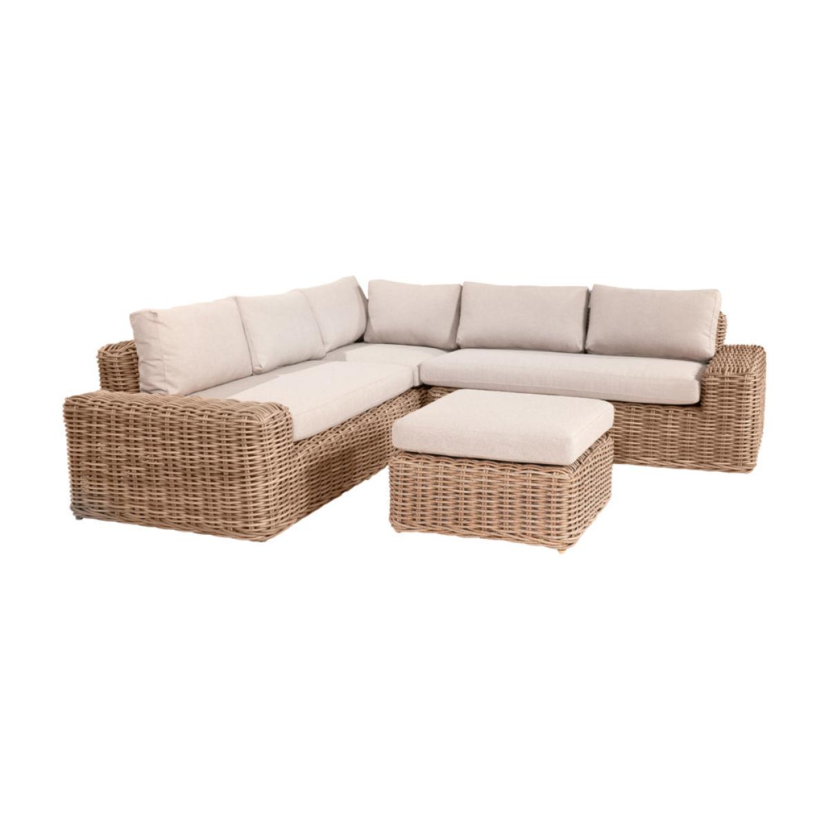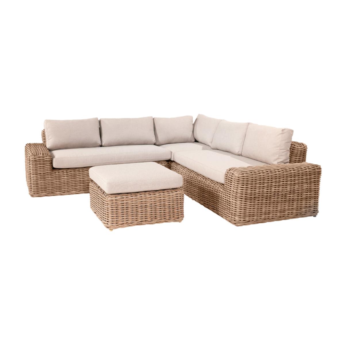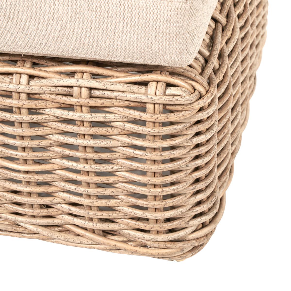 Enhance your outdoor lounging and socializing experience with Olivia"s Outdoor Garda Natural Antique Corner Set. Crafted with attention to detail, this set features an eye-catching low-back seating design using synthetic large 10mm gauge, double-skinned, faux rattan weave for both style and durability. Handcrafted in Vietnam, it comprises a 2 Seater Right Arm Sofa, a 2 Seater Left Arm Sofa, and a generous Footstool, creating a sociable corner seating arrangement. The footstool can double as a coffee table with the addition of a metal plate, providing a convenient surface for drinks and snacks. Season-proof cushions in a complementary Medium Weave Soft Beige fabric ensure comfort and style. With a powder-coated frame, this set guarantees high quality, robustness, and a durable outdoor finish. Elevate your outdoor space with the Como Corner Set, perfect for lounging, socializing, and enjoying leisurely moments with family and friends. Dimensions:L/H Sofa Dimensions: H: 80 cm x W: 247 cm x D: 94 cm R/H Sofa Dimensions: H: 80 cm x W: 163 cm x D: 94 cm Footstool Dimensions: H: 44 cm x W: 70 cm x D: 70 cm Overall Area Dimensions: H: N/A cm x W: 240 cm x D: 260 cm