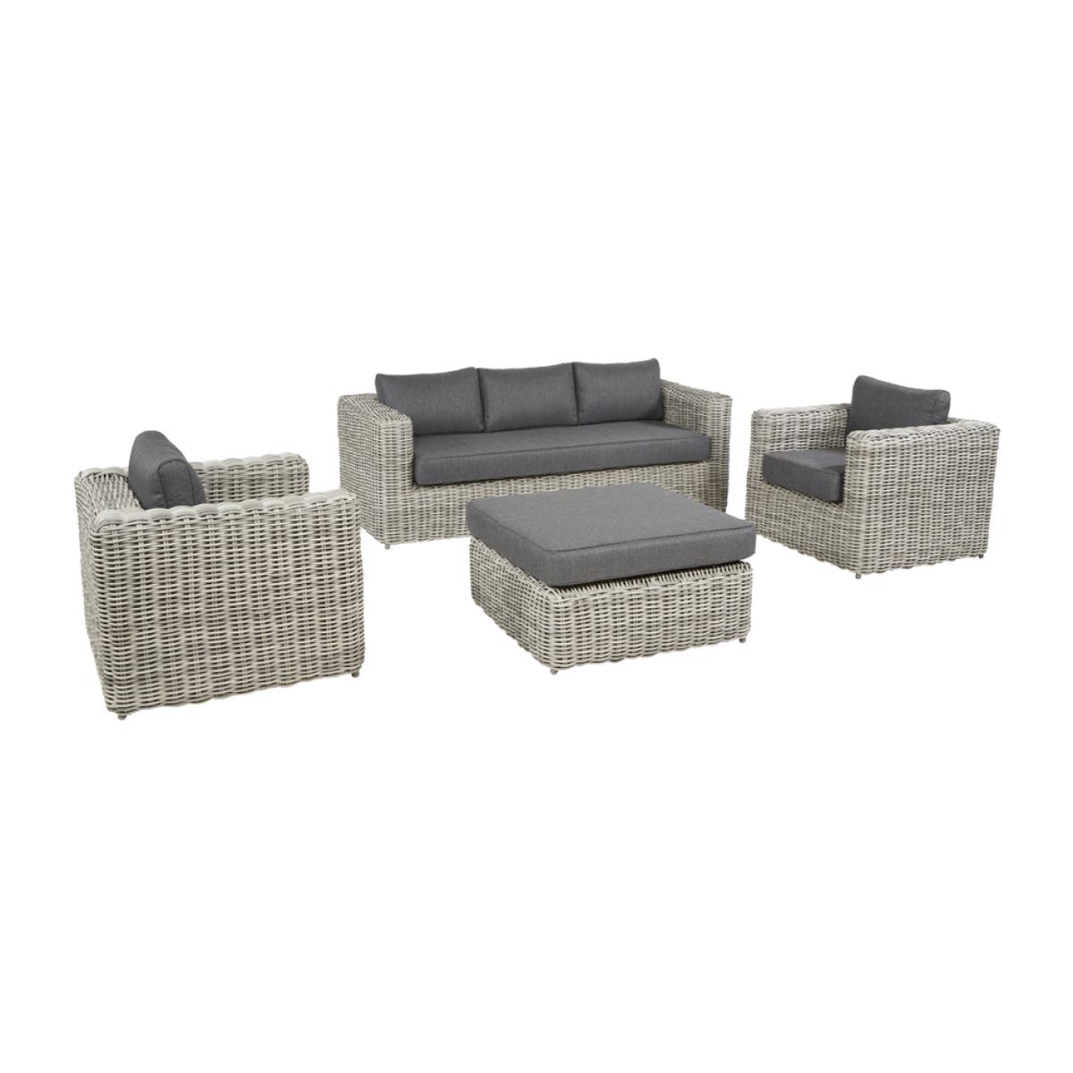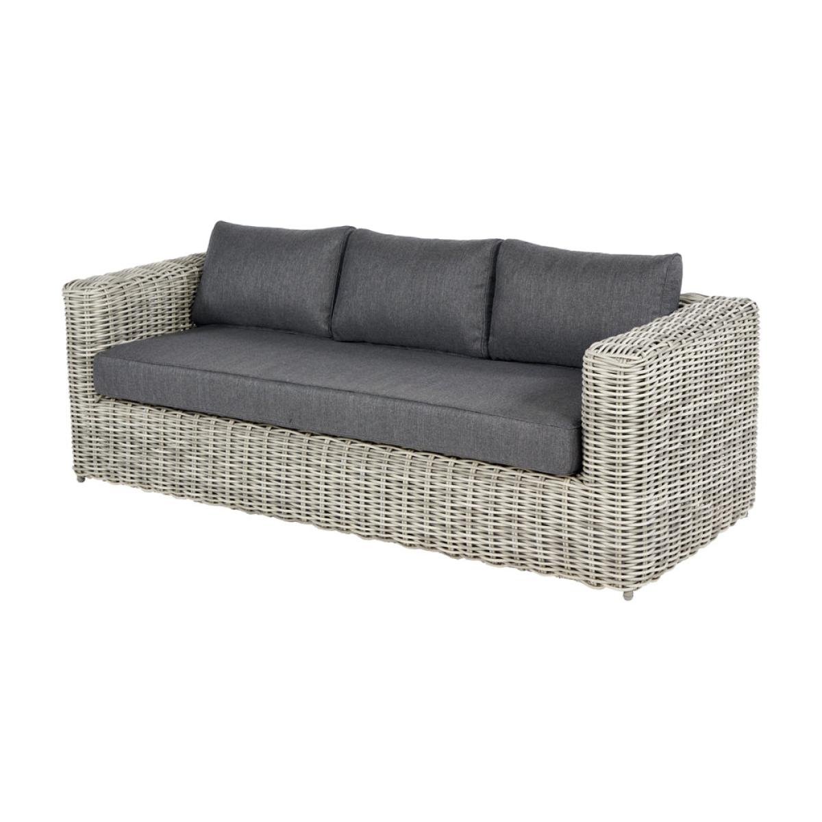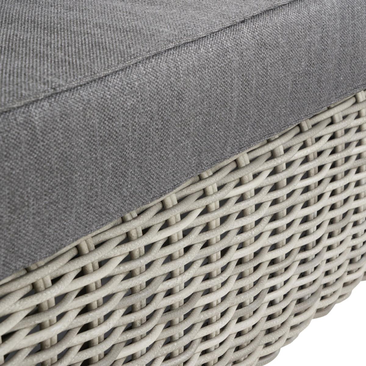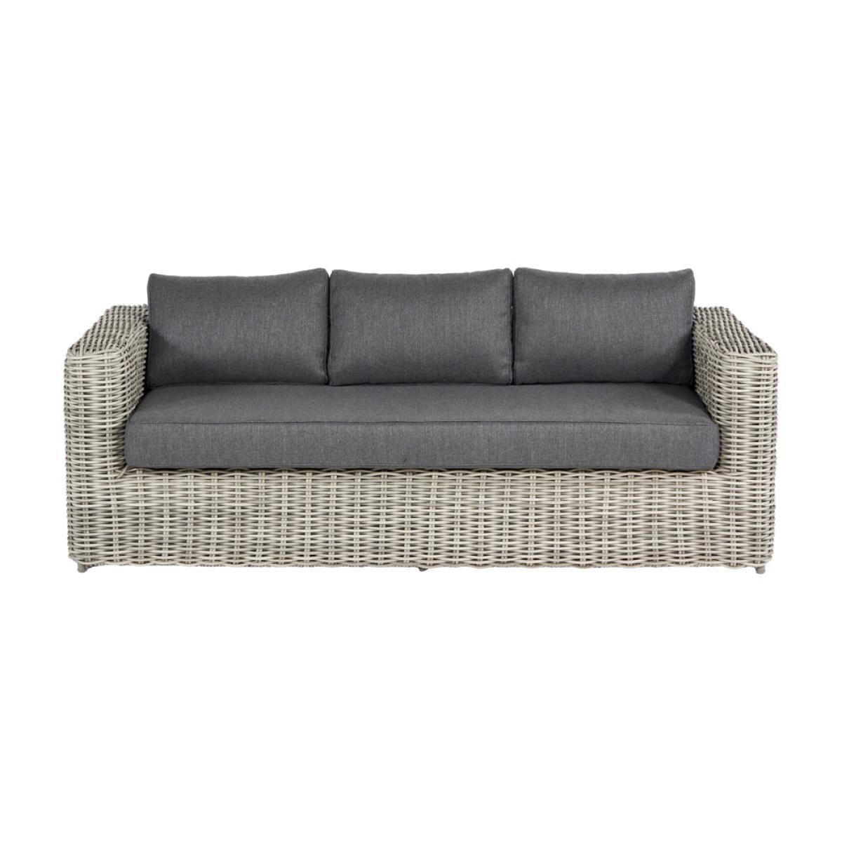 Elevate your outdoor lounging experience with Olivia"s Outdoor Roma Lounge Set. This stylish set features a modern double-skinned weave and a low back seating design for the ultimate lounging experience. Comprising a 3 seater sofa, 2 armchairs, and a central versatile footstool, this set offers a contemporary and comfortable seating arrangement for your garden. Crafted from synthetic double-skinned rattan weave for a modern look and durable weather-resistant finish, this set is complemented by a powder-coated aluminum frame for high-quality and robustness. The season-proof, fire-retardant cushions in a stylish grey provide comfort and style, while being water repellent for added durability. Create a chic and inviting outdoor space with this luxurious lounge set, perfect for relaxing and entertaining in style. 3 Seater Sofa Dimensions: H: 89 cm x W: 223 cm x D: 95 cm