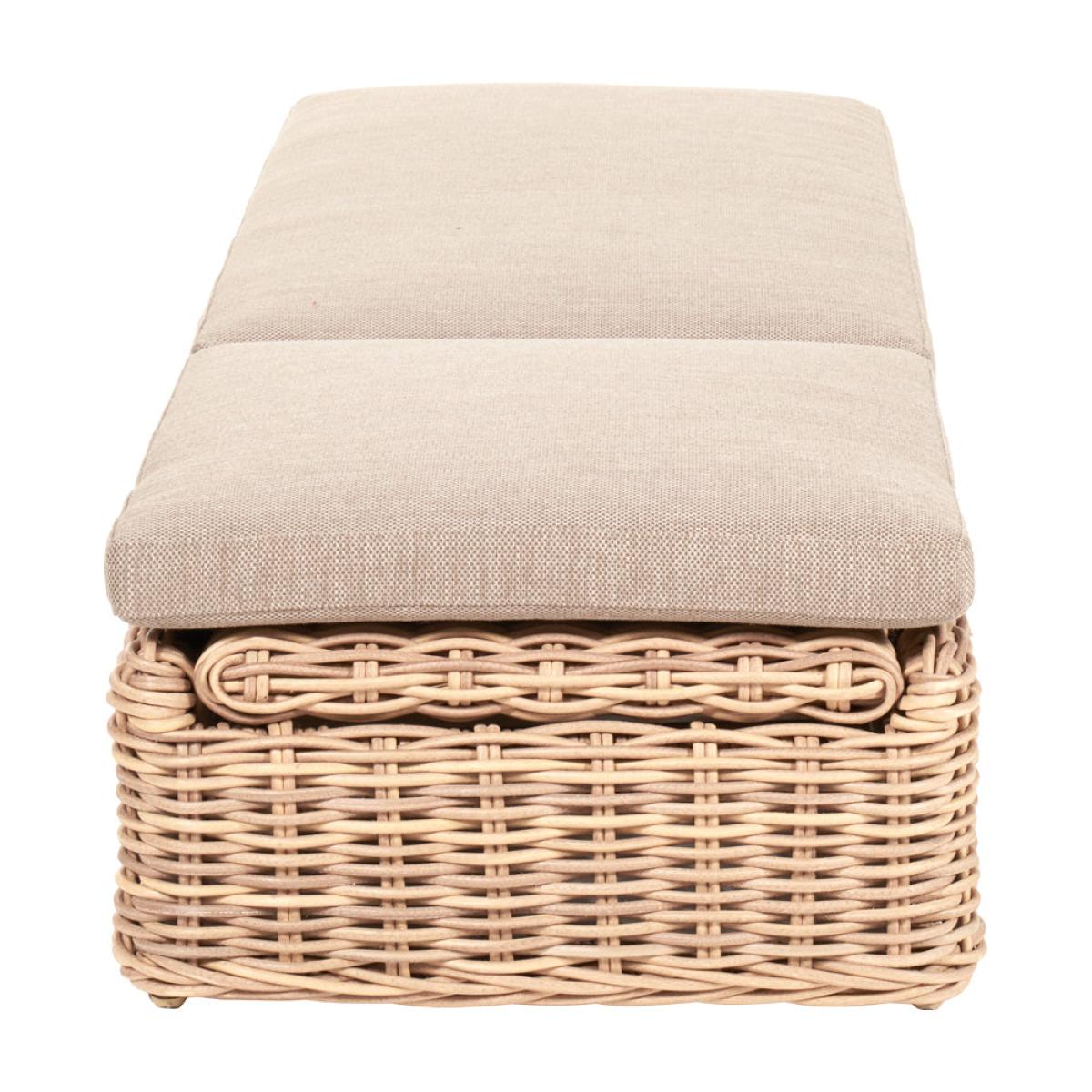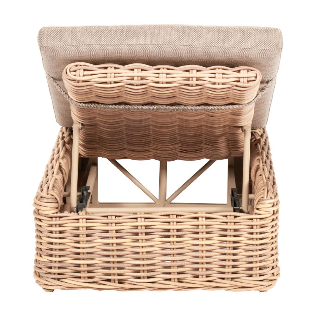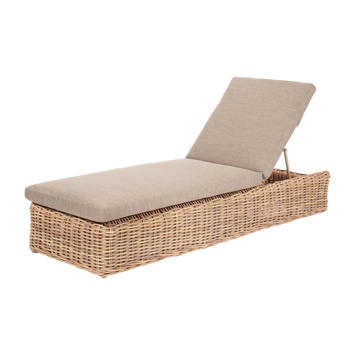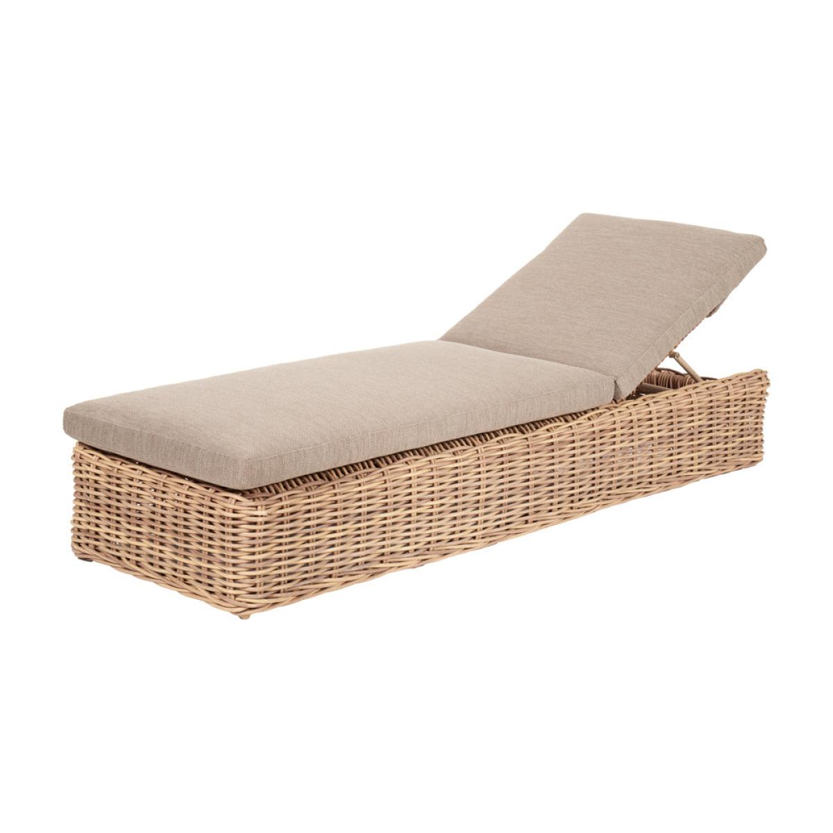 Indulge in luxurious outdoor lounging with Olivia"s Outdoor Sicily Natural Antique Sunlounger. Handcrafted in Vietnam, this sun lounger offers an eye-catching double-skinned weave and laid-back seating, perfect for soaking up the sun or enjoying long summer evenings. The sun lounger is made from 10mm gauge, double-skinned, synthetic rattan weave, ensuring luxurious styling and a durable weather-resistant finish. Complemented by Medium Weave Soft Beige season-proof cushions, this sun lounger provides both comfort and style. The powder-coated aluminum frame guarantees high quality and robustness, while the movable back section offers flexibility for personalized lounging positions. Enhance your outdoor space with this statement piece, ideal for gardens, patios, or terraces, and perfectly complementing other furniture sets like Barakaldo and Como. Experience ultimate relaxation and style with the Garda Sunlounger, a must-have addition to your outdoor oasis. Sunlounger Dimensions: H: Max: 91 Min: 42 cm x W: 74 cm x D: 214 cm