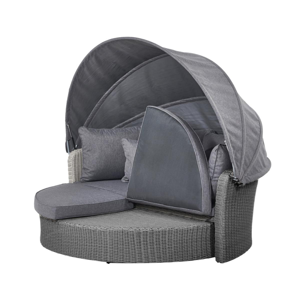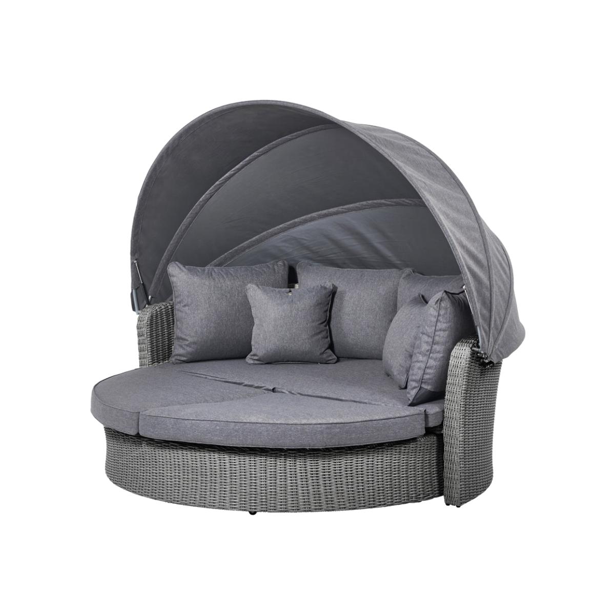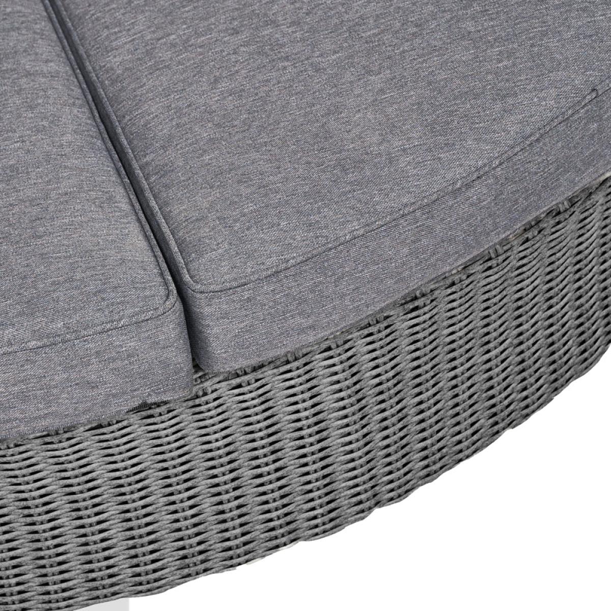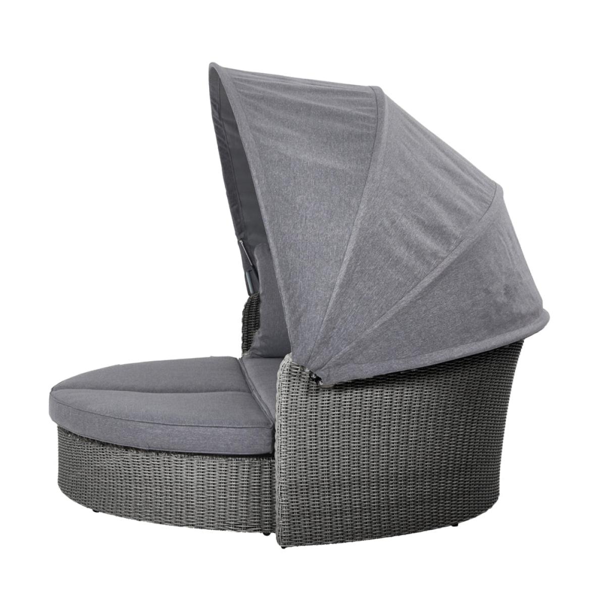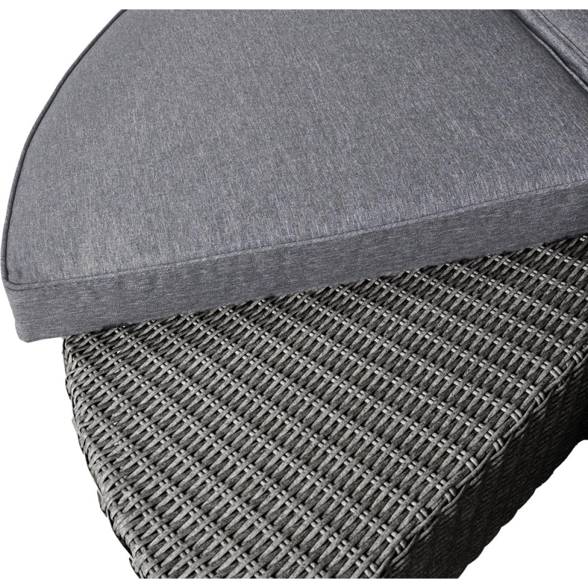 Experience luxury in your outdoor space with Olivia"s Outdoor Slate Grey Bermuda Day Bed. Perfect for enjoying peaceful days reading or snuggling into blankets on long summer evenings, this day bed features a space-saving design with a handy swiveling mechanism. Crafted from a synthetic half-round rattan weave and featuring a powder-coated aluminum frame, this day bed ensures both a modern look and durable, weather-resistant finish. The season-proof, fire-retardant cushions are water repellent, with a ventilation section in each cushion to disperse any moisture. Indulge in ultimate comfort and relaxation with this luxurious day bed, a perfect addition to your garden, patio, or terrace. Day Bed Dimensions: H: Max: 160 Min: 82 cm x W: 200 cm x D: 180 cm