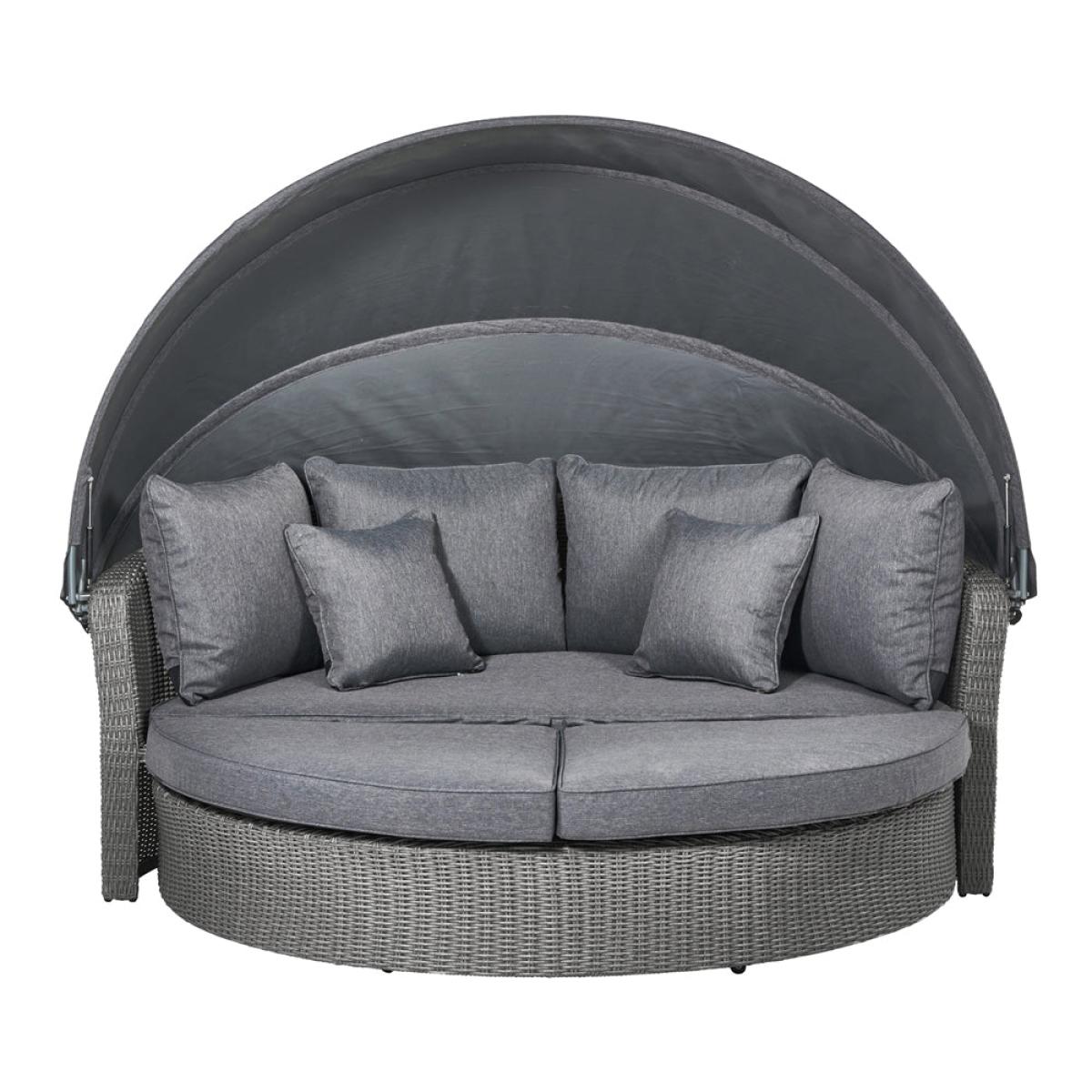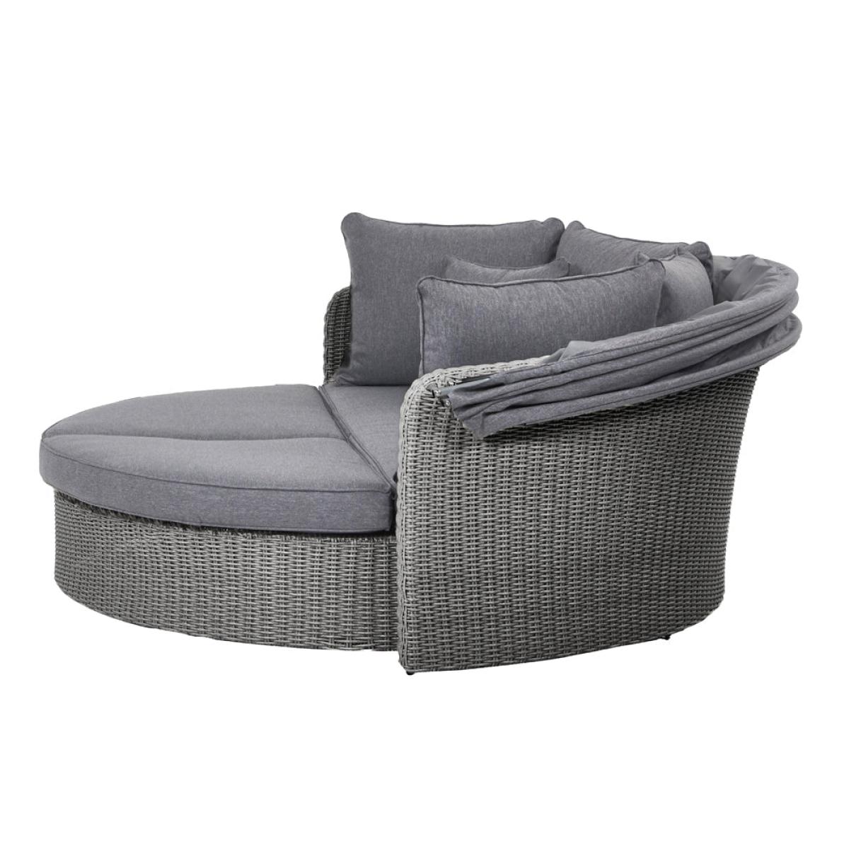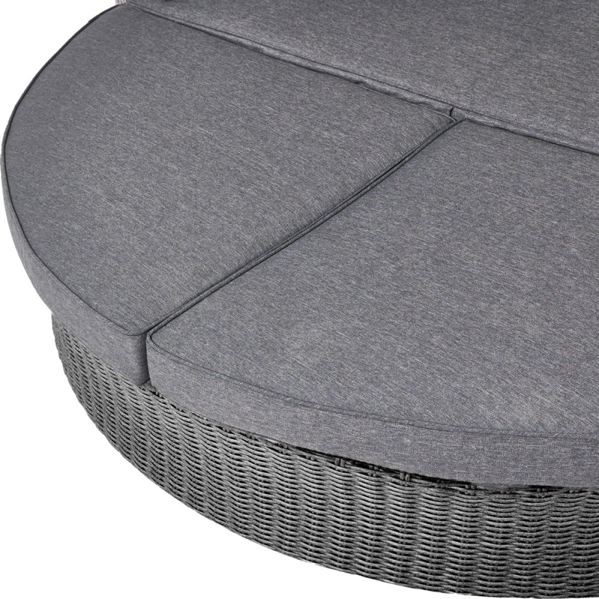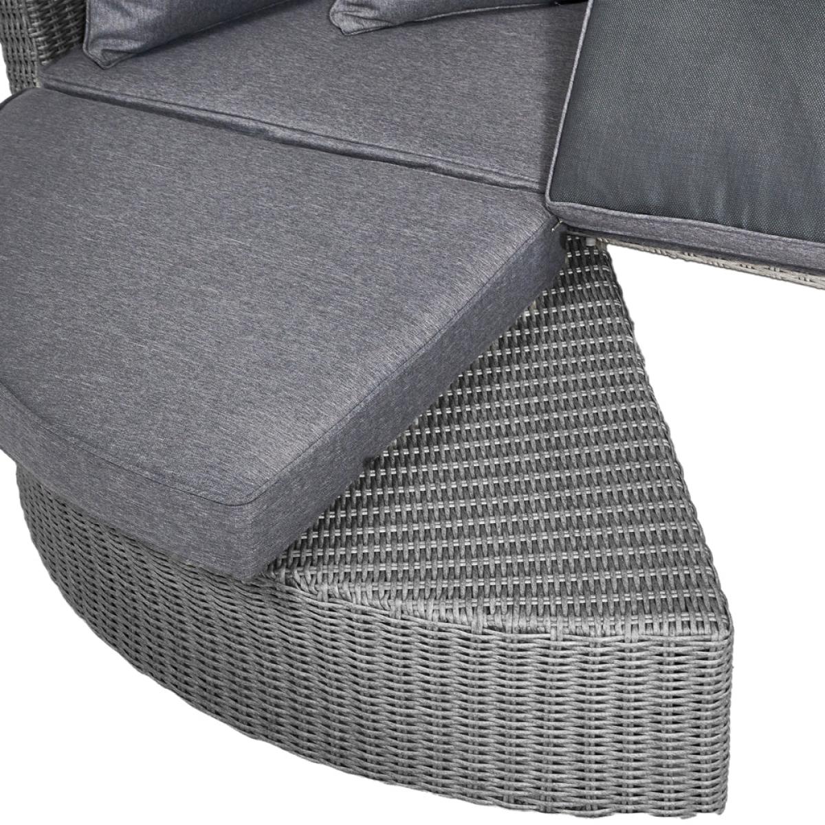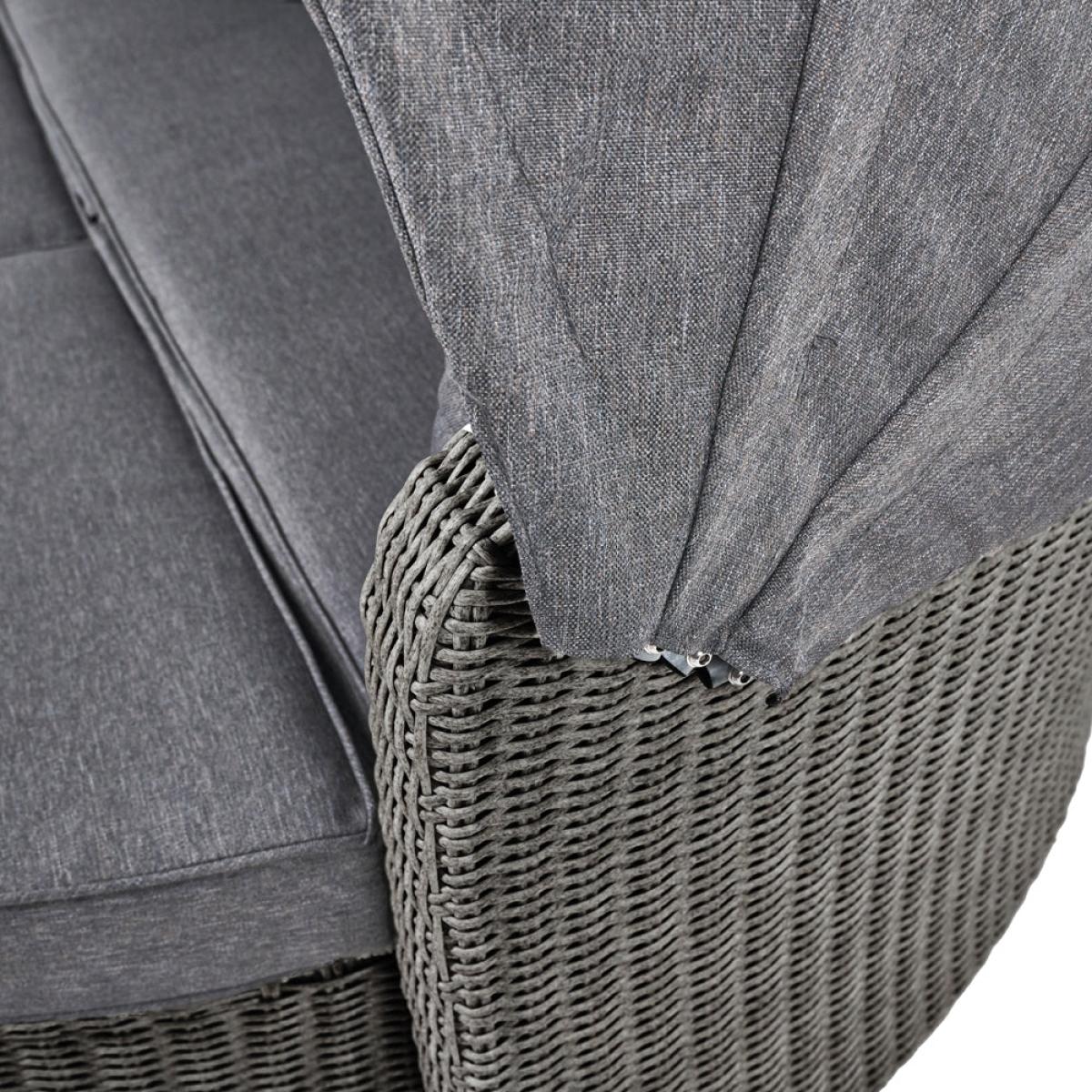 Experience luxury in your outdoor space with Olivia"s Outdoor Slate Grey Bermuda Day Bed. Perfect for enjoying peaceful days reading or snuggling into blankets on long summer evenings, this day bed features a space-saving design with a handy swiveling mechanism. Crafted from a synthetic half-round rattan weave and featuring a powder-coated aluminum frame, this day bed ensures both a modern look and durable, weather-resistant finish. The season-proof, fire-retardant cushions are water repellent, with a ventilation section in each cushion to disperse any moisture. Indulge in ultimate comfort and relaxation with this luxurious day bed, a perfect addition to your garden, patio, or terrace. Day Bed Dimensions: H: Max: 160 Min: 82 cm x W: 200 cm x D: 180 cm