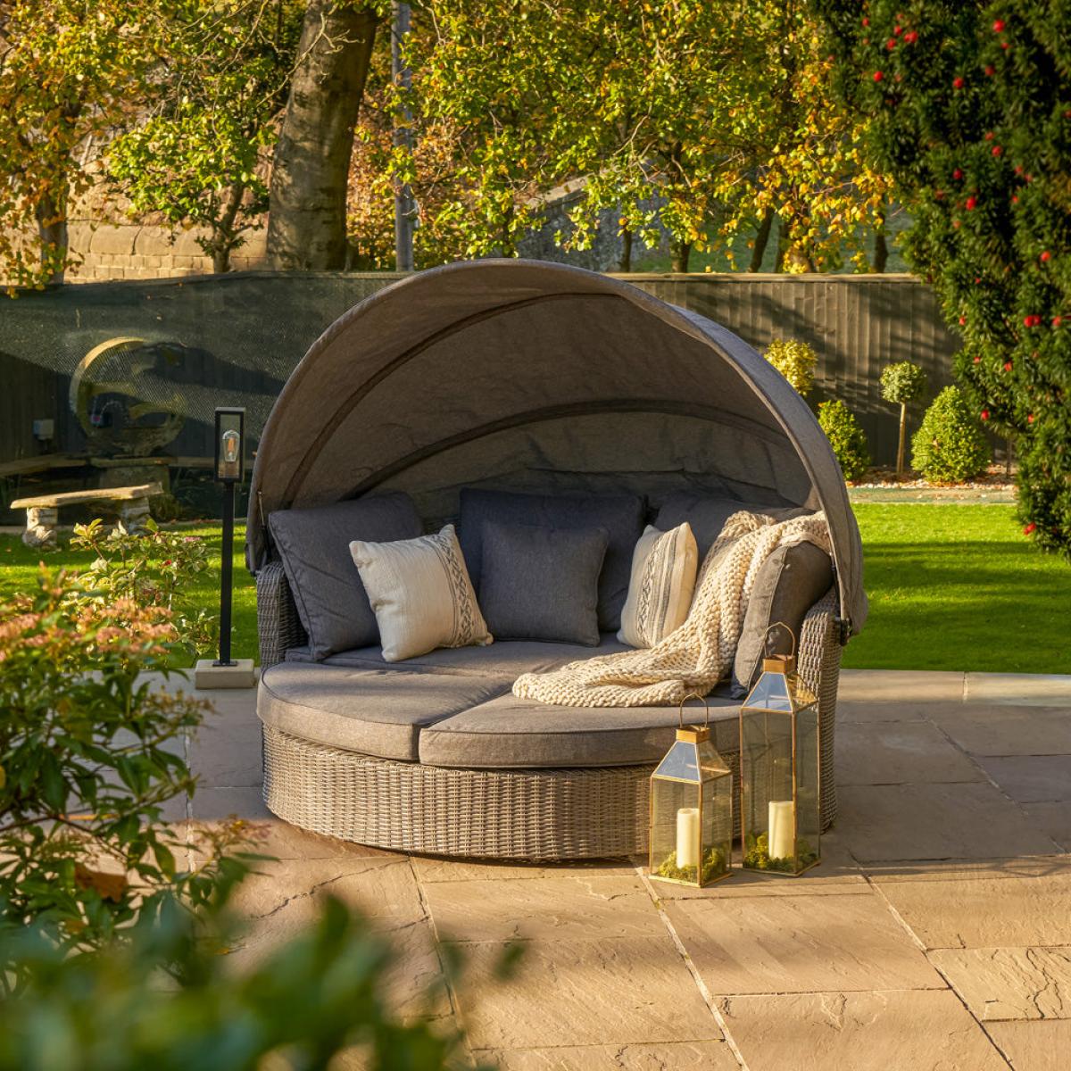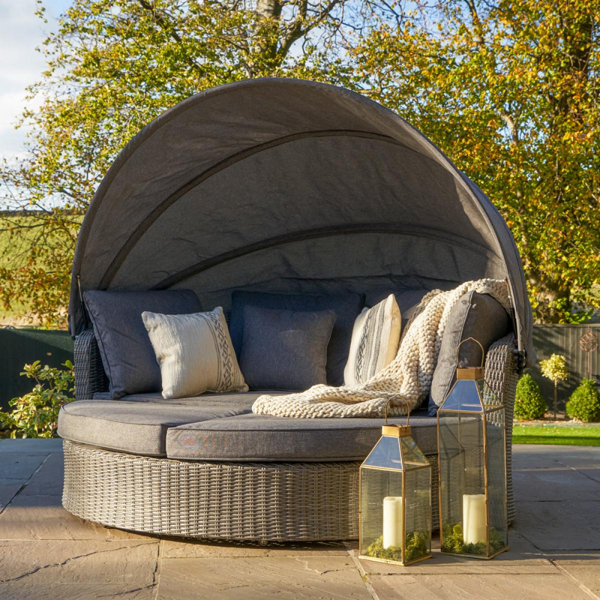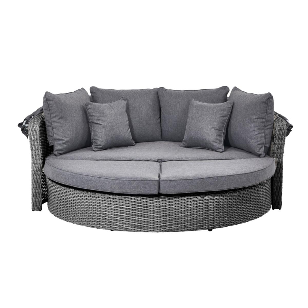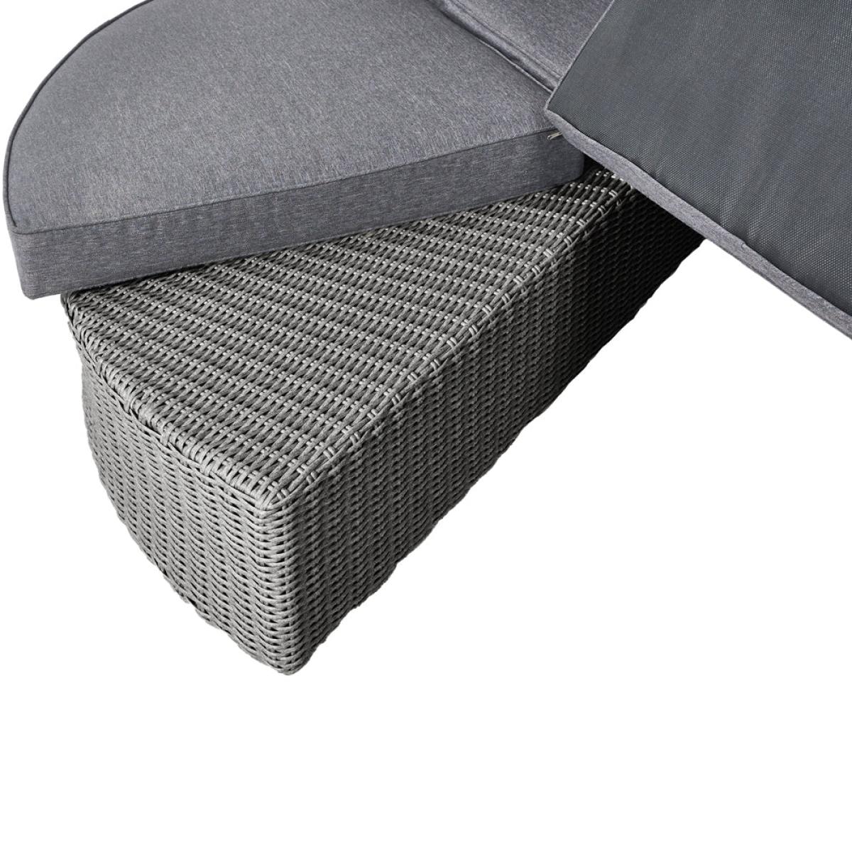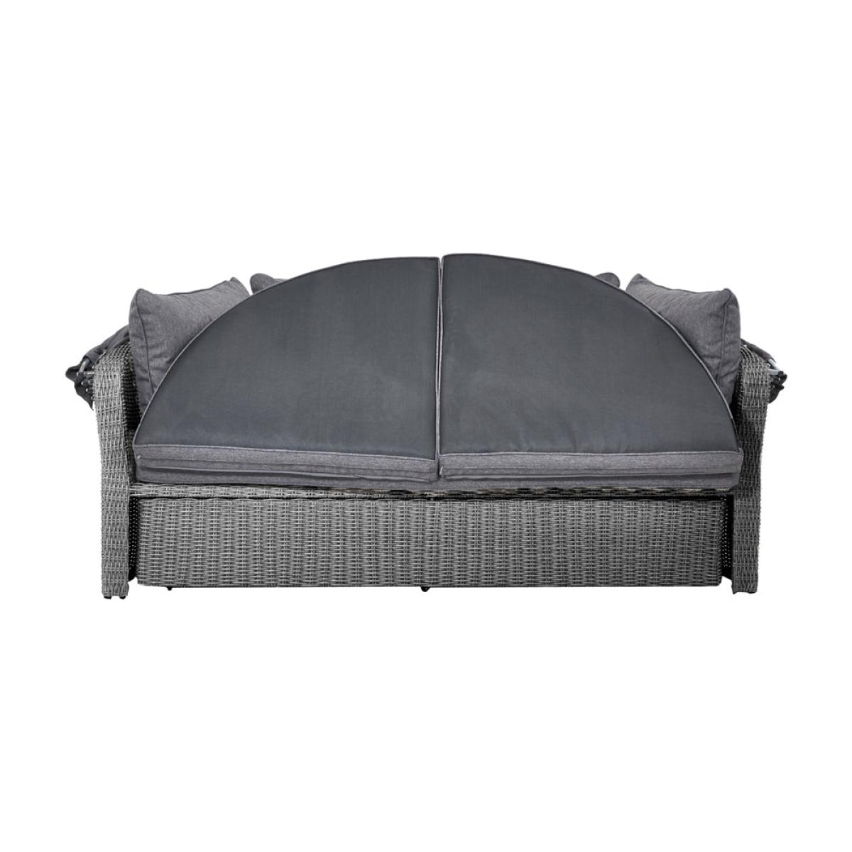 Experience luxury in your outdoor space with Olivia"s Outdoor Slate Grey Bermuda Day Bed. Perfect for enjoying peaceful days reading or snuggling into blankets on long summer evenings, this day bed features a space-saving design with a handy swiveling mechanism. Crafted from a synthetic half-round rattan weave and featuring a powder-coated aluminum frame, this day bed ensures both a modern look and durable, weather-resistant finish. The season-proof, fire-retardant cushions are water repellent, with a ventilation section in each cushion to disperse any moisture. Indulge in ultimate comfort and relaxation with this luxurious day bed, a perfect addition to your garden, patio, or terrace. Day Bed Dimensions: H: Max: 160 Min: 82 cm x W: 200 cm x D: 180 cm