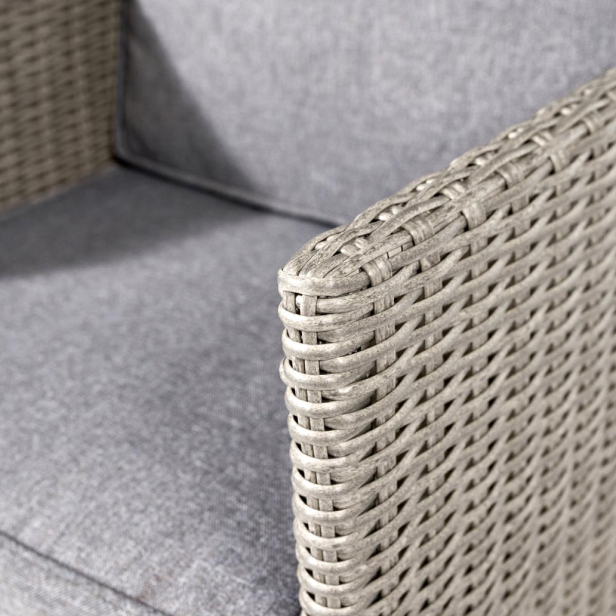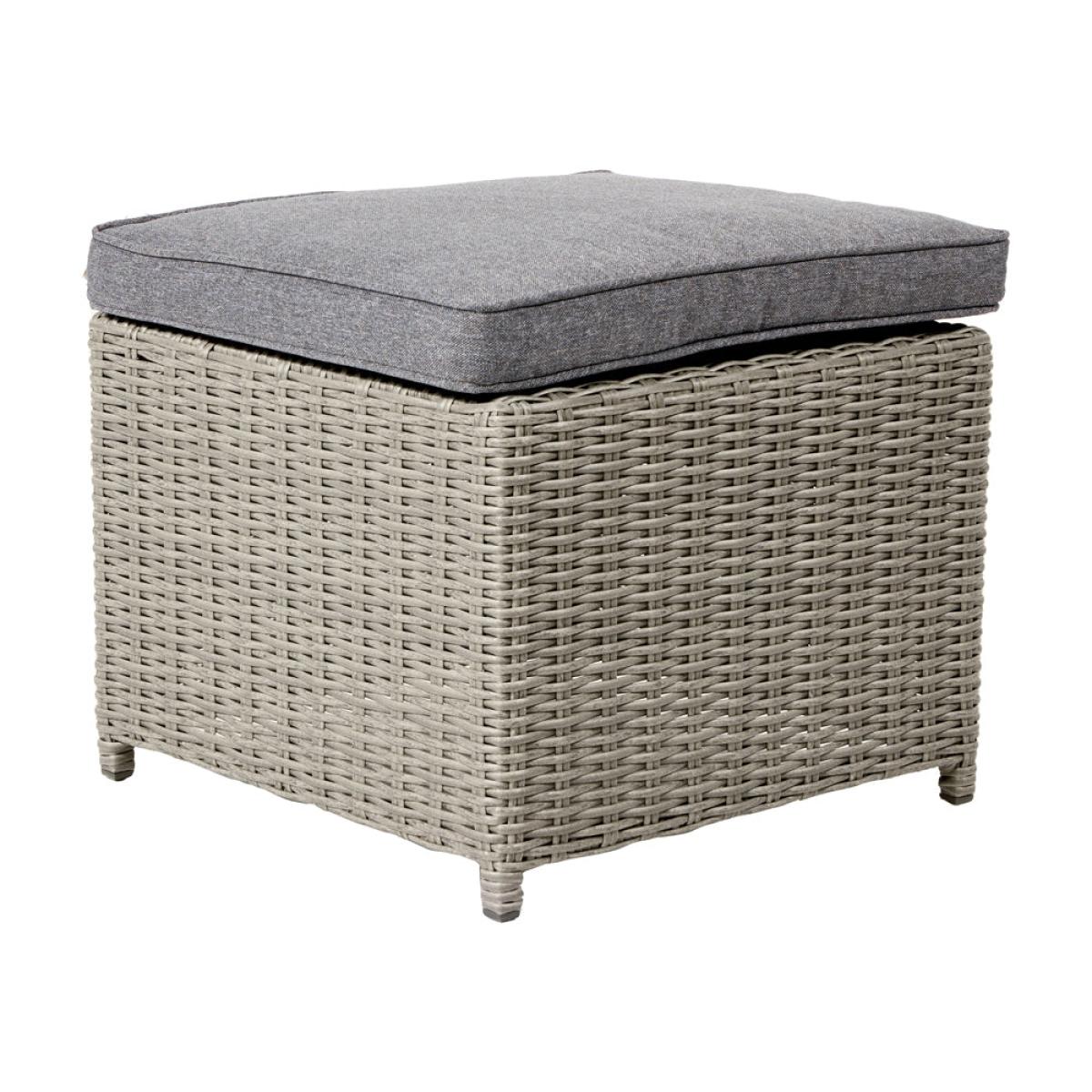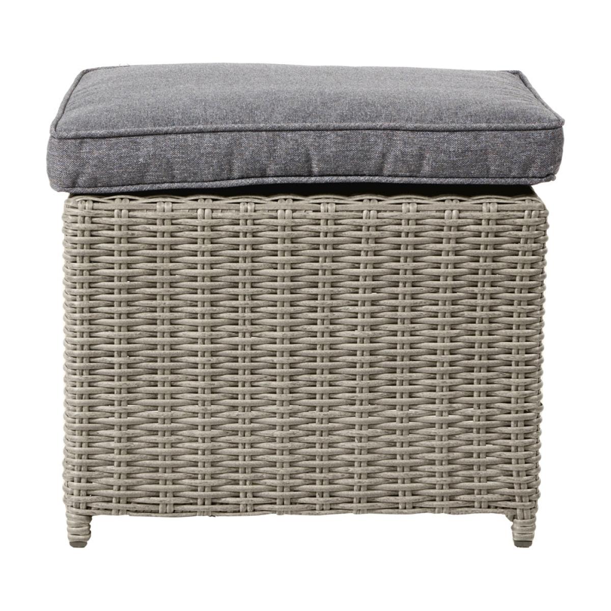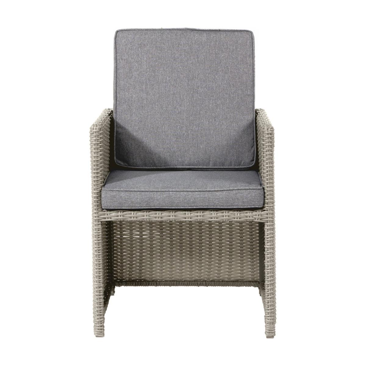 Create a versatile outdoor dining space with Olivia"s Outdoor Stone Grey Coasta Cube Set featuring a Ceramic Top. This set includes 1 dining table, 4 arm chairs, and 4 footstools, offering seating for 4-8 guests and easily transforming into a compact cube when not in use. Crafted from synthetic half round rattan weave for a modern look and durable weather-resistant finish, this set is complemented by a powder-coated aluminum frame for high-quality and robustness. The premium ceramic top of the table adds a touch of sophistication, while the season-proof, fire-retardant cushions provide comfort and style, while being water repellent for added durability. Enjoy relaxed gatherings and sunny garden days with this elegant and practical dining set, perfect for entertaining friends and family in style. Chair Dimensions: H: 89 cm x W: 59 cm x D: 59 cm