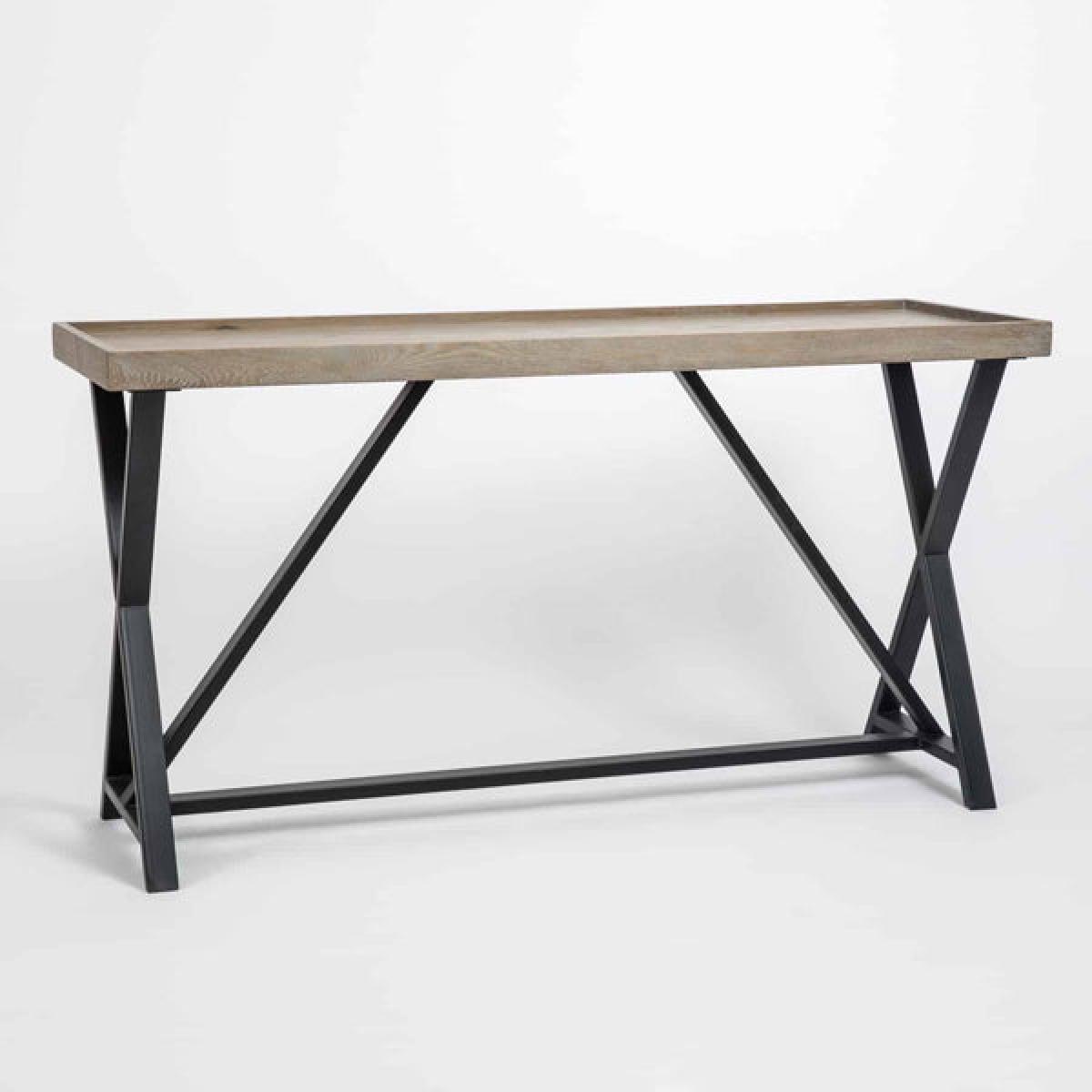 Your modern home will look wonderful with the addition of this console table adorned with ornaments, vases or flowers. Add a touch of style to your hallway, kitchen, dining room or any other room i. View More. Your modern home will look wonderful with the addition of this console table adorned with ornaments, vases or flowers. Add a touch of style to your hallway, kitchen, dining room or any other room in your house with the 85cm high and 160cm wide Olivia's Pershore Aged Oak Console Table. Standing at a 50cm depth from the wall, this aged oak and oak veneer console table with its black metal, crossing legs and visible grain is a simple but elegant addition that will look great with any room's décor. Add your own design to this piece when you decorate it with your own items.