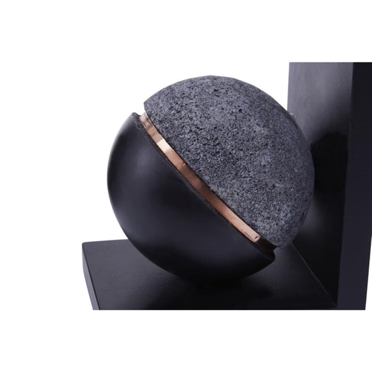 These very contemporary Petra lava-stone bookends will bring a striking sense of drama to your mantelpiece, console table or floating shelves. Each eye-catching grey and black orb is set into a sturdy L-shaped base. The contrast between their smooth and textured hemispheres is bound together by a gorgeous copper accent circling their equators and boldly glimmering with reflected light. Petra bookends are a powerful and modern design statement. Use them to display a selection of your favourite books on a prominent shelf or an equally sophisticated piece of furniture. The Petra will create an attention-grabbing focal point in an open-plan living space or chic entryway. *Moot Trading Ltd is not a lender and acts only as an introducer. The credit product is provided by Klarna Bank AB (publ). Credit is only available to permanent UK residents aged 18 and over, subject to status. Terms and conditions apply. Please note that the following products are not regulated by the FCA: Pay in 30 days and Pay in 3 instalments. Read More.