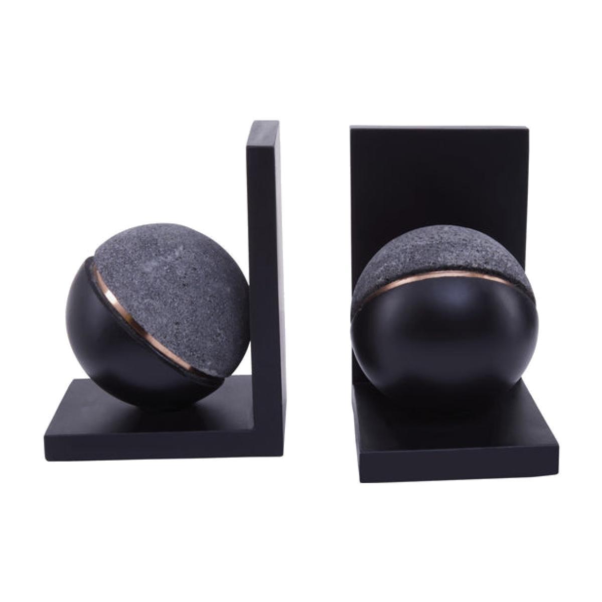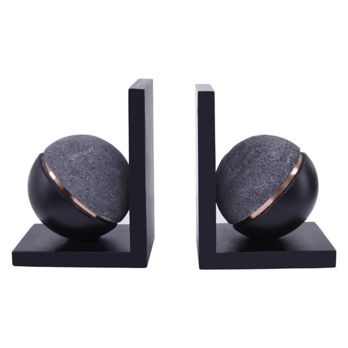 These very contemporary Petra lava-stone bookends will bring a striking sense of drama to your mantelpiece, console table or floating shelves. Each eye-catching grey and black orb is set into a sturdy L-shaped base. The contrast between their smooth and textured hemispheres is bound together by a gorgeous copper accent circling their equators and boldly glimmering with reflected light. Petra bookends are a powerful and modern design statement. Use them to display a selection of your favourite books on a prominent shelf or an equally sophisticated piece of furniture. The Petra will create an attention-grabbing focal point in an open-plan living space or chic entryway. *Moot Trading Ltd is not a lender and acts only as an introducer. The credit product is provided by Klarna Bank AB (publ). Credit is only available to permanent UK residents aged 18 and over, subject to status. Terms and conditions apply. Please note that the following products are not regulated by the FCA: Pay in 30 days and Pay in 3 instalments. Read More.