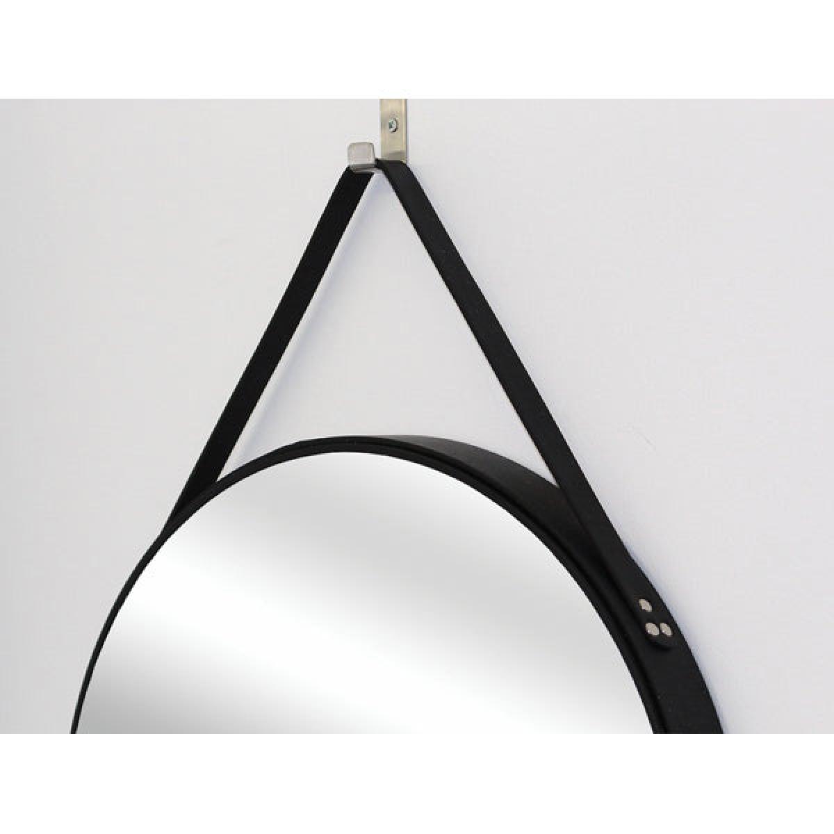 The Piers mirror is a minimalist piece with a twist, designed to make a strong visual statement in any living space. The on-trend hanging mirror offers a lustrous take on vintage décor in modern i. View More. The Piers mirror is a minimalist piece with a twist, designed to make a strong visual statement in any living space. The on-trend hanging mirror offers a lustrous take on vintage décor in modern interior. The piers features a round metal frame, suspended by a leather strap, designed to add just the right amount of visual appeal to any room. The mirror is available in black and brown leather.