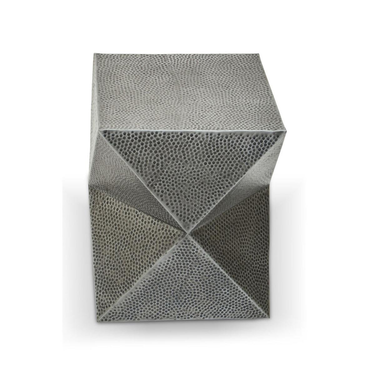 I love the modern geometric shape of this stool, making it a standout piece that can work well in both contemporary and industrial interiors. Its neutral grey finish makes it versatile-you can complement it with colourful cushions or keep it pared-back for a minimalist look. It’s practical as extra seating or as a stand for decorative objects. For styling tips, try pairing it with a textured rug or placing it near a statement armchair to create a functional nook. It also works well in small spaces, offering both form and function without overwhelming the room.