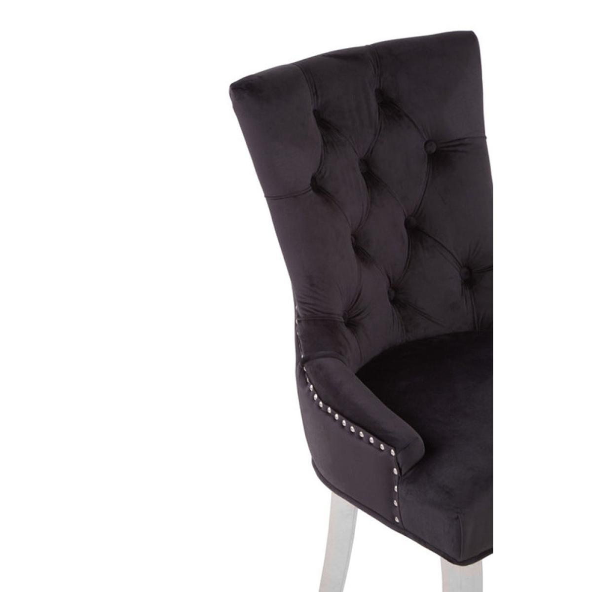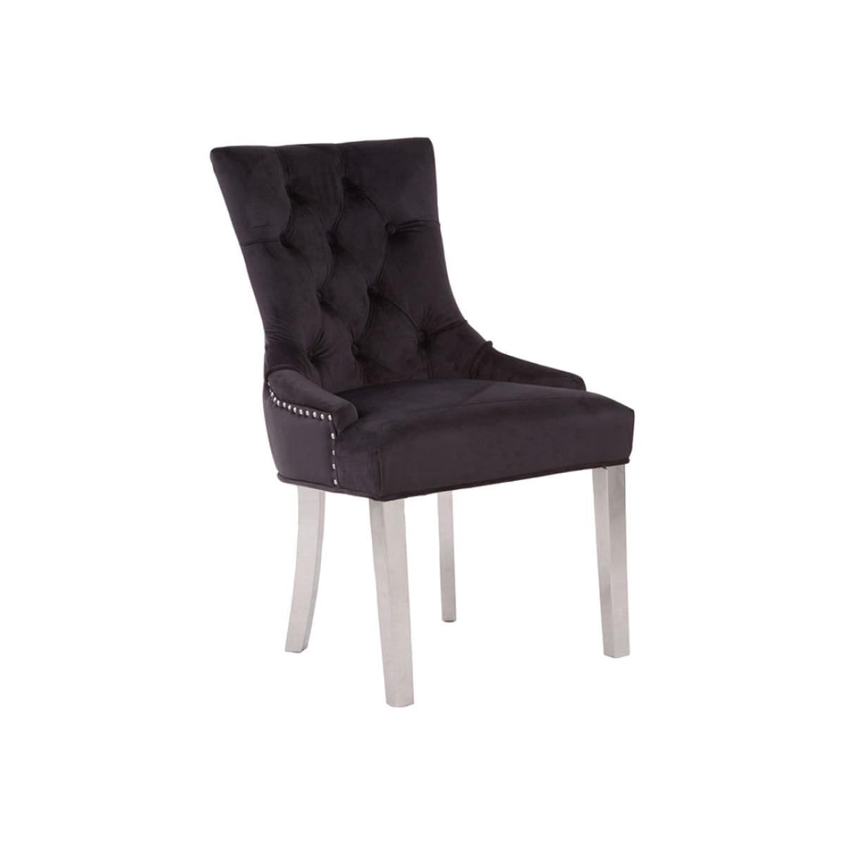 Bring some chic and elegant style into your home furniture with the Regina Black Velvet Dining Chair. The plush and soft velvet upholstery not only adds an extra layer of comfort to this piece, but it also creates a sophisticated look that would easily fit into both modern and traditional styles of home. The shining silver button detailing and silver finished chair legs combine beautifully with the sleek black velvet to create a beautiful home furnishing that is highly versatile. Regina is also well-sized for a wide variety of spaces, measuring at 97cm in height, 57cm in width and 63cm in depth. *Moot Trading Ltd is not a lender and acts only as an introducer. The credit product is provided by Klarna Bank AB (publ). Credit is only available to permanent UK residents aged 18 and over, subject to status. Terms and conditions apply. Please note that the following products are not regulated by the FCA: Pay in 30 days and Pay in 3 instalments. Read More.