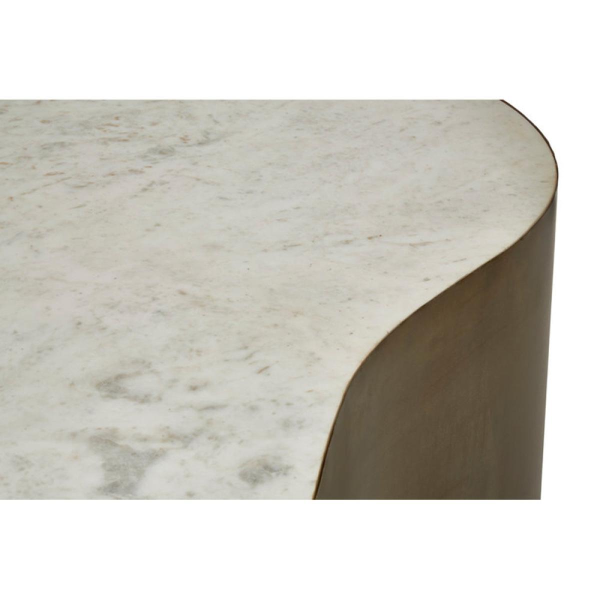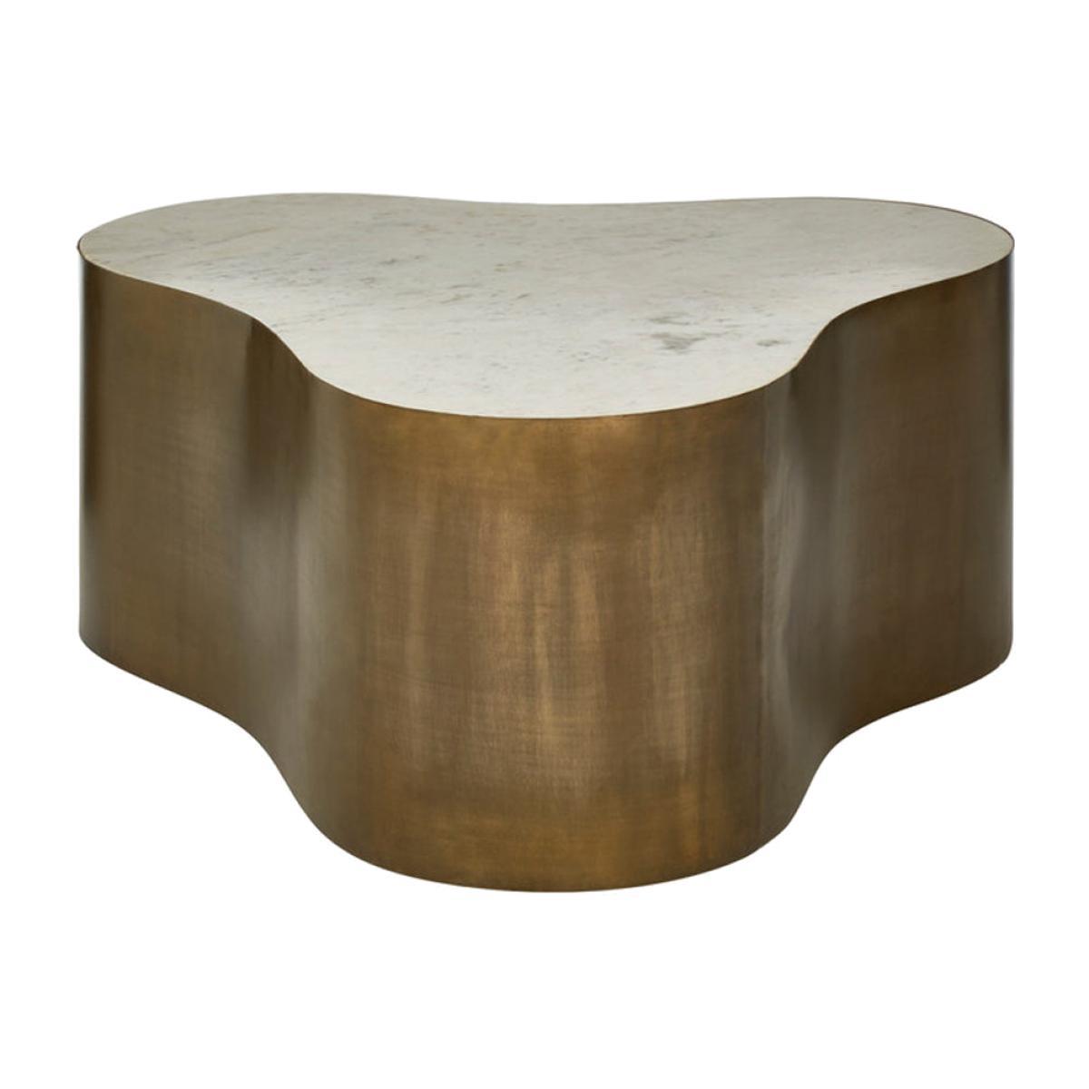 Marble and brass combine in this stunning and bold coffee table from Olivia's. Perfect for making a style statement in your home, this coffee table features an elegant yet practical white marble table top. But forget your typical round or rectangular coffee tables: the Remi Coffee Table stands out thanks to its unique curved design which has three rounded parts. The side of this table has a classic antique brass finish. This coffee table, which measures 42 cm tall, 100 cm wide and 92 cm deep, would look amazing in front of a modern sofa in a super-stylish modern lounge. *Moot Trading Ltd is not a lender and acts only as an introducer. The credit product is provided by Klarna Bank AB (publ). Credit is only available to permanent UK residents aged 18 and over, subject to status. Terms and conditions apply. Please note that the following products are not regulated by the FCA: Pay in 30 days and Pay in 3 instalments. Read More.