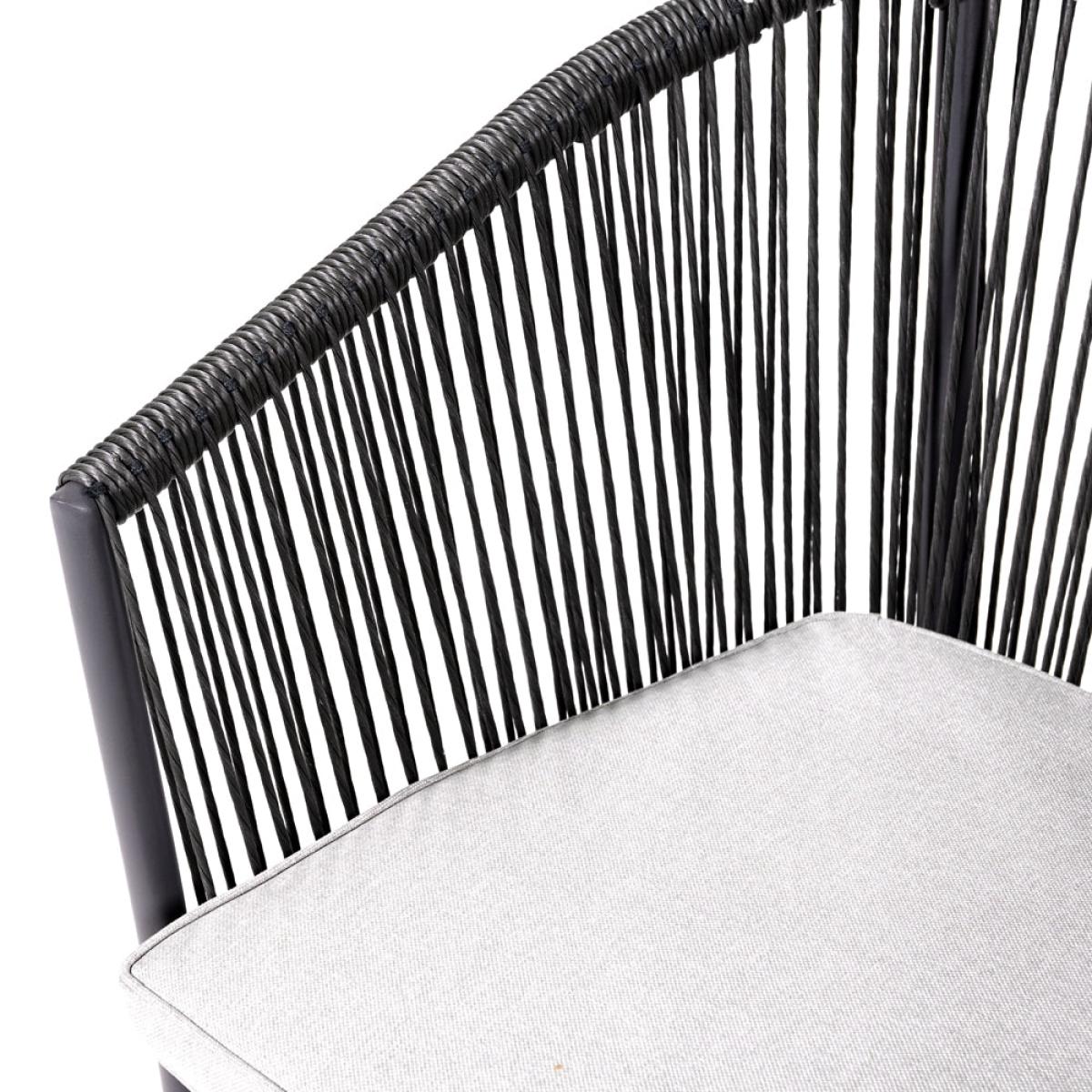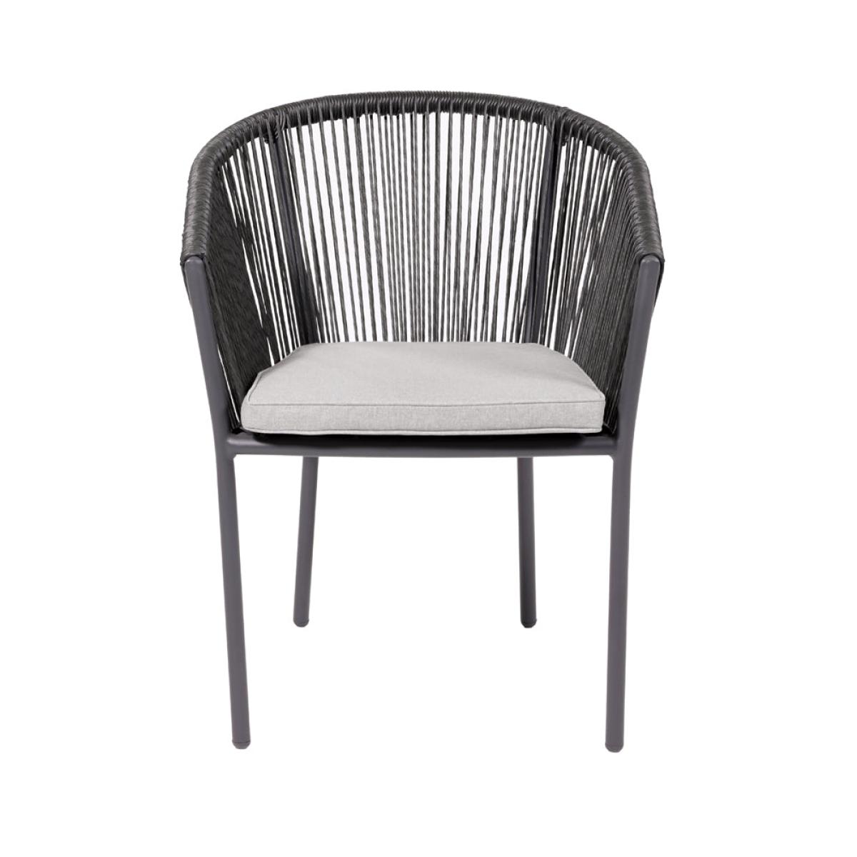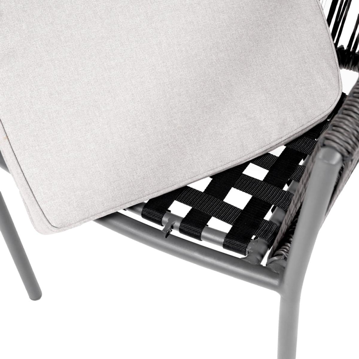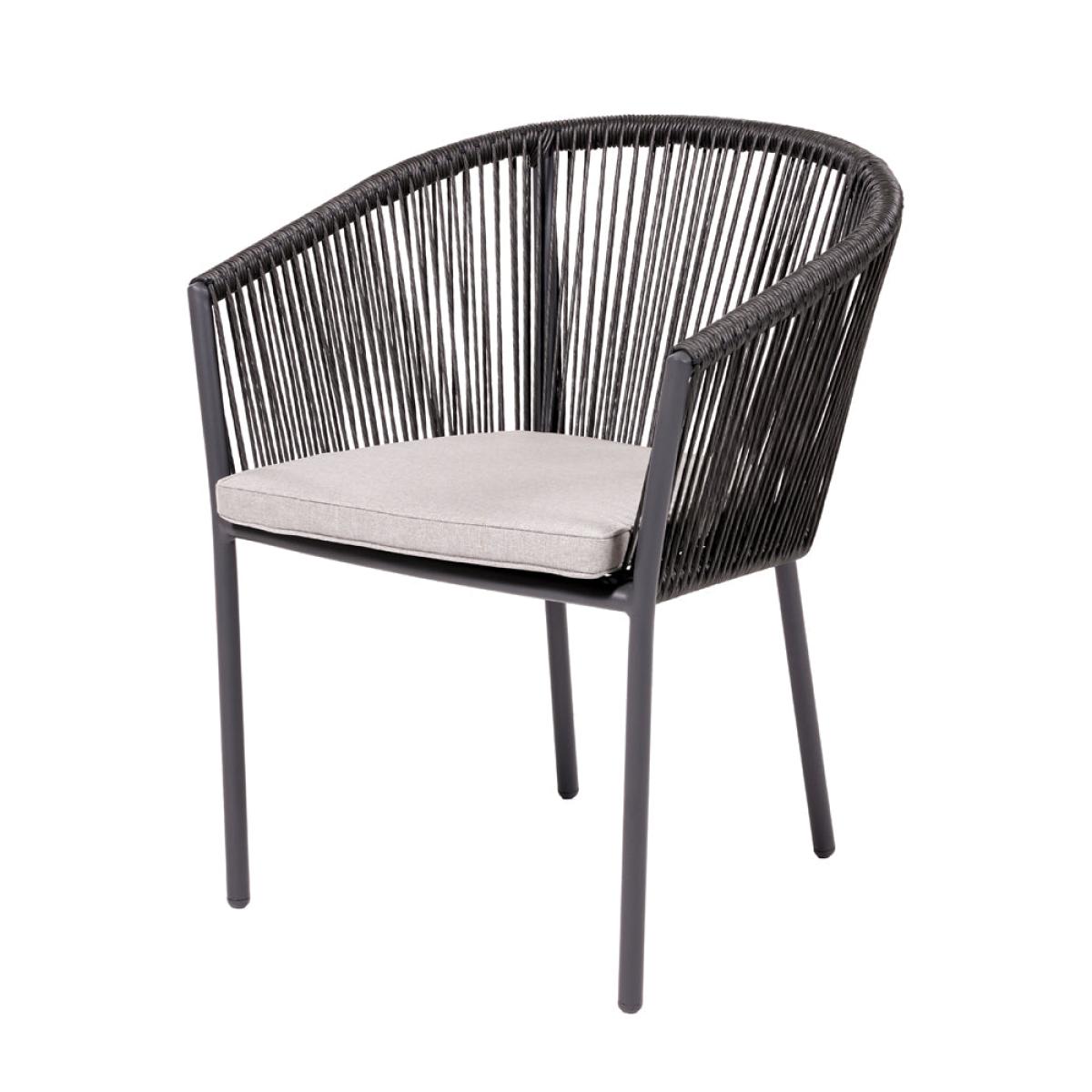The Remi Dining Set is available in grey twisted Polystring. This modern dining set includes an Acacia wood-topped table and six contemporary dining chairs including a seat pad for added comfort. The chairs are easily stackable to keep them neat and tidy when not in use. The frame is powder-coated aluminium to ensure maximum protection from inclement weather. Each chair is topped with a soft natural cushion, making this the perfect place to relax.