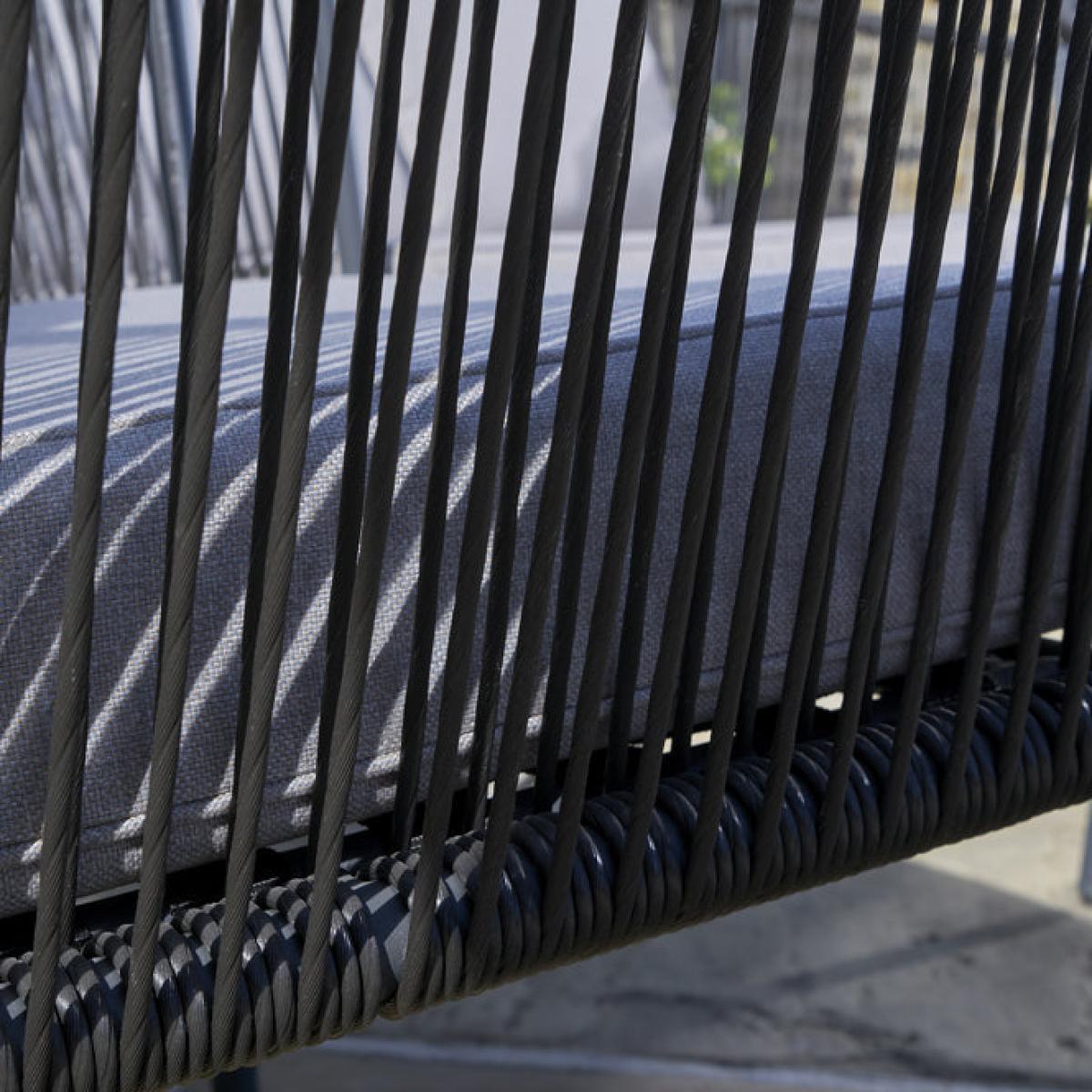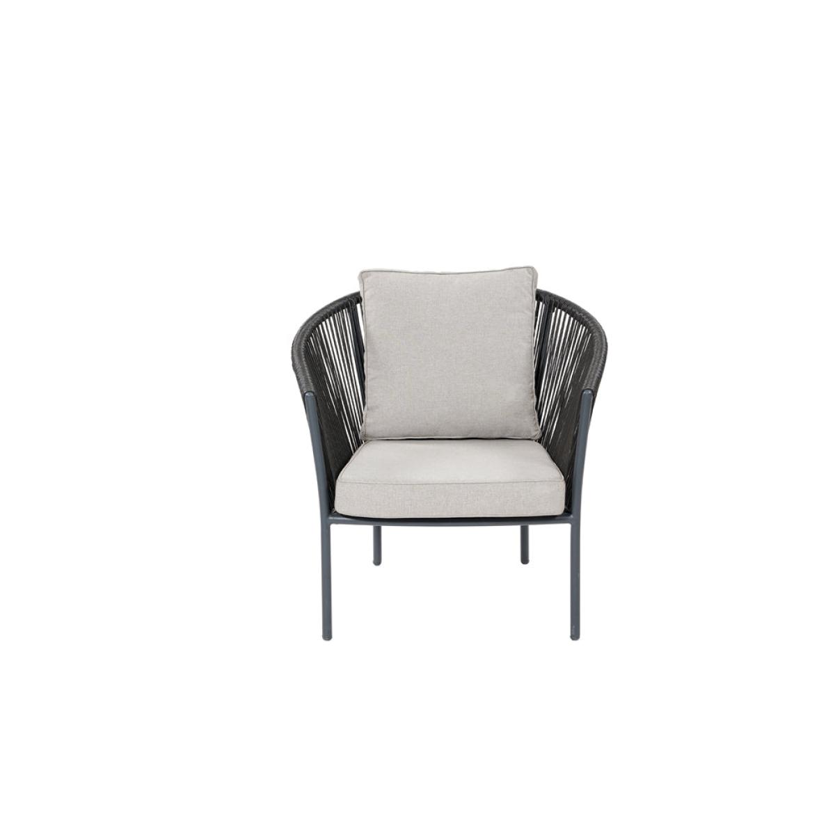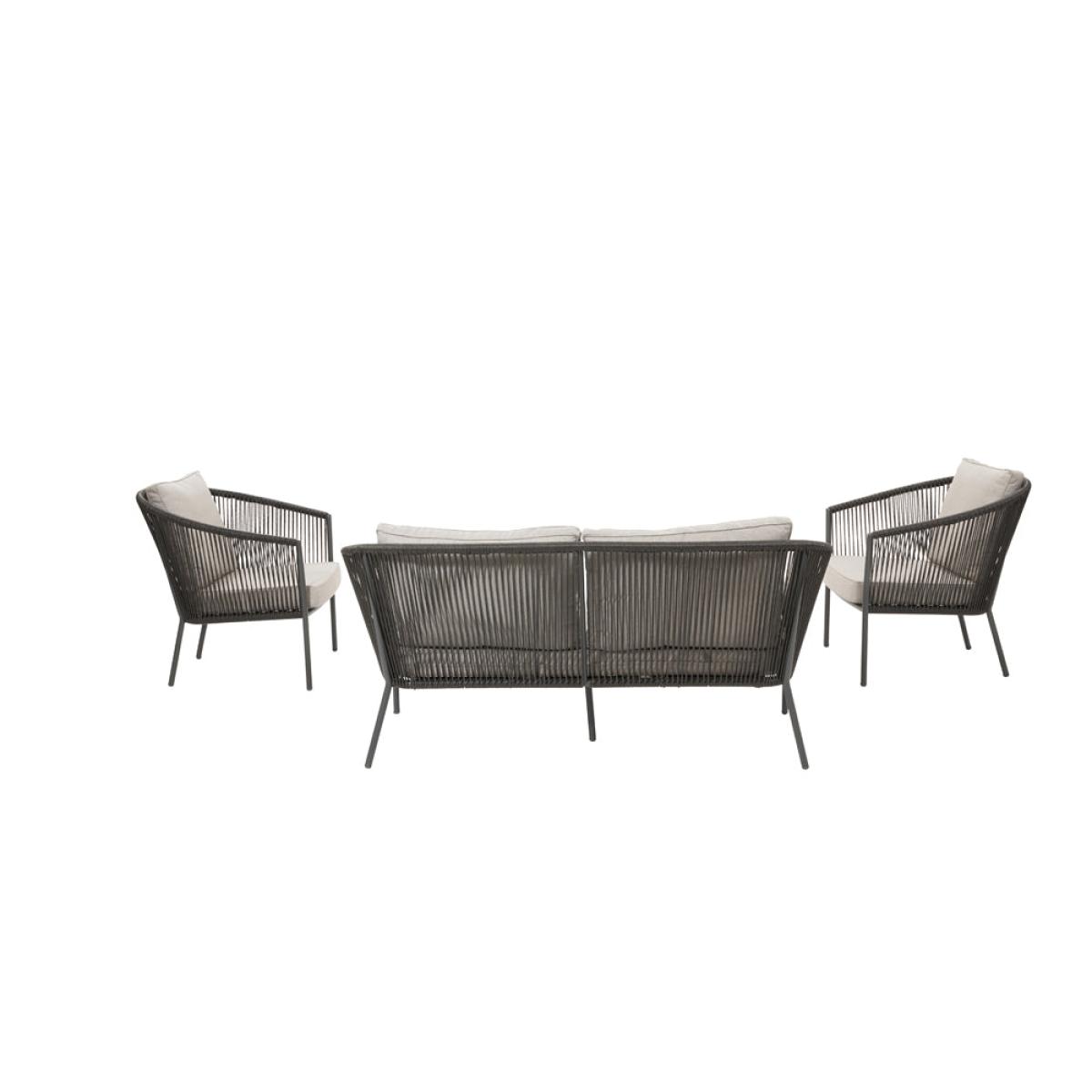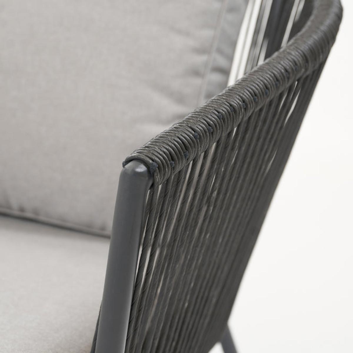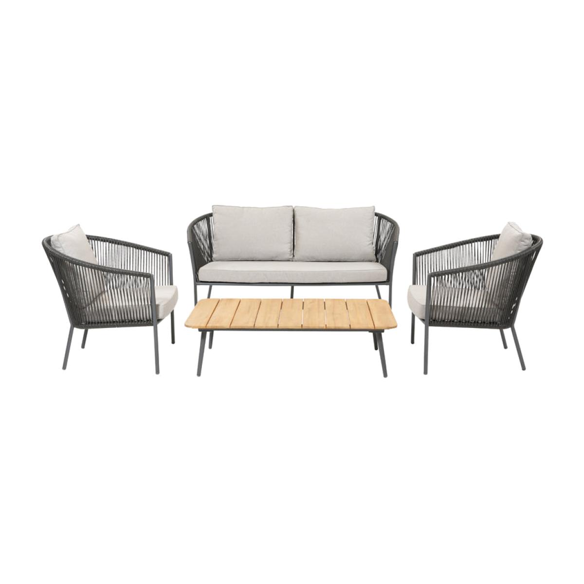 The Remi Stackable Lounge Set is available in grey twisted Polystring. This modern lounge set includes one sofa, 2x chairs and an Acacia wood-topped table. The frame is powder-coated aluminium, ensuring maximum protection from the weather. The chairs stack within the sofa for easy storage.