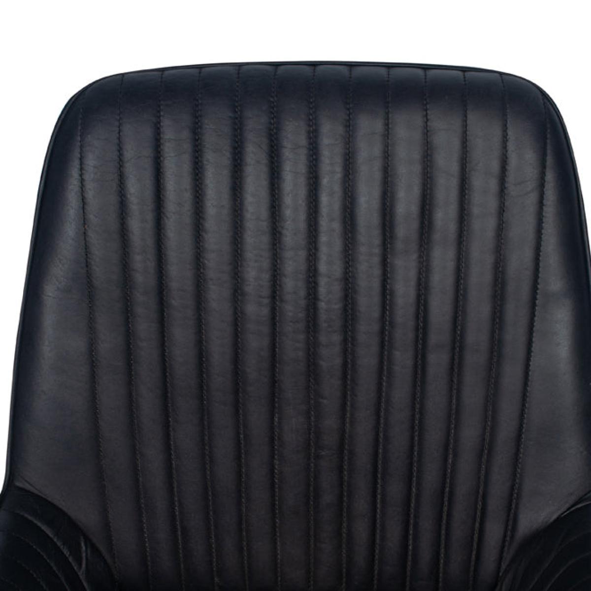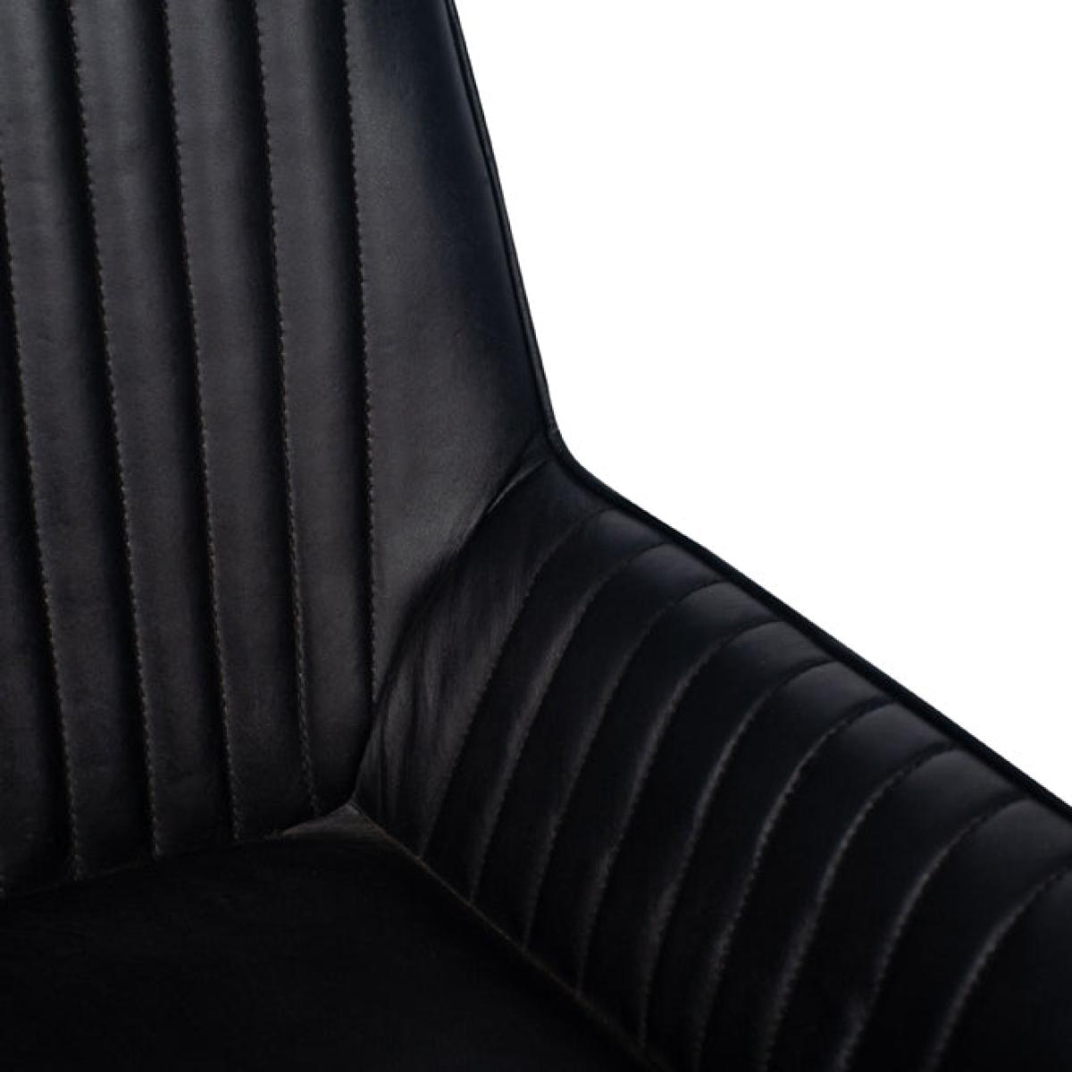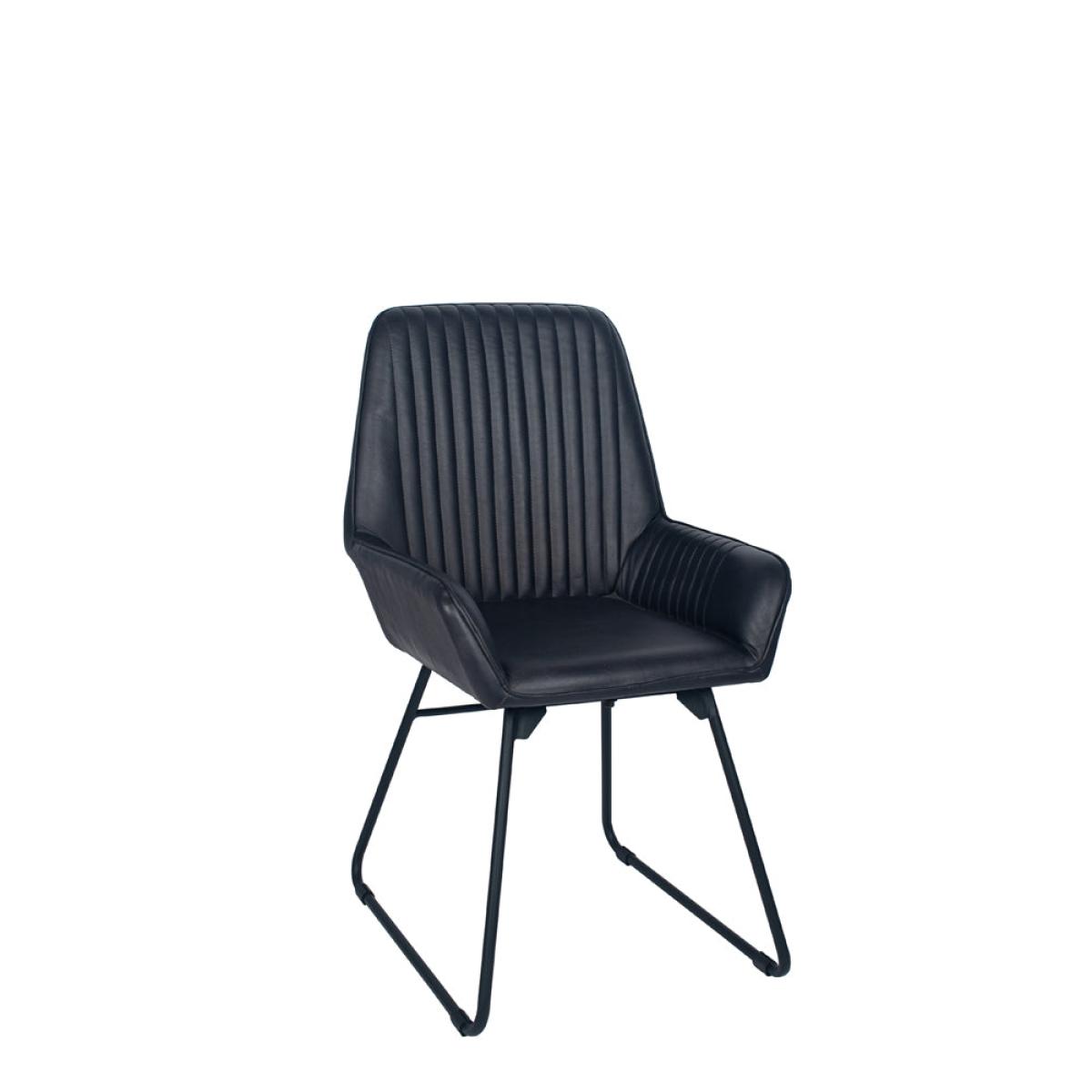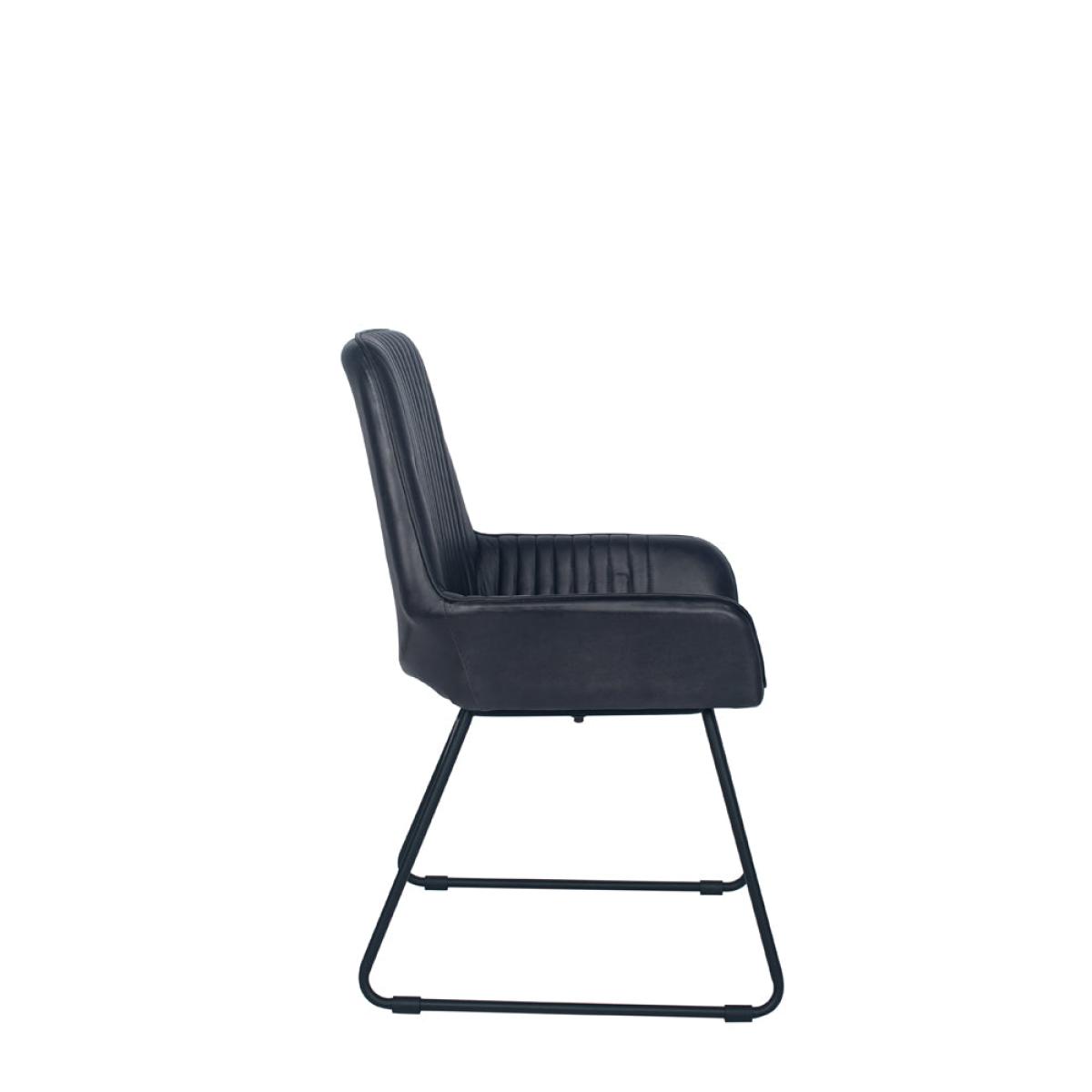 A stylish, vintage steel grey leather dining or occasional carver chair, with ribbed effect cushioning on the back and black iron legs. The arms afford maximum comfort for a great dining experience. Available in two colours.