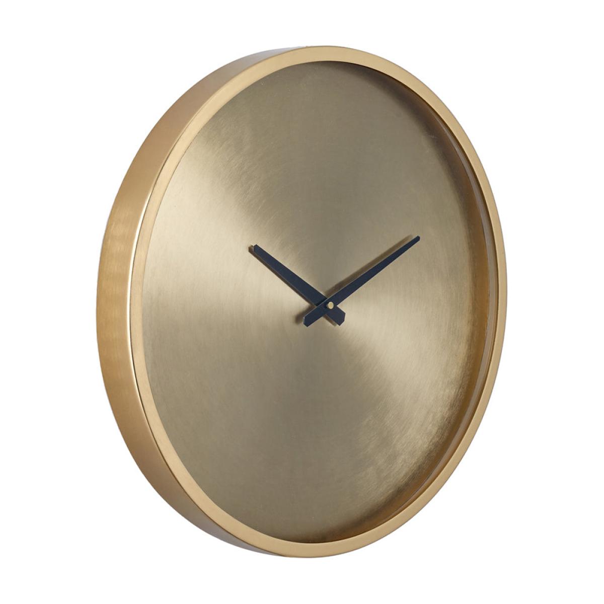 This stunning, circular wall clock is the epitome of contemporary design. The simple clock face and brushed antique brass both give a modern and sleek look.
