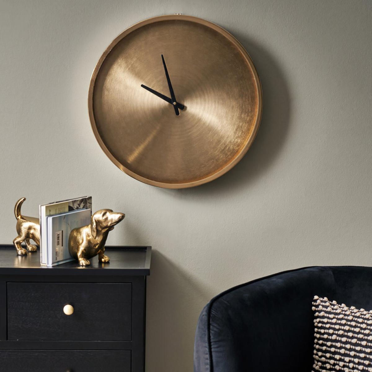 I love this wall clock for its sleek, minimalist design with an elegant antique brass finish that adds warmth and sophistication to a variety of interiors. It works particularly well in contemporary, industrial, or eclectic settings where the metallic accents can really stand out. For styling tips, consider placing it above a sideboard or console table in a living room or entryway to serve as a statement piece. Keep accessories simple around it to let the finish and shape take centre stage, and pair with other brass or metallic accents for a cohesive look. Its round shape and neutral tone make it versatile enough to complement both colour-rich and neutral colour schemes.