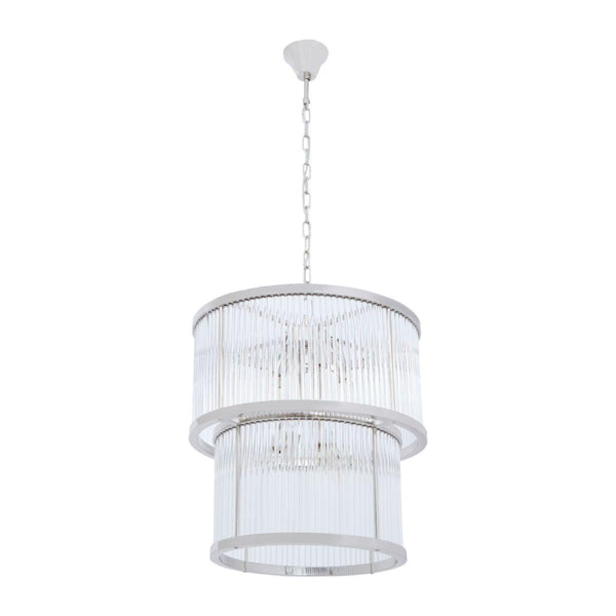 Transform any space into the height of luxury and sophistication with the Olivia's Salsa Nickel Finish 2 Tier Chandelier. This dramatic light fitting cascades through two dazzling tiers, each masterfully crafted with hand-raked glass panes. The ribbed texture of the glass creates a delightful interplay with light that is sure to evoke a romantic ambience, with the resulting diffused glow making this striking piece the perfect addition to a dining area, living room or bedroom. The chandelier's clean modern lines provide a fresh and contemporary update to a design classic, meaning that it will look superb in any style-conscious home. *Moot Trading Ltd is not a lender and acts only as an introducer. The credit product is provided by Klarna Bank AB (publ). Credit is only available to permanent UK residents aged 18 and over, subject to status. Terms and conditions apply. Please note that the following products are not regulated by the FCA: Pay in 30 days and Pay in 3 instalments. Read More.