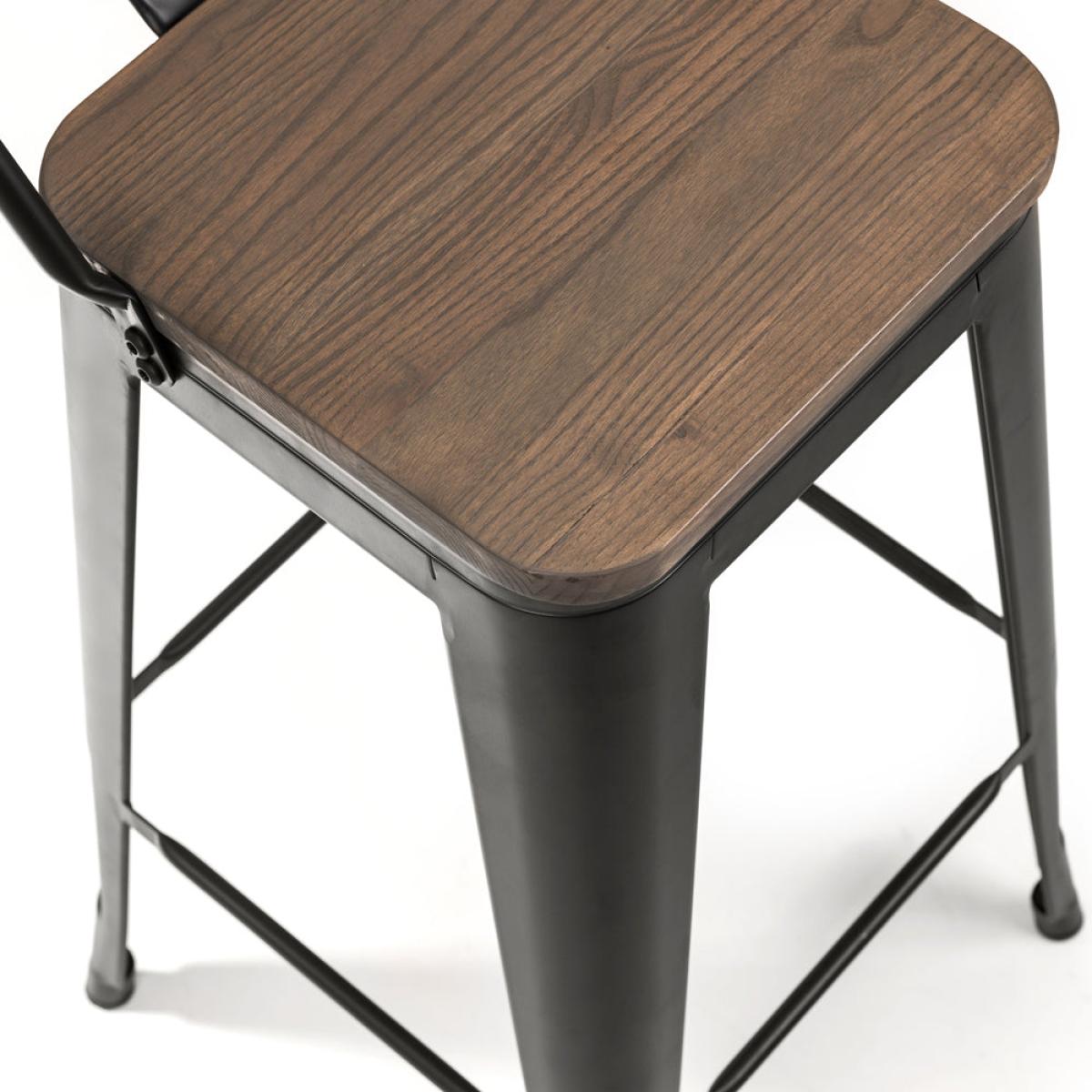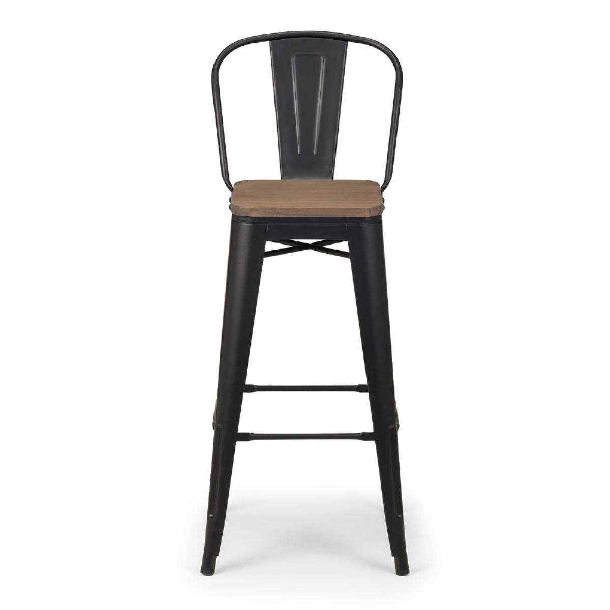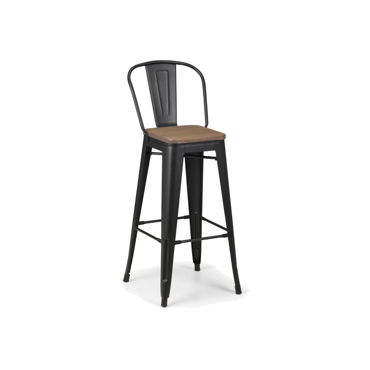 Crafted from solid Elm wood and satin black powder coated steel, The Grafton Bar Stool is perfect for any bar or high table. Featuring an open curved back for extra comfort, the Grafton Bar Stool will add an industrial touch to any room. Perfect match for the Grafton Bar Table. Dimensions: H: 107 x W: 43 x D: 46 cm Materials: Solid Elm Wood & Powder Coated Steel Assembly Required:Yes Care Instructions:Wipe with a clean damp cloth. Avoid household cleaners & abrasives