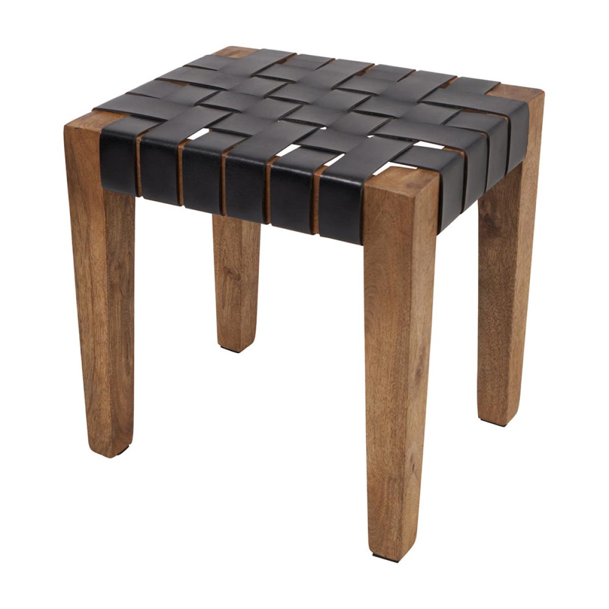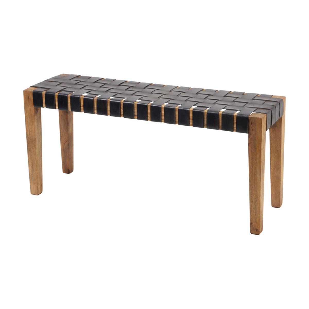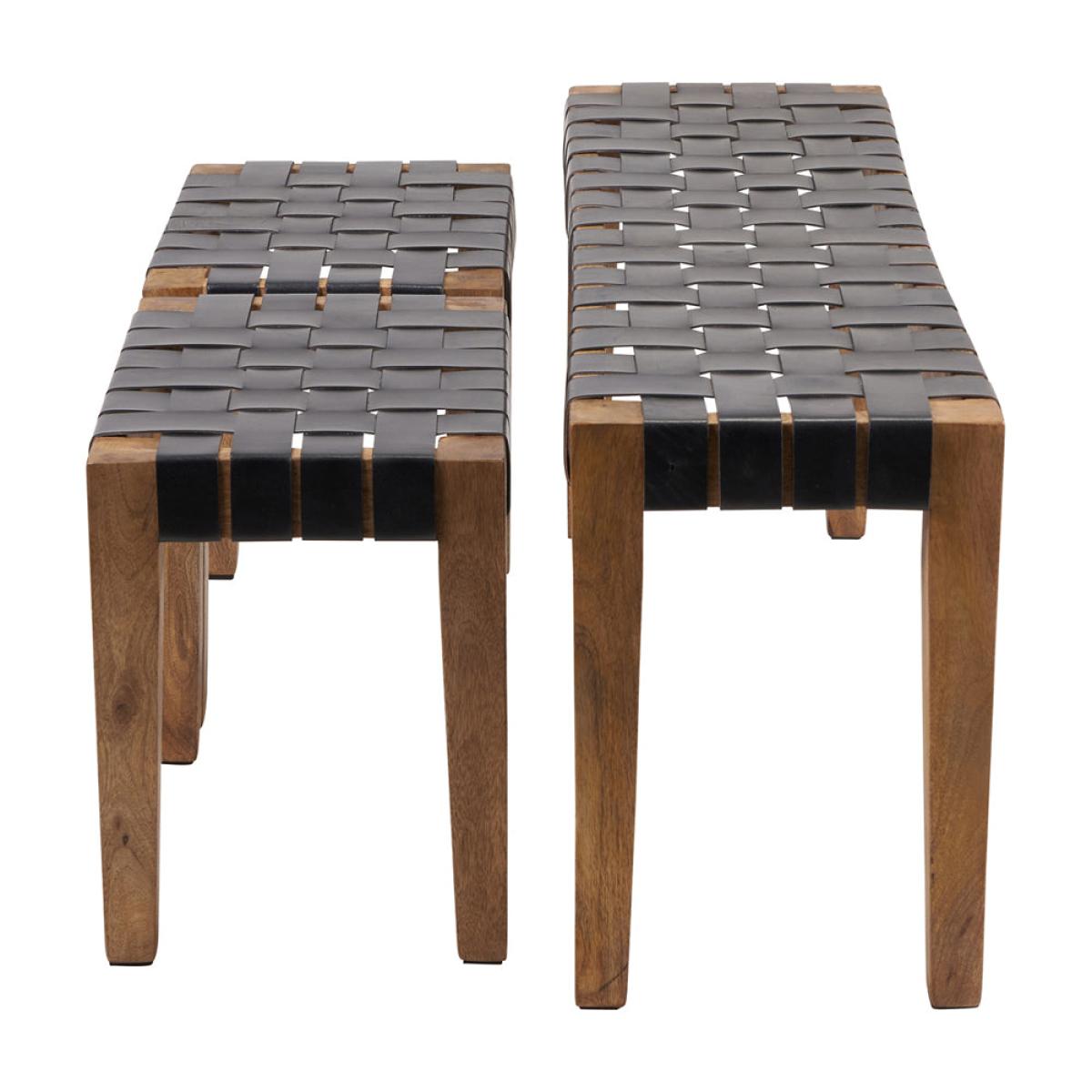 This contemporary set of 3; bench and 2 stools in sleek mango wood and black woven leather certainly makes a statement. The black woven leather creates texture and tactility against the strong wooden frame. This set of 3 is perfect for occasional seating in a multitude of rooms and has the advantage of nesting, with the two stools sitting comfortably underneath the bench for a brilliant space saving solution.
