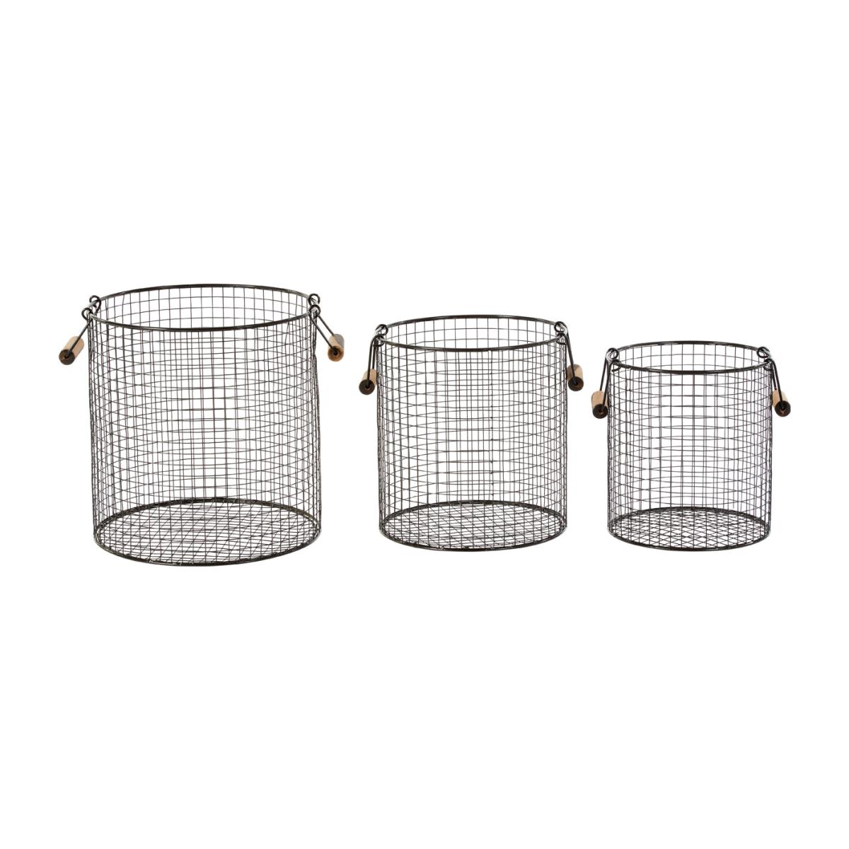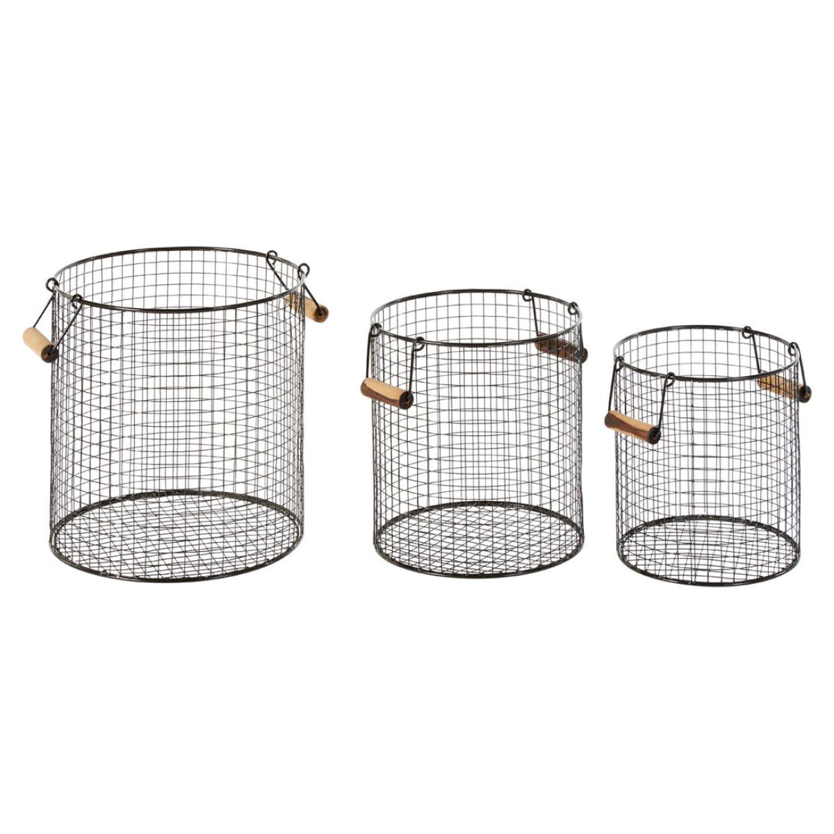 Black Wire Storage Baskets – Set of 3. Dimensions: H: 37 x W: 35 x D: 35 cm. Materials: Metal Assembly Required: No. Care Instructions: Wipe Clean with a soft cloth. Do not use abrasive cleaners. View More. Black Wire Storage Baskets – Set of 3.
