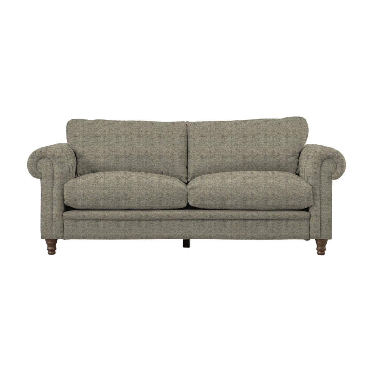 Offering a traditional Chesterfield-style design, with deep button tufting, roll top arms and carved wooden feet, the Model 1 Sofa is a stand-out piece which will create an impact in any interior. It has pocket sprung seat bases for maximum comfort and feather wrap seat cushions. It is upholstered in a lovely textured fabric in a soft neutral tone to suit any interior. Exclusively handmade in the United Kingdom by an experienced team of highly skilled craftsmen, using the best quality materials and paying great attention to detail. Supplied flat packed in a box to allow access to any room in any home, perfect for where access is tight and awkward. Quick and easy assembly with no tools required, thanks to an easy lock in mechanism which features a tapered design with hard nylon edges keeping the model rigid. Please note lifestyle image is for illustration purposes only. Dimensions: H: 90 x W: 220 x D: 96 cm. Seat Height: 480mm Width Between Arms: 1600mm. Seat Depth: 600mm. Back Seat Height: 720mm. Arm Height: 720mm. Arm Width: 300mm. Feet Height: 110mm. Clearance to Floor: 110mm. Feet Finish: Wood Materials: Softwood, Hardwood, MDF, Foam, Poly fibre, Feathers, Fabric Assembly Required:Yes