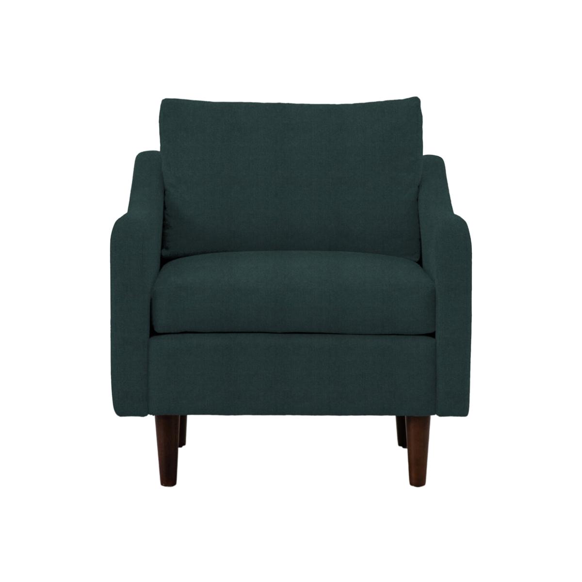 Easy to place and with a beautifully simple design, the Everyday Model 2 Armchair from an Sofa in a Box collection is the ideal choice for a wide range of interiors. It features sleek sloped arms and dark tapered wooden feet. It is available in an Modena and Placido ranges, and all have pocket sprung seat bases for maximum comfort, and fibre wrap seat cushions. Exclusively handmade in the United Kingdom by an experienced team of highly skilled craftsmen, using the best quality materials and paying great attention to detail. Supplied flat packed in a box to allow access to any room in any home, perfect for where access is tight and awkward. Quick and easy assembly with no tools required, thanks to an easy lock in mechanism which features a tapered design with hard nylon edges keeping the model rigid. Please note lifestyle image is for illustration purposes only. Dimensions: H: 88 x W: 80 x D: 92 cm. Seat Height: 460mm. Width Between Arms: 640mm. Seat Depth: 620mm. Back Seat Height: 720mm. Arm Height: 600mm. Arm Width: 80mm. Feet Height: 150mm. Clearance to Floor: 150mm. Feet Finish: Wood Materials: Softwood, Hardwood, MDF, Foam, Poly fibre, Fabric Assembly Required:Yes