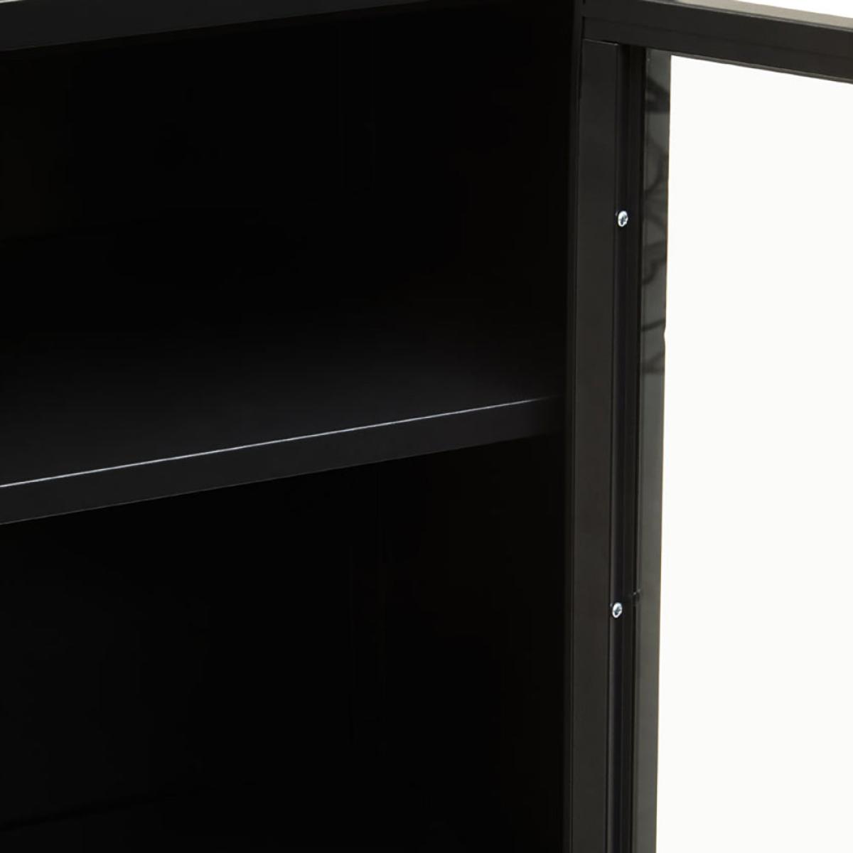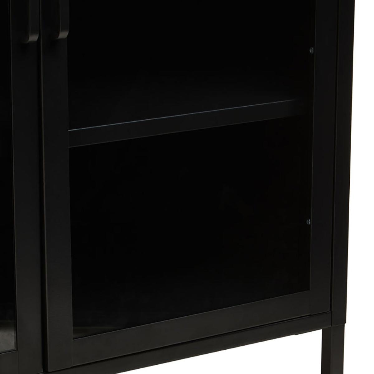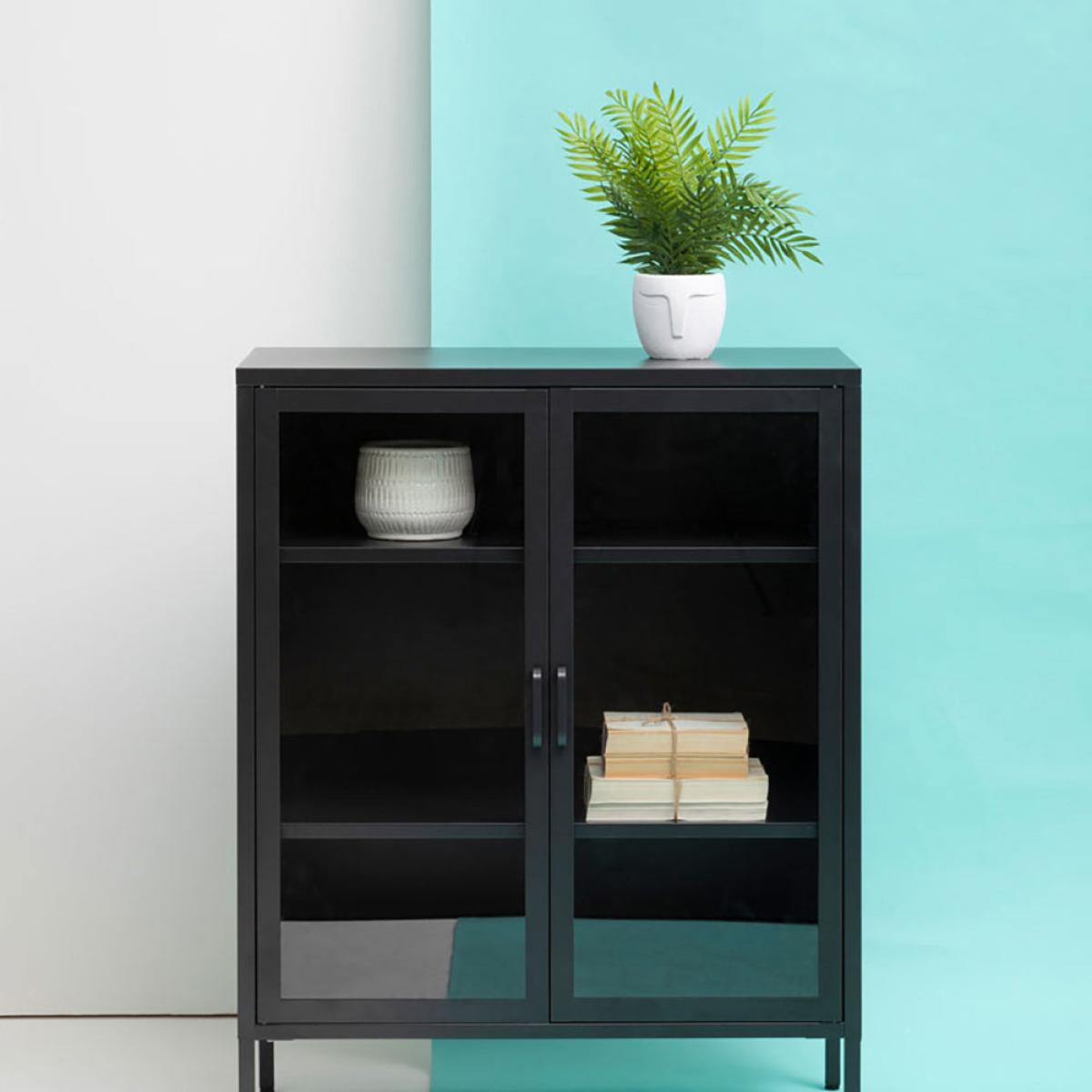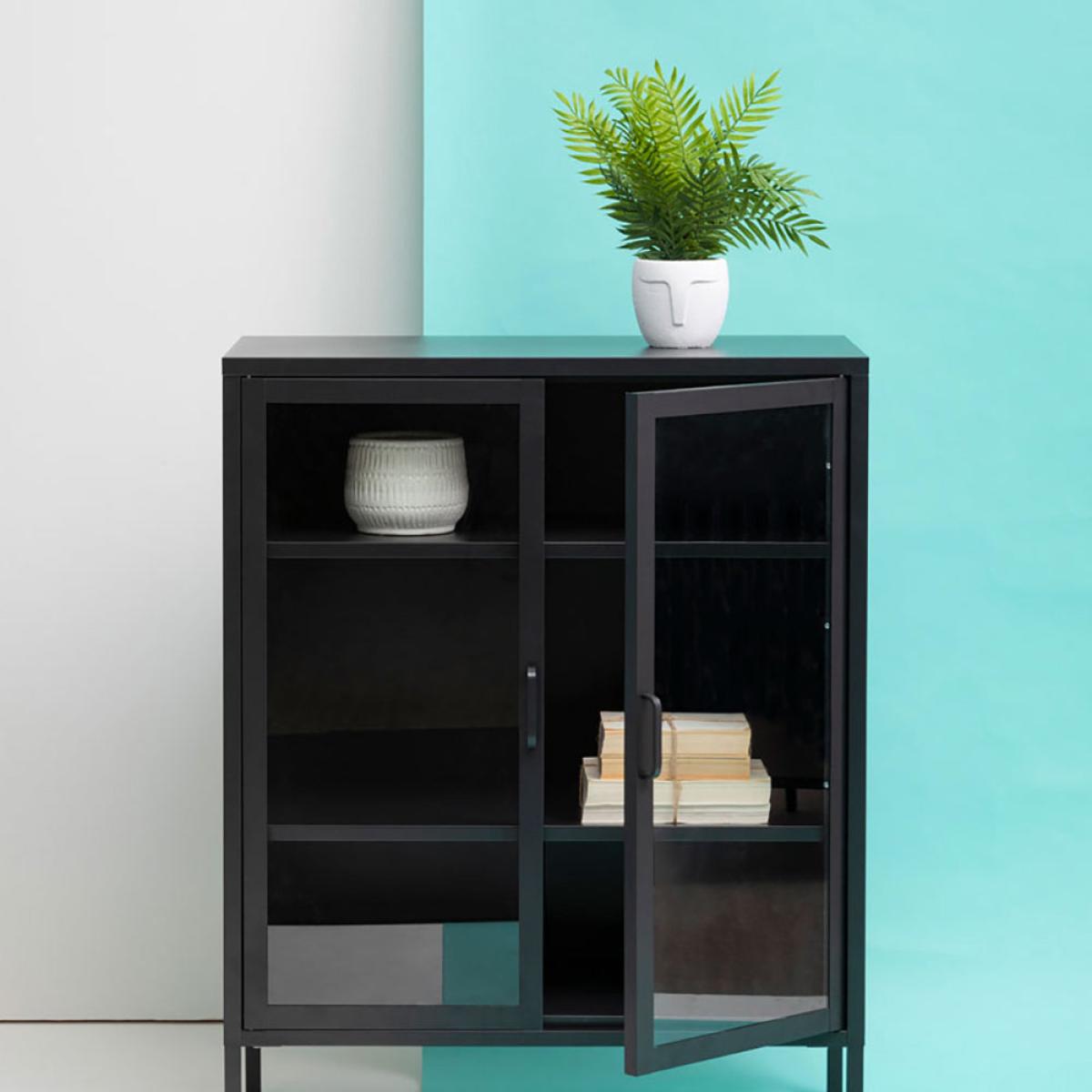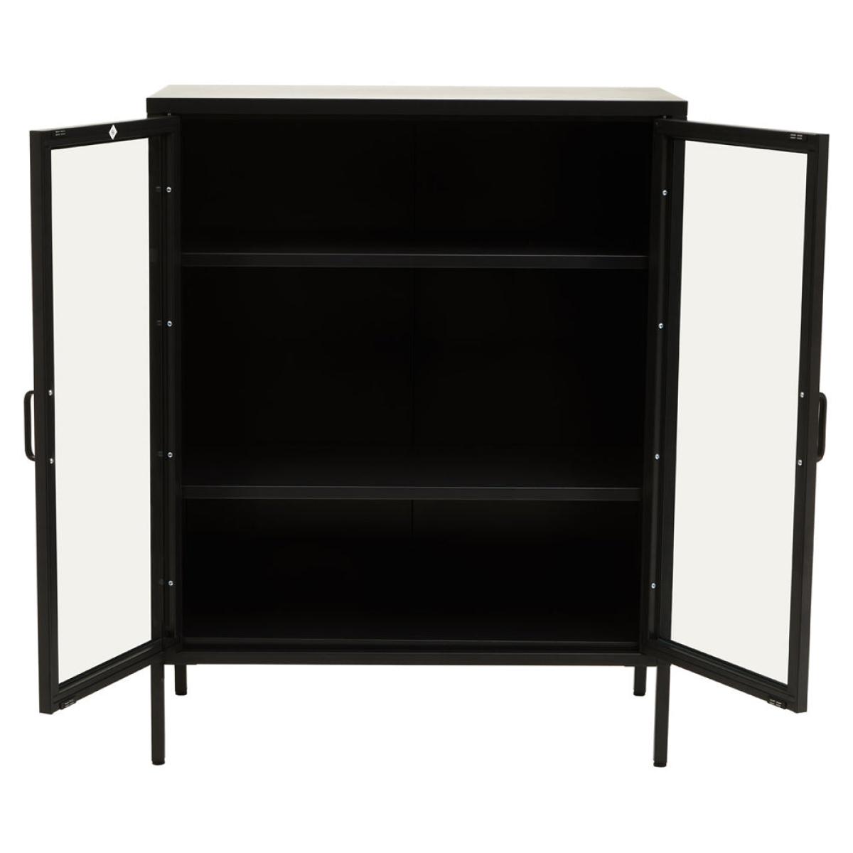 The Ariella Two Door Cabinet in black is a sleek and stylish choice from Olivia's Soft Industrial Collection. It measures 102cm tall, 80cm wide, and 40cm deep, so there's plenty of storage space within and lots of display space on top. It is also hugely versatile and can enhance anywhere from a luxe lounge to an industrial-inspired dining room. This cabinet boasts quality construction to ensure sturdiness and durability, but this certainly does not mean it compromises on style. It is an impactful choice that can add depth to neutral interior design schemes or create a great base for bold colour choices. Dimensions: H: 102 x W: 80 x D: 40 cm Materials: Metal Assembly Required: No Care Instructions:Wipe clean with a soft cloth